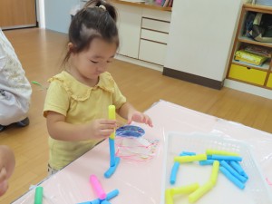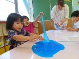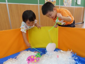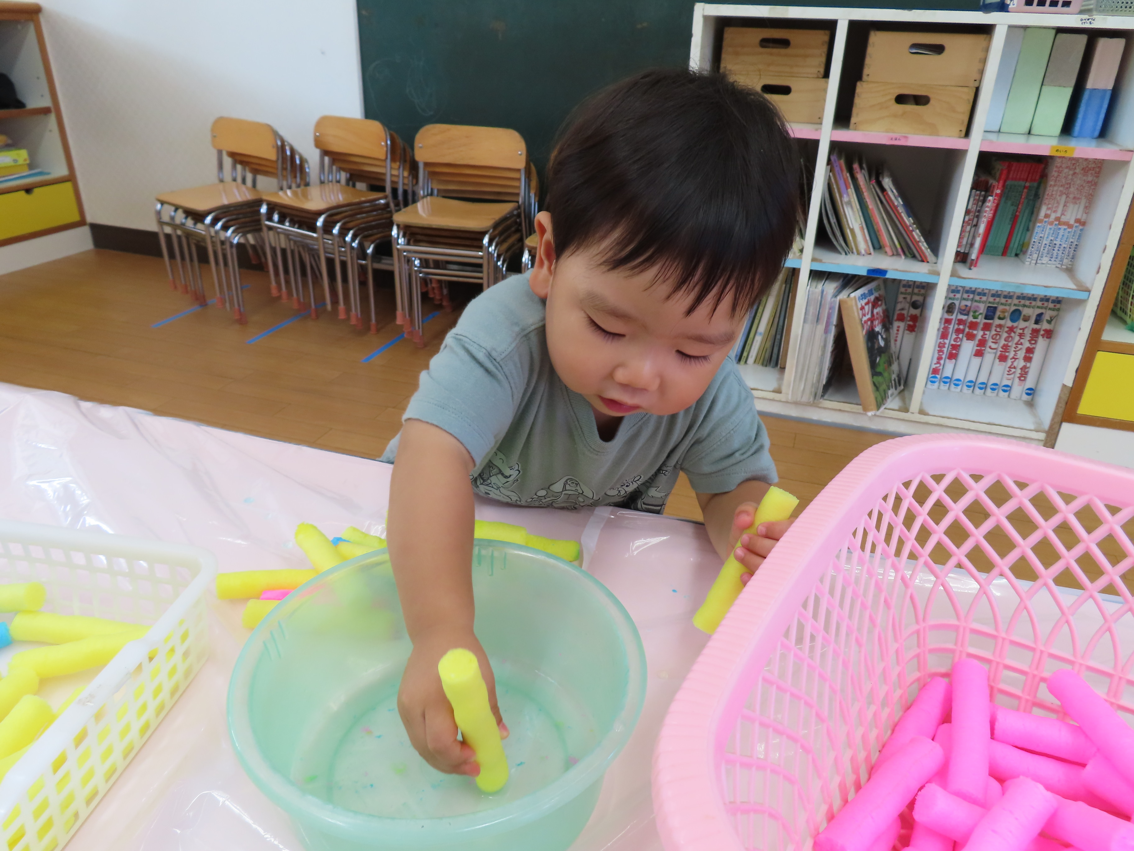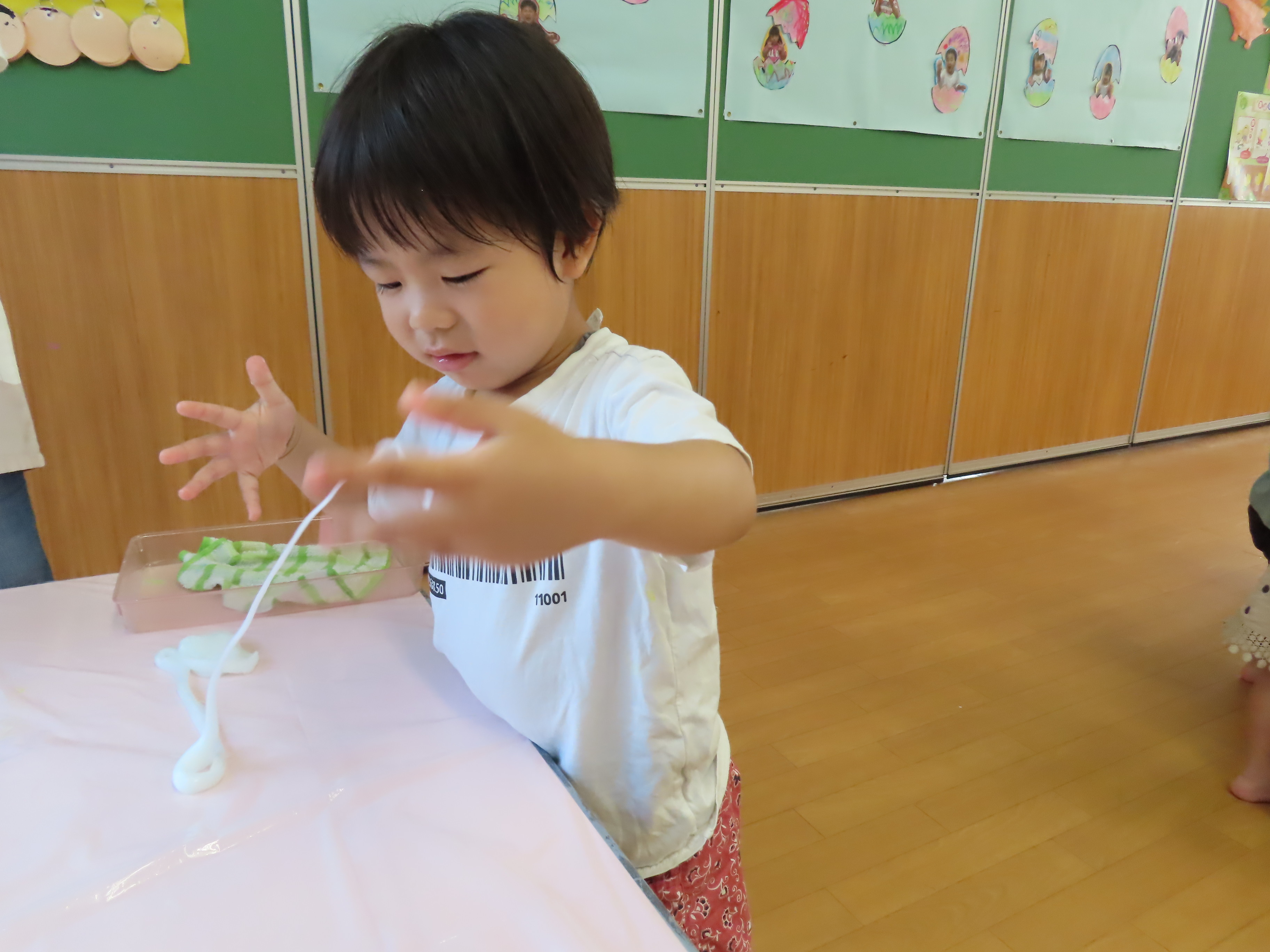 プール大会~すみれ組編~2024年8月7日今年の夏は、異常な暑さ・・・が続いていますね(*_*; 毎年、プール大会の日は水着を着て園庭で、たくさんの夏ならではの水遊びを楽しむのですが、今年はさすがにこの暑さの中は遊べないので、室内で色々な夏の遊びを楽しみました☆遊んでいいよ~♪と声をかけると、一目散に子どもたちが飛びついたのはスライムでしたっ!!なんともいえない感触が、子どもたちにはたまらなくこころ奪われたようで(笑)とってもよく遊んでくれました!魚釣りや泡スライム、スティック遊びなど、夏ならではの遊びを満喫しました(*^_^*) 施設情報愛媛県新居浜市にある児童福祉施設十全保育園げんきな子 がんばる子 やさしい子 楽しく食べるげんきな子児童福祉施設 十全保育園〒792-0011愛媛県新居浜市西原町2-3-12TEL:0897-33-3055 FAX:0897-33-3078十全保育園WEBサイト最近の記事2025年8月27日プール最終日~♪児童福祉施設 十全保育園2025年8月27日プール大会児童福祉施設 十全保育園2025年8月27日お茶のおけいこ児童福祉施設 十全保育園2025年8月12日職員会児童福祉施設 十全保育園2025年8月7日いっぱいあそんだよ♪~つぼみ・ちゅうりっぷ・もも~児童福祉施設 十全保育園2025年7月25日サマーキッズカーニバル♫児童福祉施設 十全保育園十全保育園の記事一覧