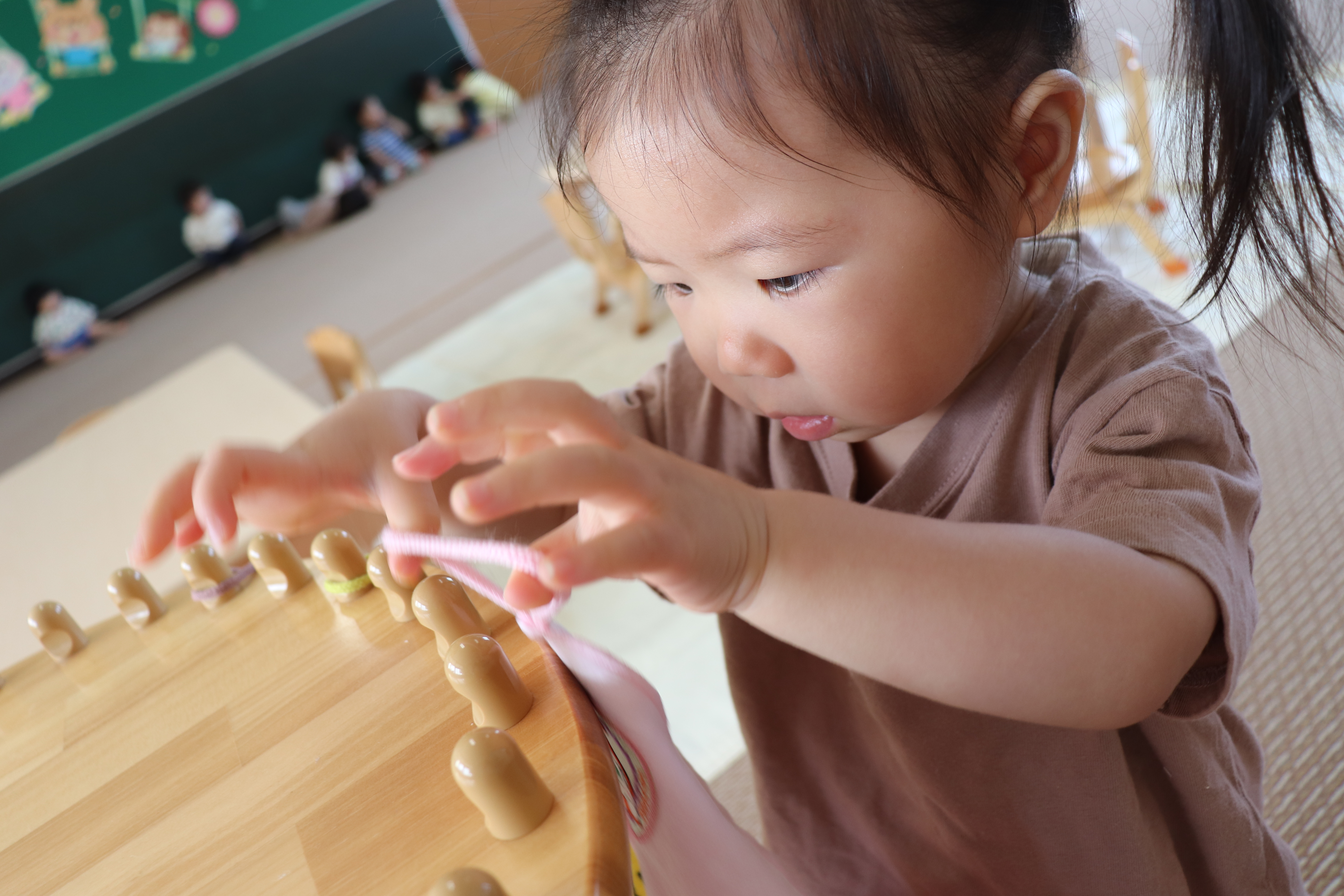 4月から練習してきたタオル掛け、手洗いもずいぶんとスムーズにそして上手にできるようになりました‼!タオルを掛ける表情がとっても真剣でしょ!?(笑)簡単に見えるタオル掛けも1歳児の子どもたちにとっては、指先を使って集中力のいる作業です(*^_^*) 継続は力なり!で毎日の積み重ねと経験でこの半年で、身の回りのことを自分で出来る力がとってもついてきました!! これからの子どもたちの成長も楽しみだ~☆