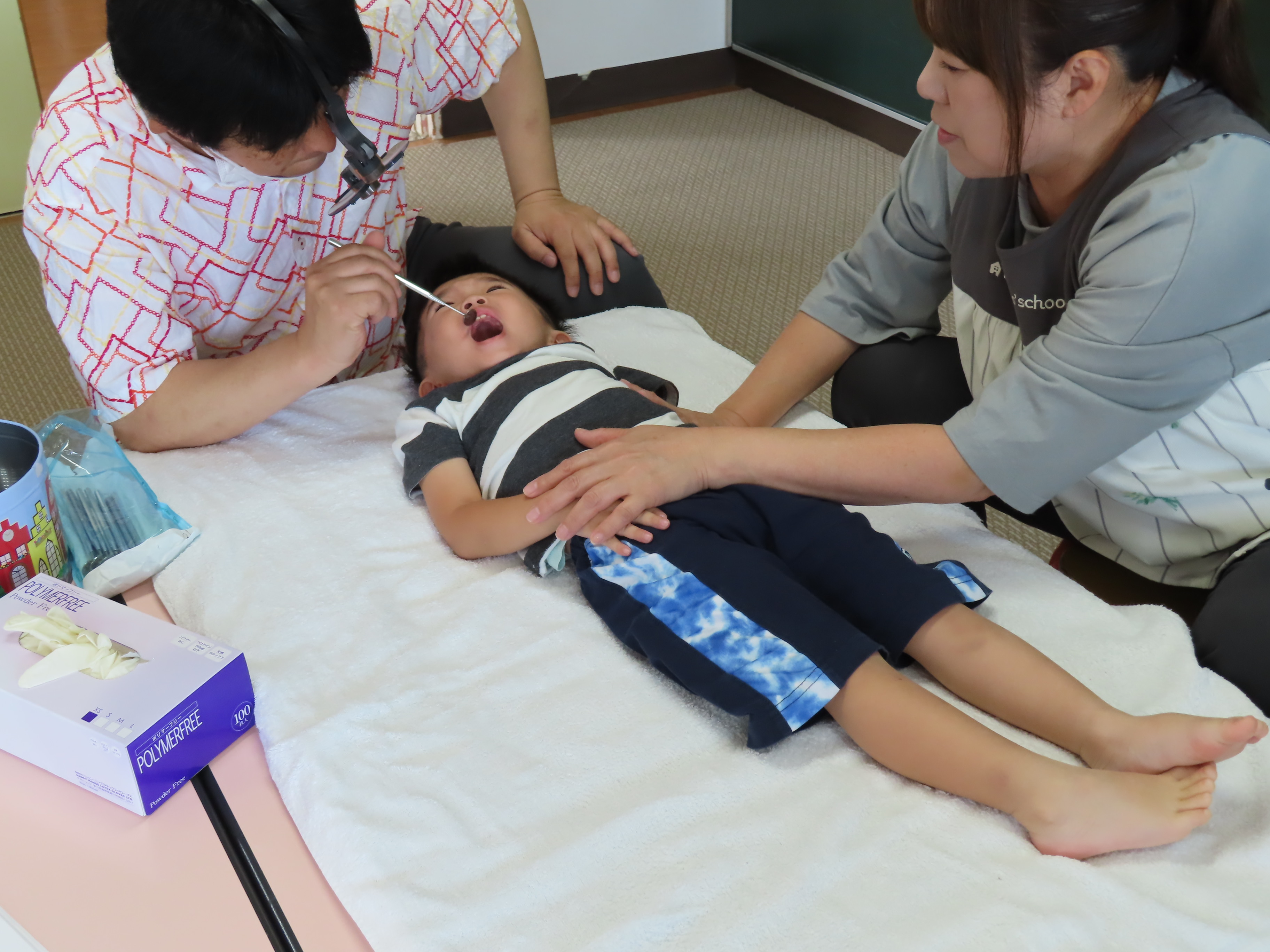 歯科検診の様子です(*^_^*) 小さなお友達も、幼児さん達もみんな泣かずに頑張りましたよ(*^_^*) 虫歯があった子も無かった子も、これからも毎日歯磨きをきちんと行い、虫歯ゼロを目指しましょう☆