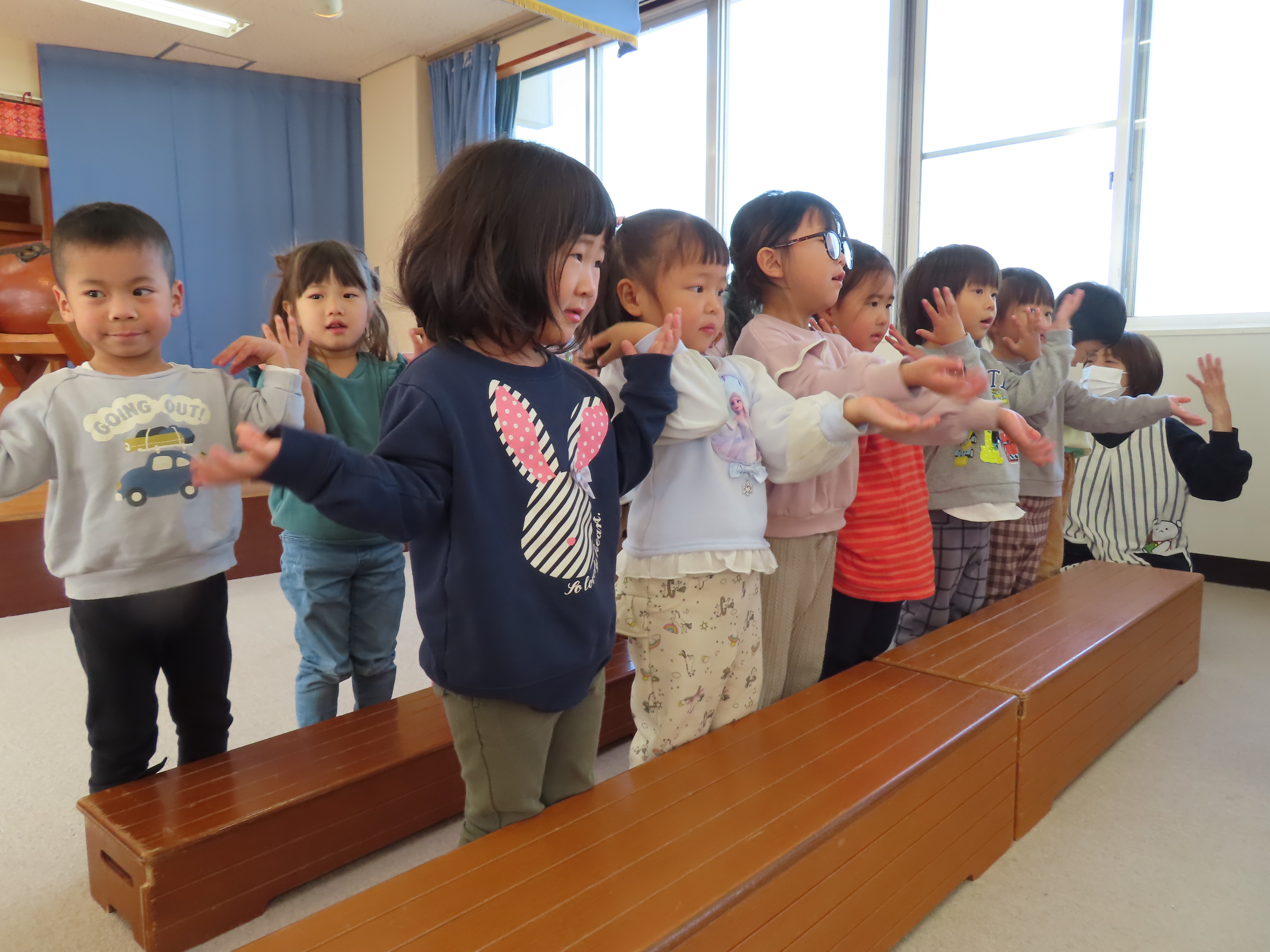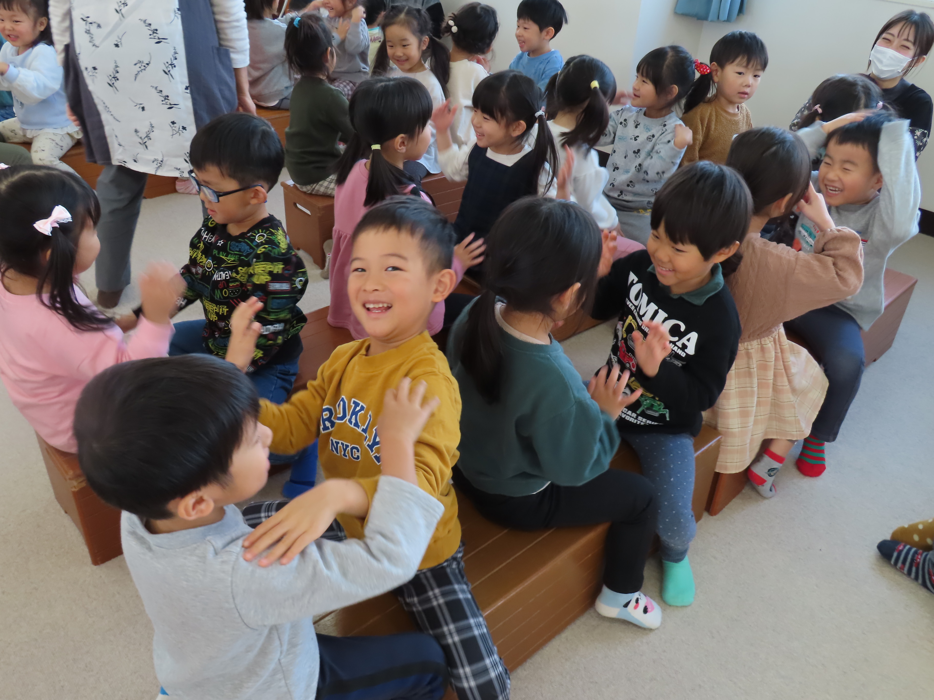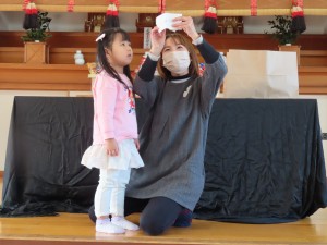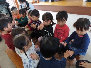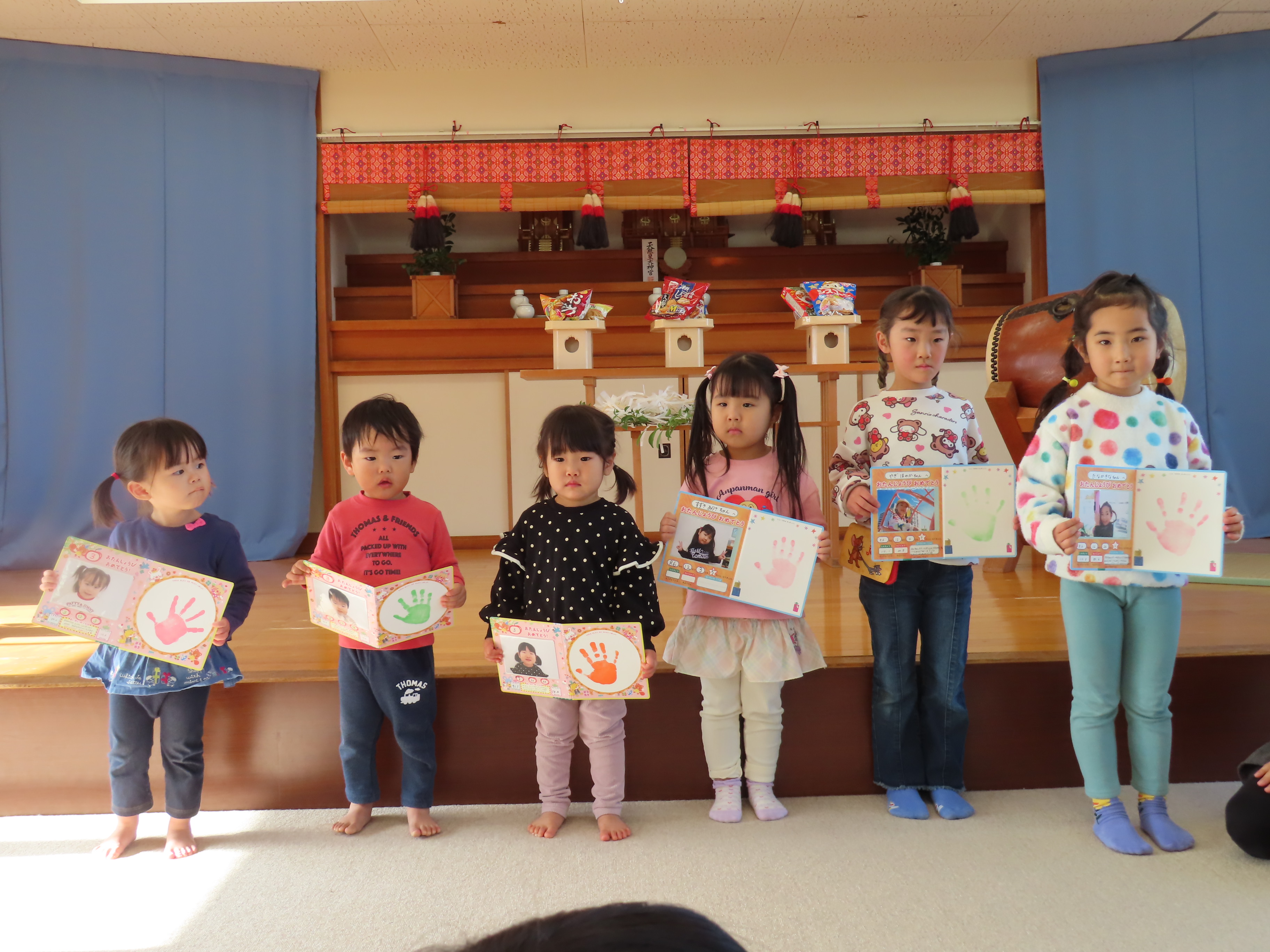 12月の誕生会がありました。すみれ、幼児クラスでは、6名のお友だちが誕生日を迎えます♪おめでとうございます☆ 保育士による出し物は、マジックショー♪ すみれ組さん、ばら組さん達は特に、なんで~!!??と驚きの表情を見せてくれていました(笑)楽しんでくれてよかったです(*^_^*)