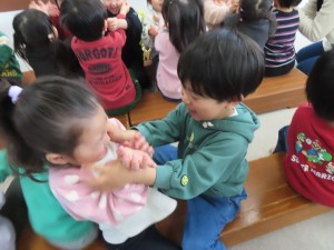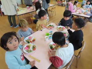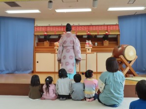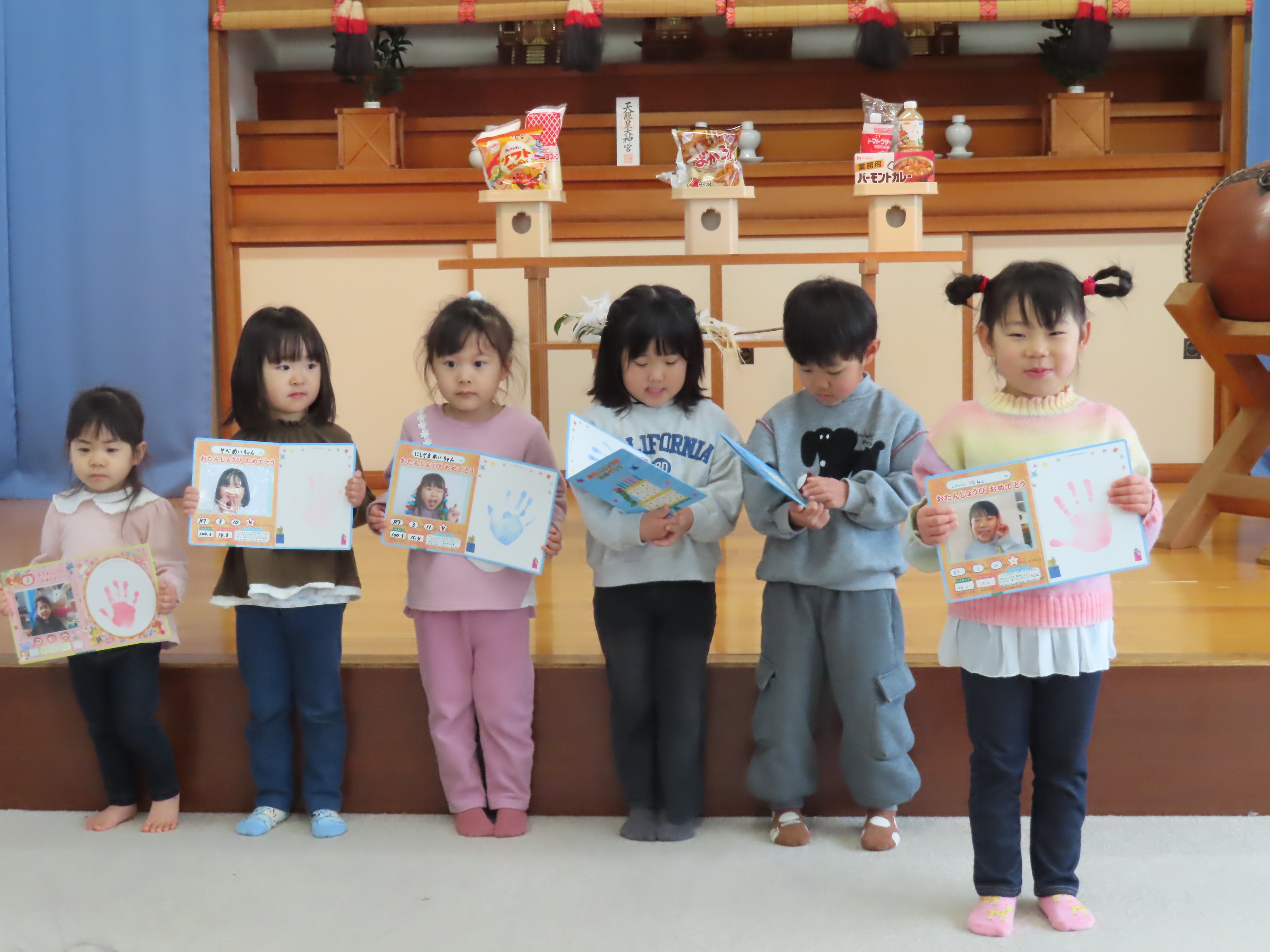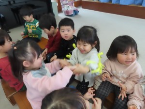 今年度最後となる3月の誕生会です!保育士による出し物は「マジックショー!!」お花がおしゃべりしたり‼破れたはずの新聞紙が元に戻ったり!!と次々起こるマジックに子ども達は「えぇ~!!!」と驚いてくれてました(*^_^*) 触れ合い遊びもとっても喜んで楽しんでくれてました。