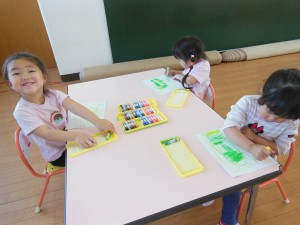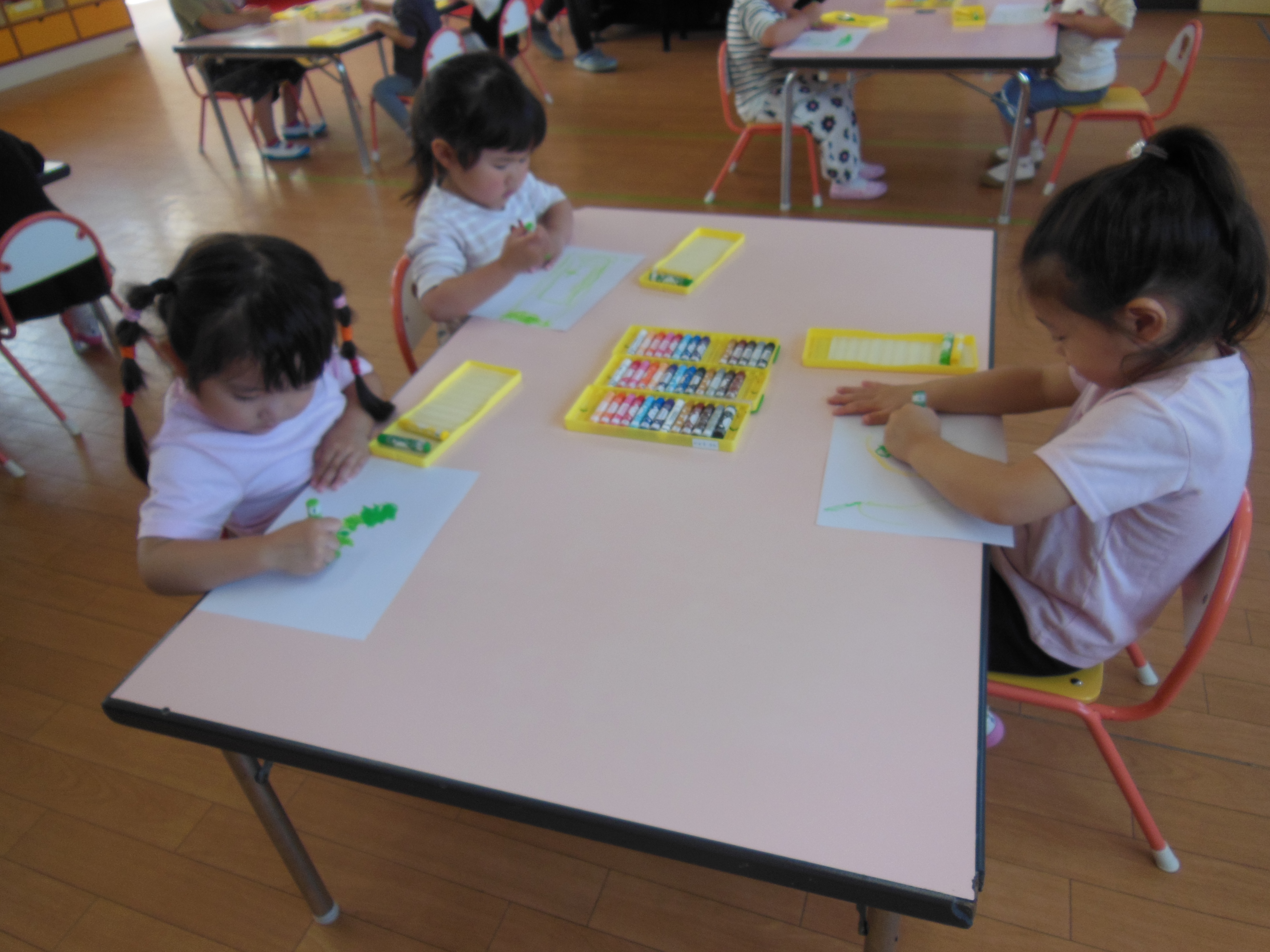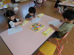 はじき絵に挑戦!2025年5月22日いも虫をイメージしながら体の模様をクレヨンで描きました。なんとなーくいも虫の形を描いている子が多く、想像して描く力もついていて、ビックリ!!その後は、絵の具を塗り、はじき絵をしました。どんなイモムシになるかな~と子ども達も楽しみにしていました(*^_^*) 〖作品紹介♪〗 施設情報愛媛県新居浜市にある児童福祉施設十全保育園げんきな子 がんばる子 やさしい子 楽しく食べるげんきな子児童福祉施設 十全保育園〒792-0011愛媛県新居浜市西原町2-3-12TEL:0897-33-3055 FAX:0897-33-3078十全保育園WEBサイト最近の記事2025年8月27日プール最終日~♪児童福祉施設 十全保育園2025年8月27日プール大会児童福祉施設 十全保育園2025年8月27日お茶のおけいこ児童福祉施設 十全保育園2025年8月12日職員会児童福祉施設 十全保育園2025年8月7日いっぱいあそんだよ♪~つぼみ・ちゅうりっぷ・もも~児童福祉施設 十全保育園2025年7月25日サマーキッズカーニバル♫児童福祉施設 十全保育園十全保育園の記事一覧