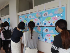 今年度、初めての参観日がありました。新入園児さんたちにとっては、初めての参観日!お父さん、お母さんたちは、入園してから我が子がどんな様子で保育園生活を送っているのか、どんな表情をしながらお友達や保育士と過ごしているのかと心配や不安もあったと思います。参観日当日は、いつもと違った環境、雰囲気に泣いてしまかな?と私たち保育士も心配していましたが、お母さんを見つけて、手を振って笑顔をみせたりと思いもよらぬ姿を見せてくれる子が多く、いつもと変わらずの様子を見ていただけたことに、安心したと共に嬉しく思いました(*^_^*)