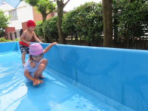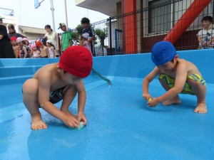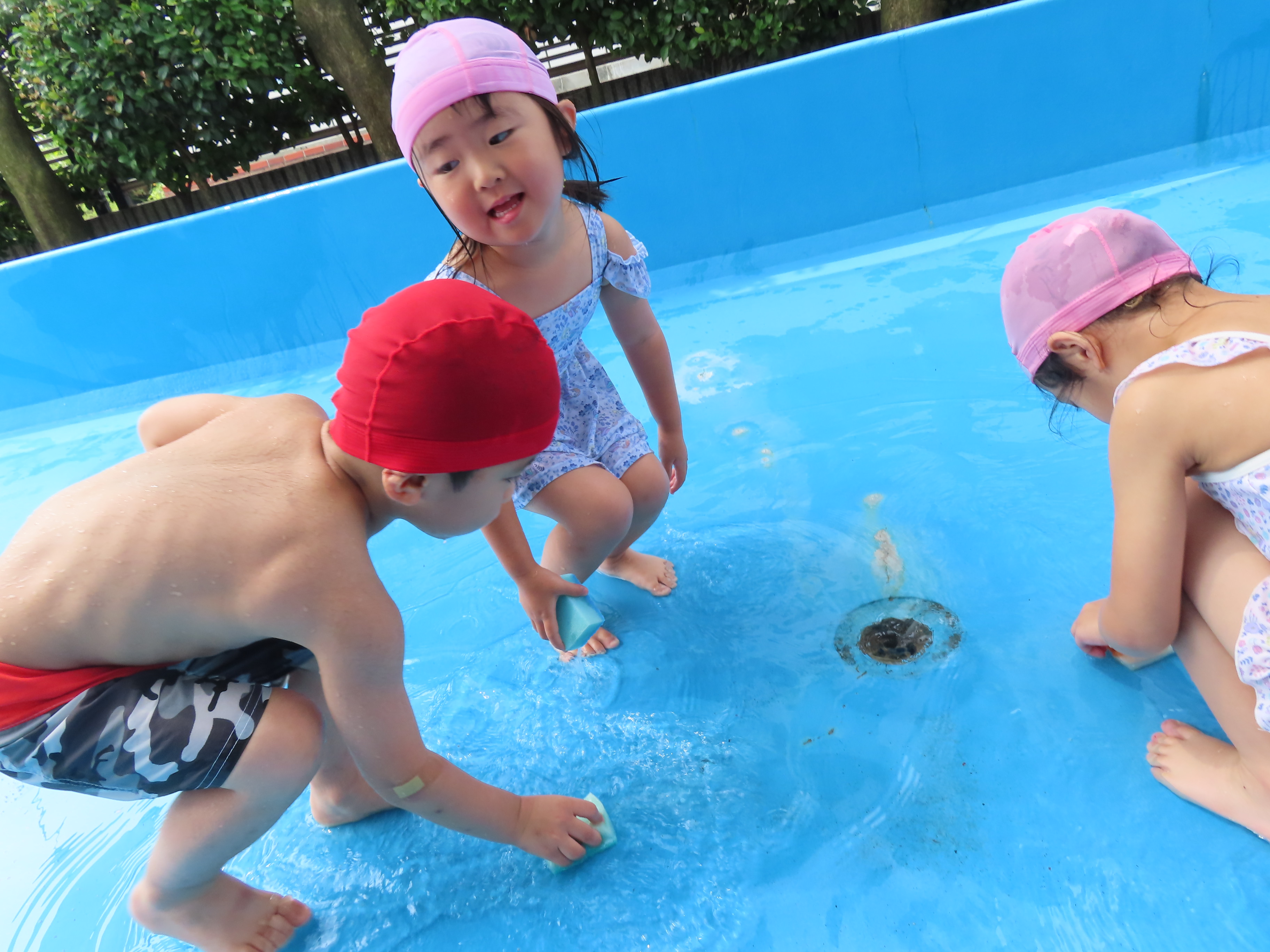 プール開きに向けて、みんなでプールのお掃除♪ ゴシゴシと床をこすったり、砂をのけたり…つい水遊びにも発展しつつ(笑)頑張ってくれました!! 暑い夏!!プール遊びがたくさん楽しめるといいねぇ~(*^_^*)