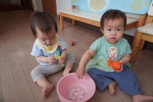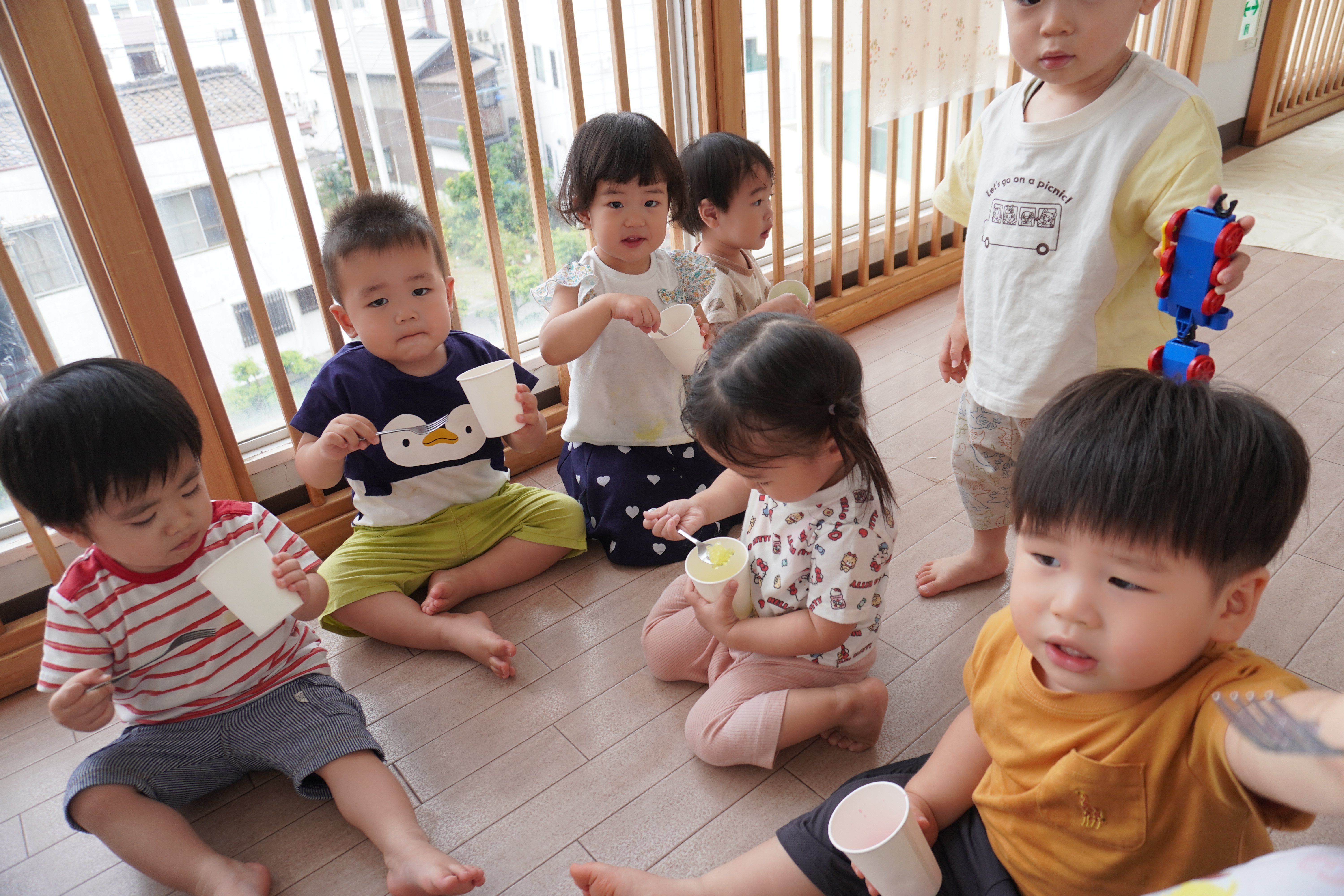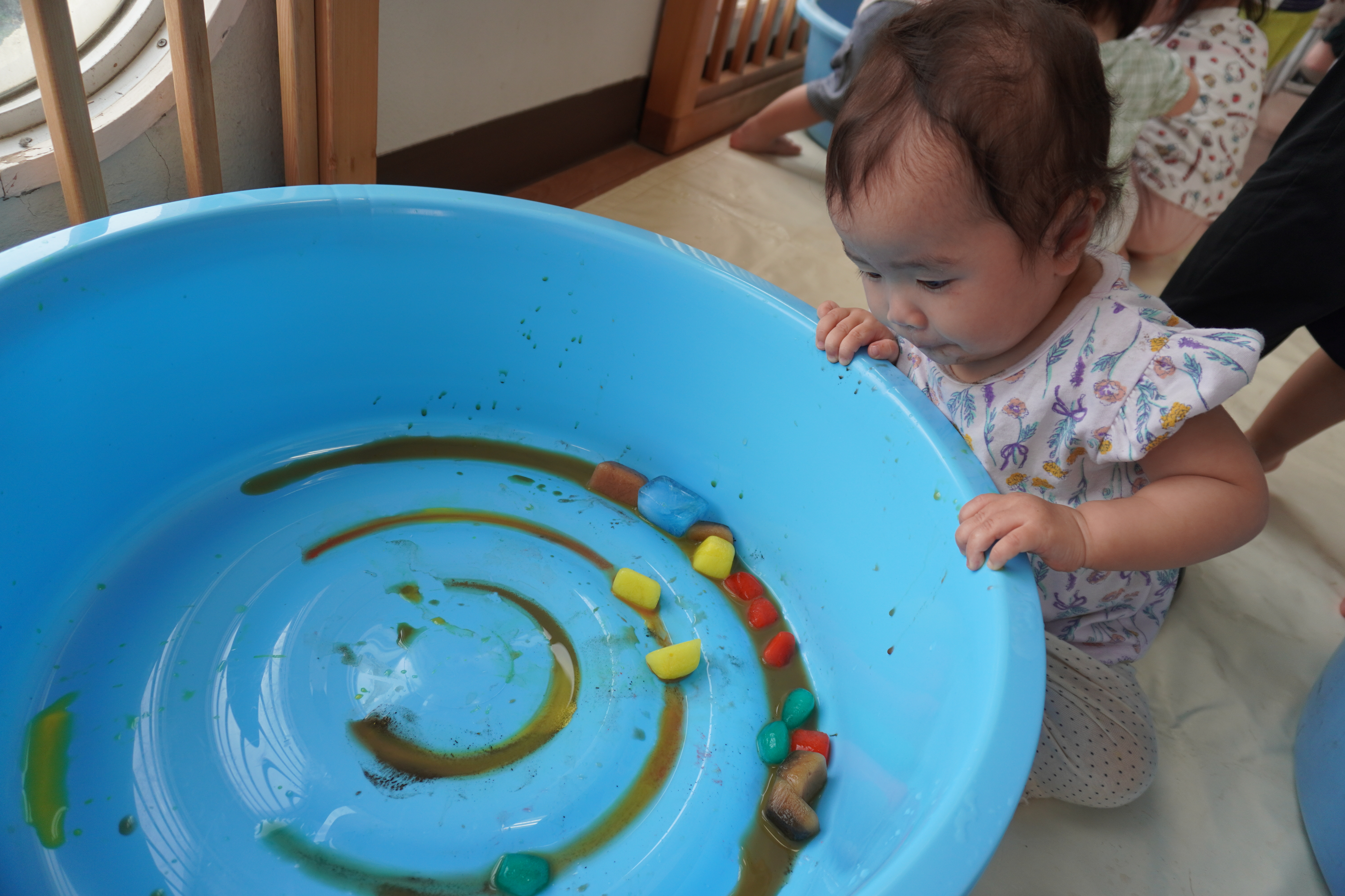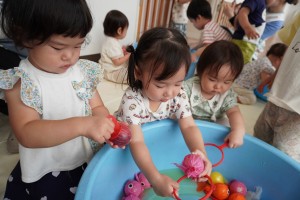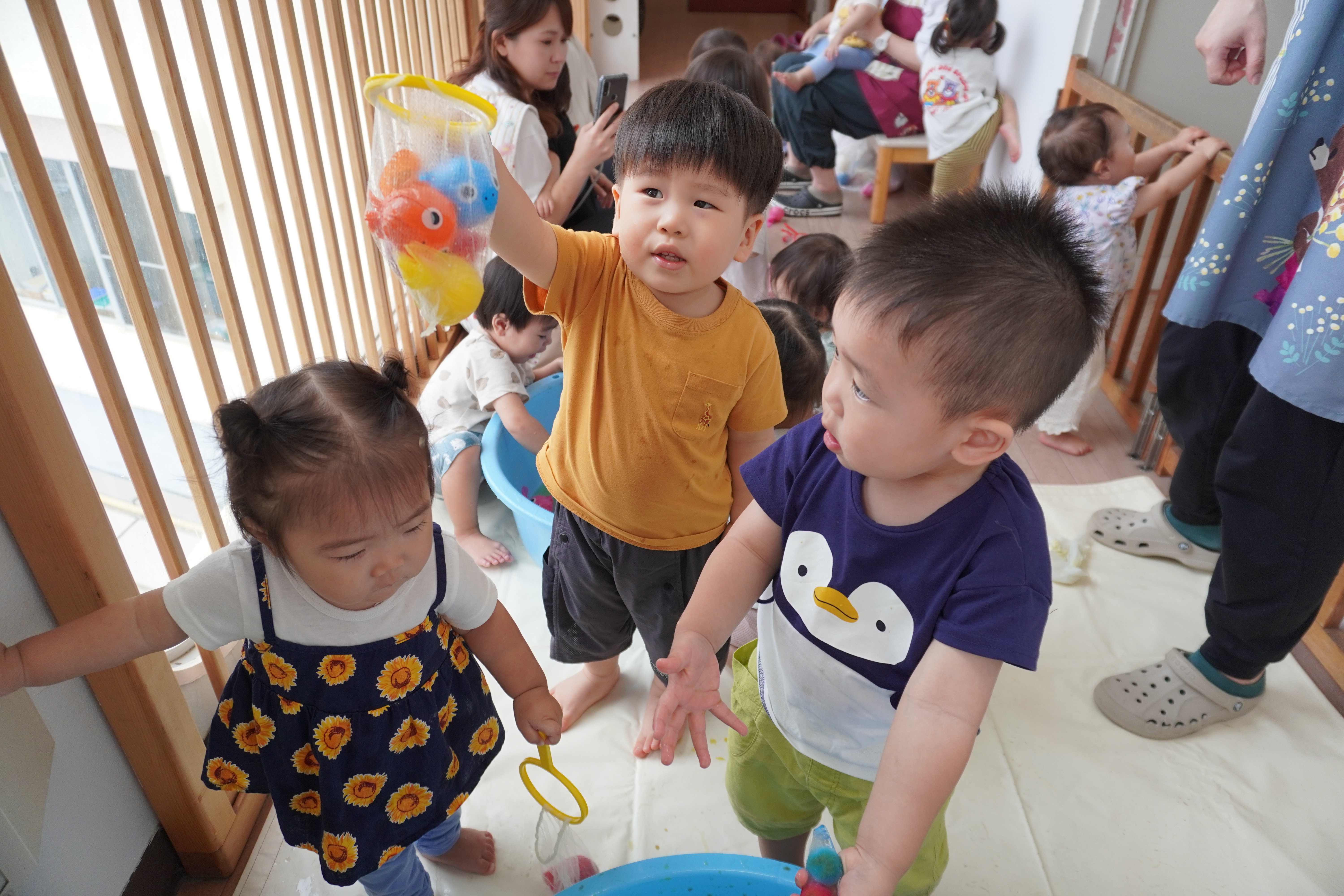 いっぱいあそんだよ♪~つぼみ・ちゅうりっぷ・もも~2025年8月7日今日はプール大会!あいにくの雨…(´;ω;`)けれど、みんなで廊下に集まり、そこで、夏ならではのあそびを楽しみました~♪金魚すくいに、カラフル氷…「なんだなんだ?」と興味津々で遊んでいました♡ (金魚すくい)「すくえるかな~」「きんぎょさん♡」「できた♪」 (カラフル氷)「さわってみたよ♪」「なんだなんだ?」 ちゅうりっぷぐみとももぐみは、少しだけかき氷も食べました♪つめたくて、甘くて、おいしかったね♪ 暑さもまだまだ続くけど、みんなで元気に過ごそうね~(*^-^*) 施設情報愛媛県新居浜市にある児童福祉施設十全保育園げんきな子 がんばる子 やさしい子 楽しく食べるげんきな子児童福祉施設 十全保育園〒792-0011愛媛県新居浜市西原町2-3-12TEL:0897-33-3055 FAX:0897-33-3078十全保育園WEBサイト最近の記事2025年8月27日プール最終日~♪児童福祉施設 十全保育園2025年8月27日プール大会児童福祉施設 十全保育園2025年8月27日お茶のおけいこ児童福祉施設 十全保育園2025年8月12日職員会児童福祉施設 十全保育園2025年7月25日サマーキッズカーニバル♫児童福祉施設 十全保育園2025年7月23日夏祭り♪児童福祉施設 十全保育園十全保育園の記事一覧