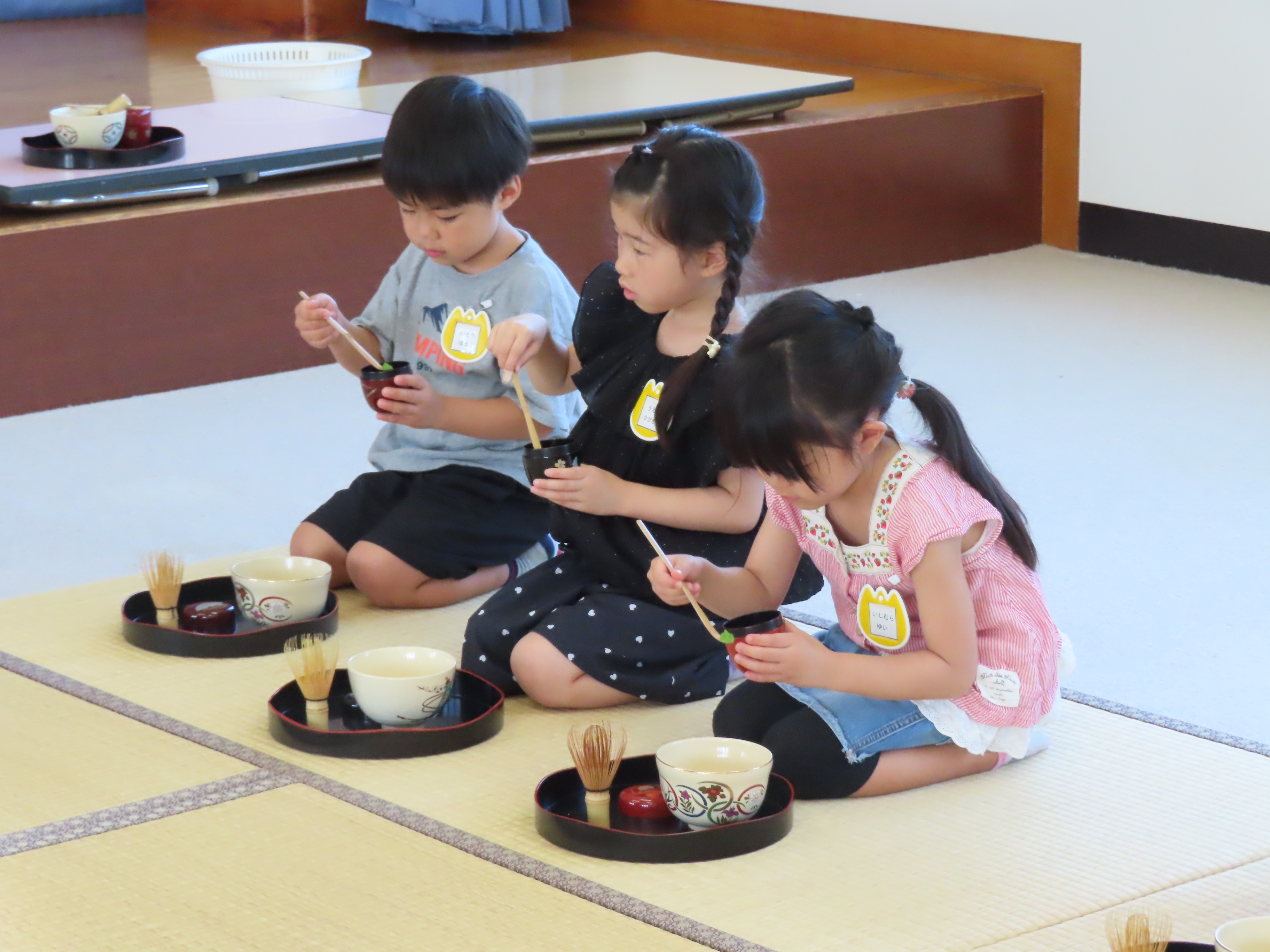 久しぶりにお茶のお稽古の様子をアップです♪5月から始まったお茶のおけいこ!正座をして座ることにもだいぶ慣れてきて、姿勢を正しながら最後まで取り組めるようにもなってきました。今は茶筅を使ってお茶を点てる練習を頑張っています!毎回、お茶菓子を食べれることも、何より楽しみにしている子ども達です(笑)