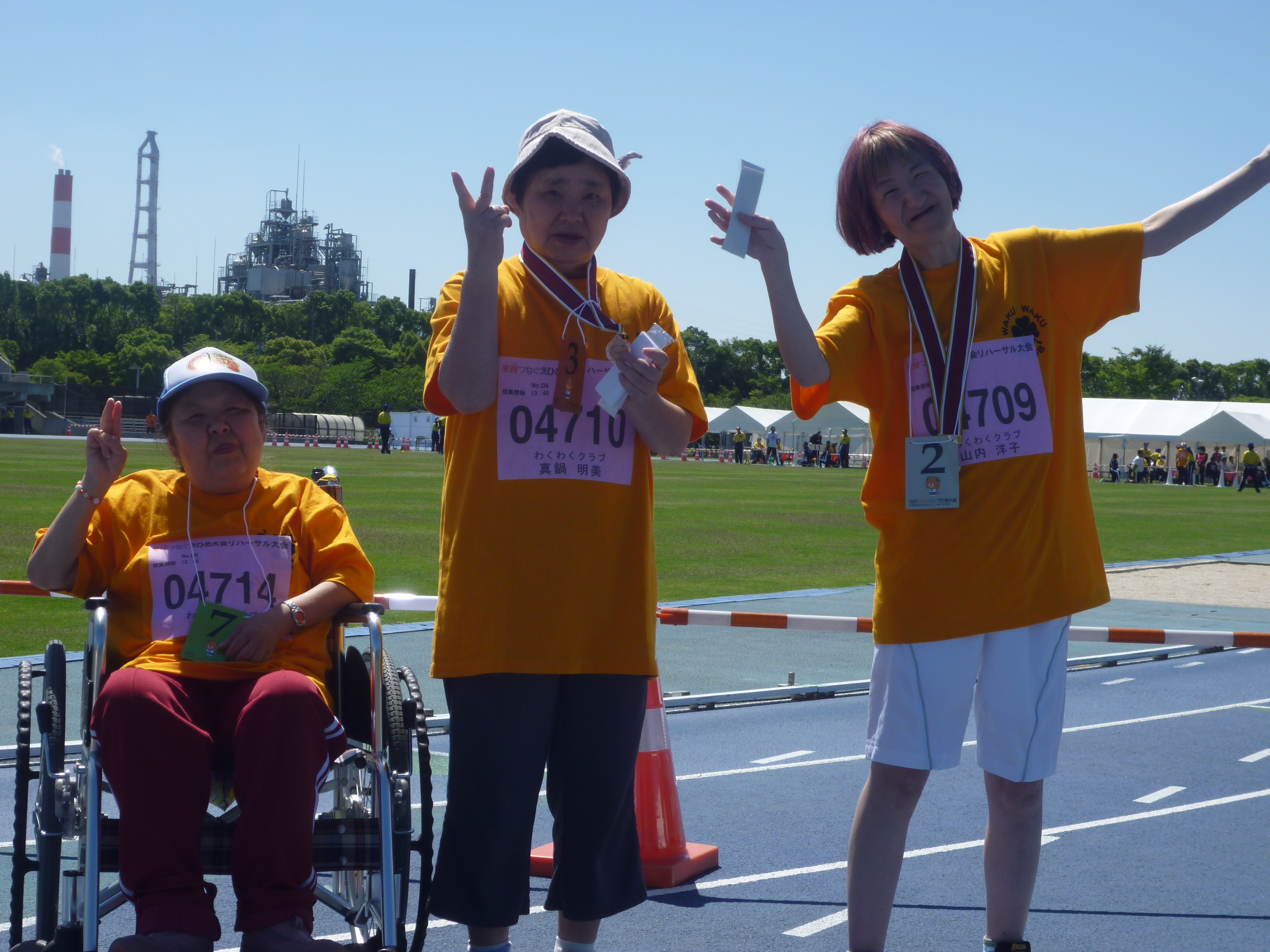 平成29年5月28日(日)第17回全国障がい者スポーツ大会【愛顔(えがお)つなぐえひめ大会】リハーサル大会 兼 第12回愛媛県障がい者スポーツ大会が開催されました。わくわくクラブからも16名の方が、この日のために練習を重ね大会に挑みました。晴天にも恵まれ、ご家族や他の事業所、ボランティアの方々から多くの声援をうけ、練習の成果を発揮することが出来ました。スポーツ大会を通して沢山の笑顔をつなぐことが出来たように感じます。多くの応援、ありがとうございました!!