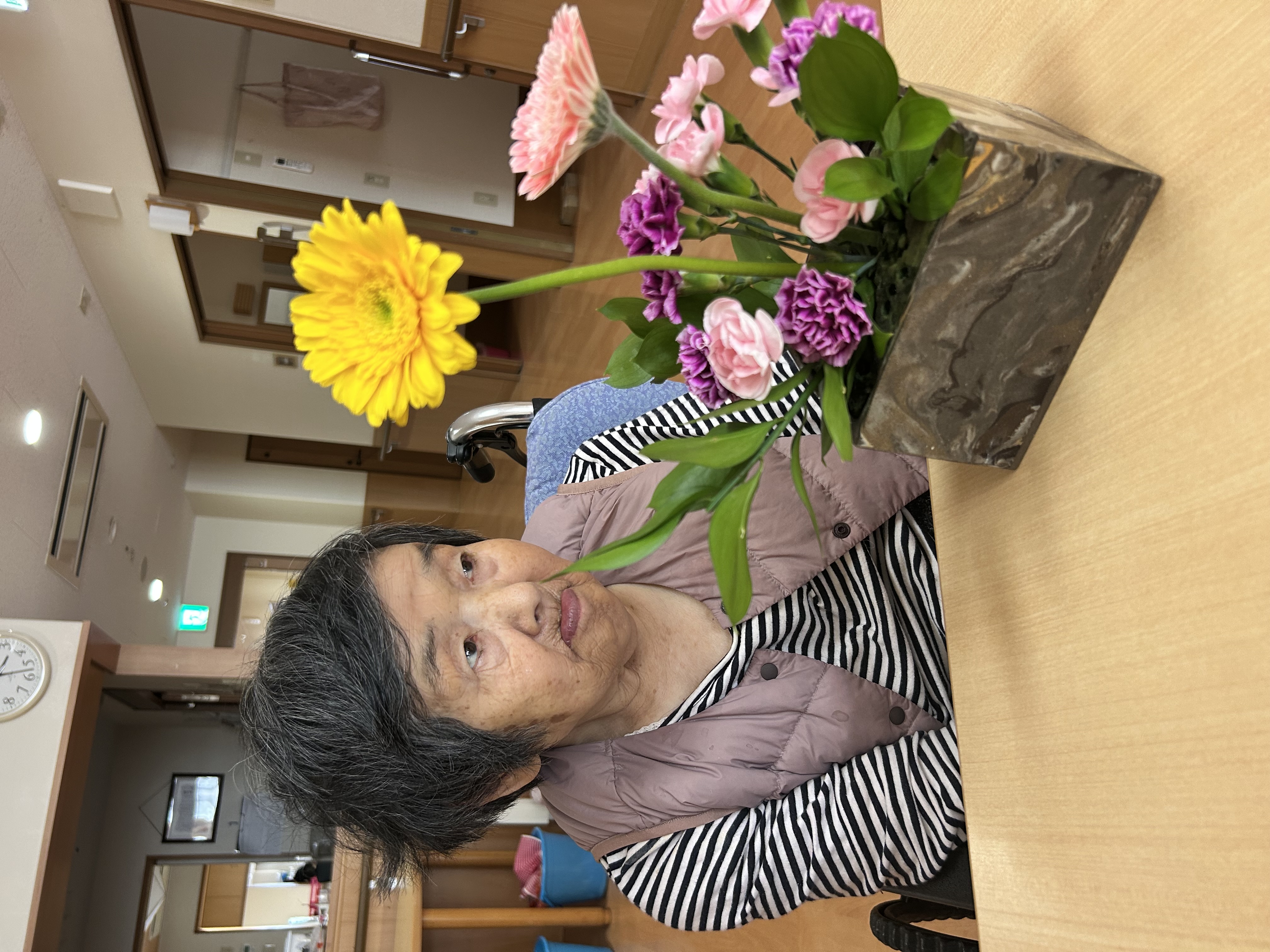 少し、活け花の写真です(*^-^*)2025年5月23日 なかなか上手に活けることが出来たと思います(*^-^*)<自画自賛 のんびりした時間の中で、お花と一緒のお写真です。 施設情報愛媛県新居浜市にある地域密着型介護老人福祉施設、グループホーム恵海笑顔と思いやりを大切に、あたたかい絆で広げよう地域の輪福祉館 恵海(めぐみ)〒792-0896 愛媛県新居浜市阿島1-7-20TEL:0897-67-1100 FAX:0897-67-1102惠海WEBサイト最近の記事2025年9月27日GHお誕生日会福祉館 恵海2025年9月24日GHおでかけ福祉館 恵海2025年9月11日敬老会の後は、お楽しみの・・・福祉館 恵海2025年9月11日敬老会を開催しました(*^-^*)福祉館 恵海2025年9月10日GH最近の様子福祉館 恵海2025年9月9日GH生け花福祉館 恵海恵海の記事一覧
