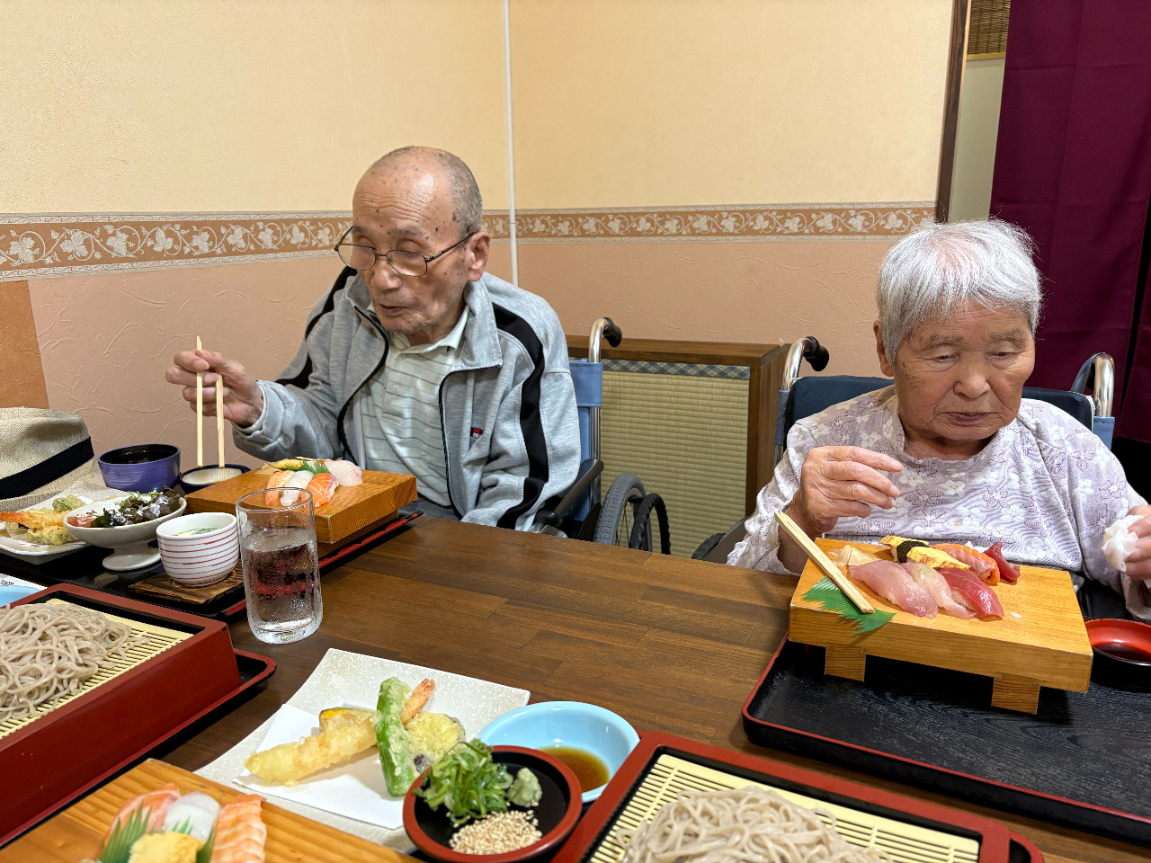 お寿司屋さん「すし若」にて2025年6月16日久々の外食行事! 昼食にお寿司をチョイスしました(*^-^*) 車椅子で入店できるお店を探し、「すし若」に決定です( *´艸`) 注文をしたらいよいよ実食!!! ちゃっかり私も頂きました(´∀`*)ウフフ 少し豪華な昼食で大満足です(≧◇≦) 施設情報愛媛県新居浜市にある地域密着型介護老人福祉施設、グループホーム恵海笑顔と思いやりを大切に、あたたかい絆で広げよう地域の輪福祉館 恵海(めぐみ)〒792-0896 愛媛県新居浜市阿島1-7-20TEL:0897-67-1100 FAX:0897-67-1102惠海WEBサイト最近の記事2025年9月27日GHお誕生日会福祉館 恵海2025年9月24日GHおでかけ福祉館 恵海2025年9月11日敬老会の後は、お楽しみの・・・福祉館 恵海2025年9月11日敬老会を開催しました(*^-^*)福祉館 恵海2025年9月10日GH最近の様子福祉館 恵海2025年9月9日GH生け花福祉館 恵海恵海の記事一覧