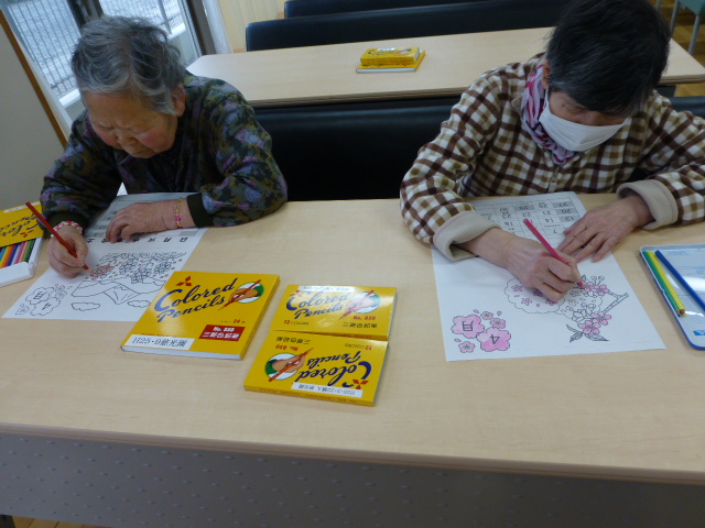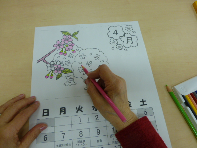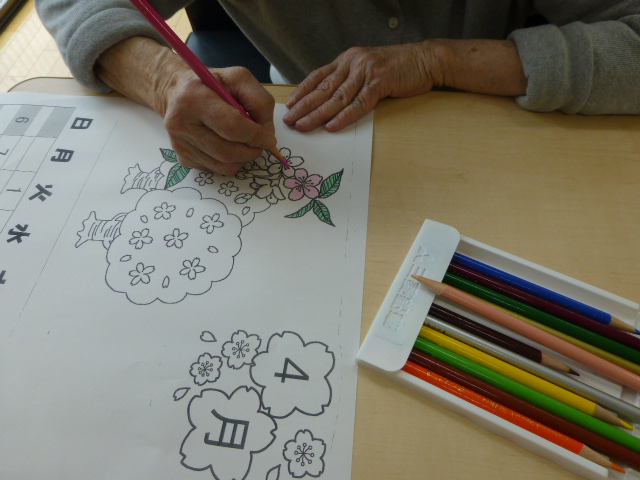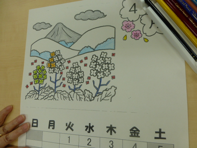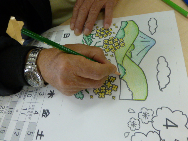 恒例のカレンダー作成2014年3月29日 こんにちは。相談員です。 毎月恒例になりました、カレンダー作成です。 最近では、施設の行事内容も書き込みできたり、自分の病院予定を記入できることで喜ばれて参加されています。 時期が来ると 「もうそろそろじゃねぇ」 「今度は何の絵柄にするん?」 など、会話もはずみます。 細部まで細かく、自分のこだわりで色を思い思いに塗っていきます。 音楽を流しながら(今回は希望で懐メロです)作成されています。 完成です。 大事そうに抱えて帰られる姿に、また楽しい絵柄を探そうと思わせていただけます。 施設情報愛媛県新居浜市にある養護老人ホーム慈光園ご利用される方の一人ひとりの意志および人格を尊重し、安心して豊かな施設生活を営むことができるよう必要な支援を行います。養護老人ホーム 新居浜市立 慈光園〒792-0035愛媛県新居浜市西の土居町1-6-20 TEL:0897-32-4325 FAX:0897-32-4328慈光園WEBサイト最近の記事2025年10月27日芋アート養護老人ホーム 慈光園2025年10月27日芋ほり養護老人ホーム 慈光園2025年10月16日太鼓台 訪問養護老人ホーム 慈光園2025年10月14日new 秋の新作 手芸クラブ養護老人ホーム 慈光園2025年10月14日10月の誕生者おめでとうございます!養護老人ホーム 慈光園2025年10月14日防火訓練(昼間想定)養護老人ホーム 慈光園慈光園の記事一覧