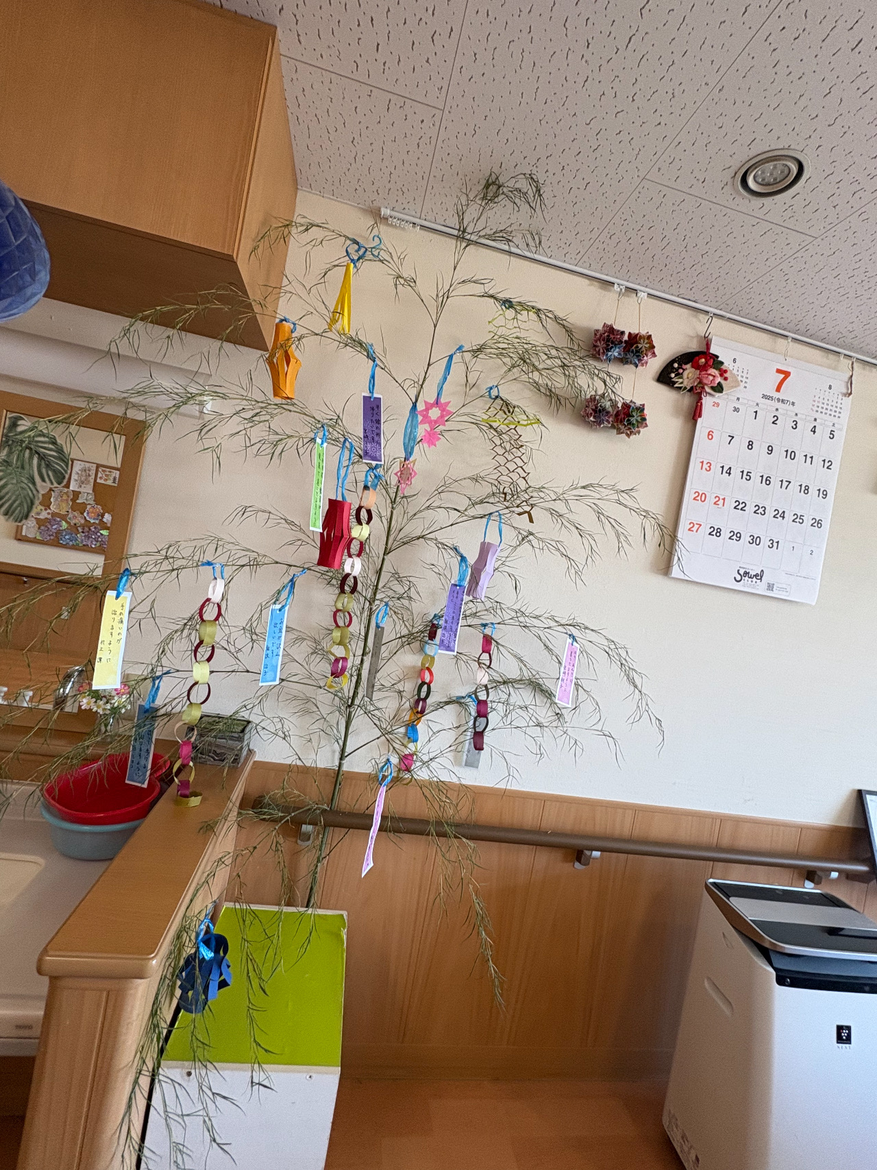 七夕さらさら♪2025年7月7日 飾りを作るとなるとなかなか大変ですね・・・ ちょきちょきちょきちょき・・・・・ ちょきちょきちょきちょき・・・・ 何とか間に合いました( ;∀;) 願い事、叶うといいですね♪ 施設情報愛媛県新居浜市にある地域密着型介護老人福祉施設、グループホーム恵海笑顔と思いやりを大切に、あたたかい絆で広げよう地域の輪福祉館 恵海(めぐみ)〒792-0896 愛媛県新居浜市阿島1-7-20TEL:0897-67-1100 FAX:0897-67-1102惠海WEBサイト最近の記事2025年9月27日GHお誕生日会福祉館 恵海2025年9月24日GHおでかけ福祉館 恵海2025年9月11日敬老会の後は、お楽しみの・・・福祉館 恵海2025年9月11日敬老会を開催しました(*^-^*)福祉館 恵海2025年9月10日GH最近の様子福祉館 恵海2025年9月9日GH生け花福祉館 恵海恵海の記事一覧