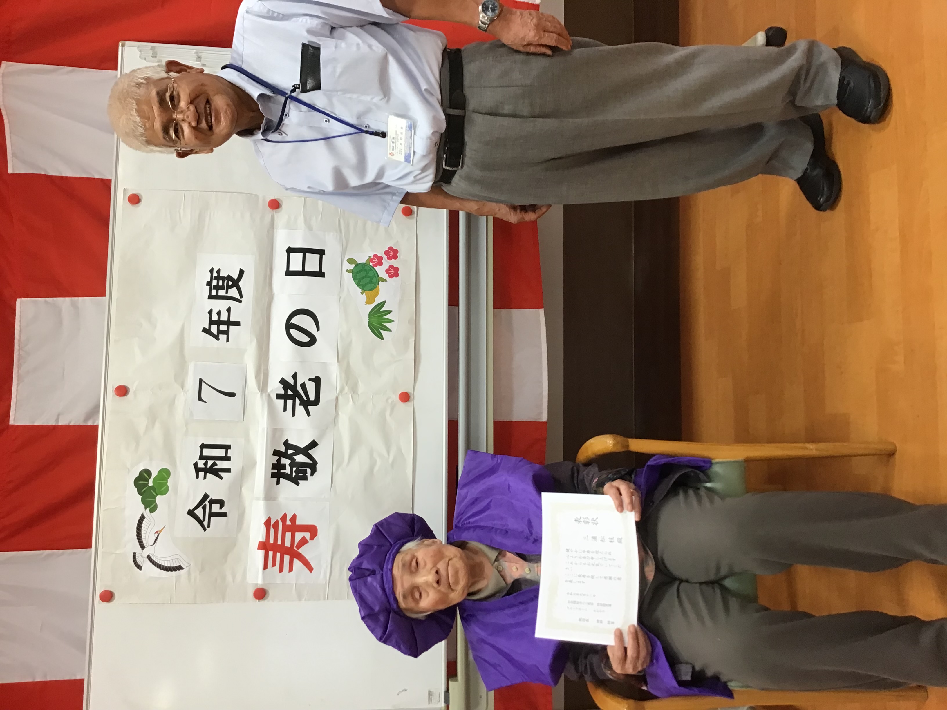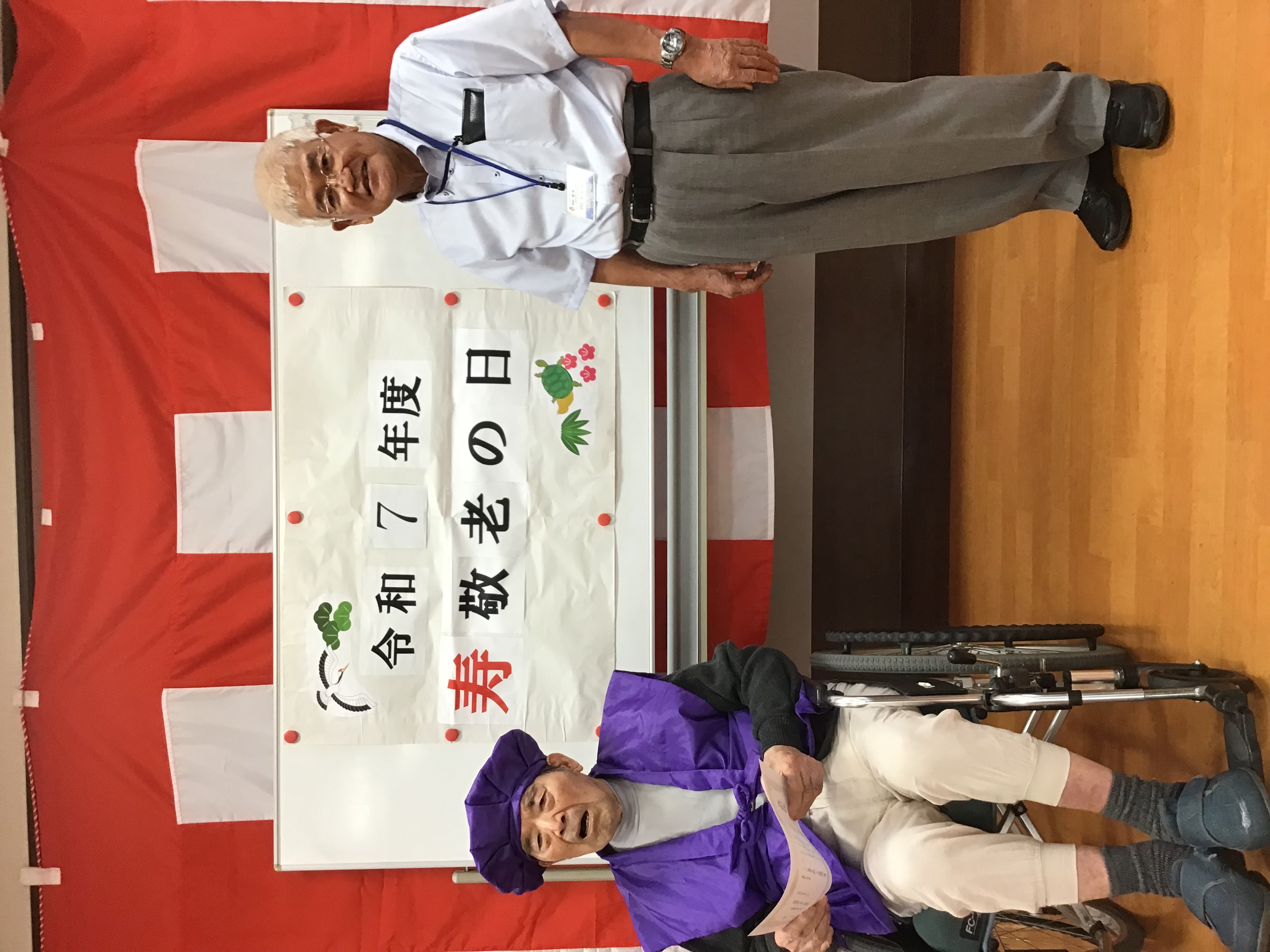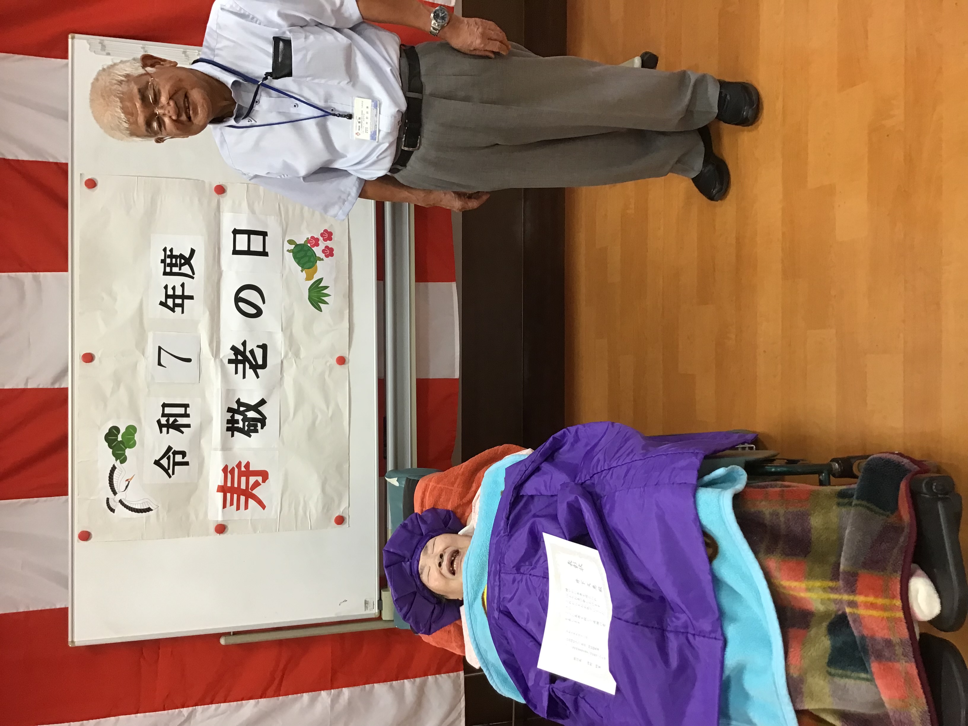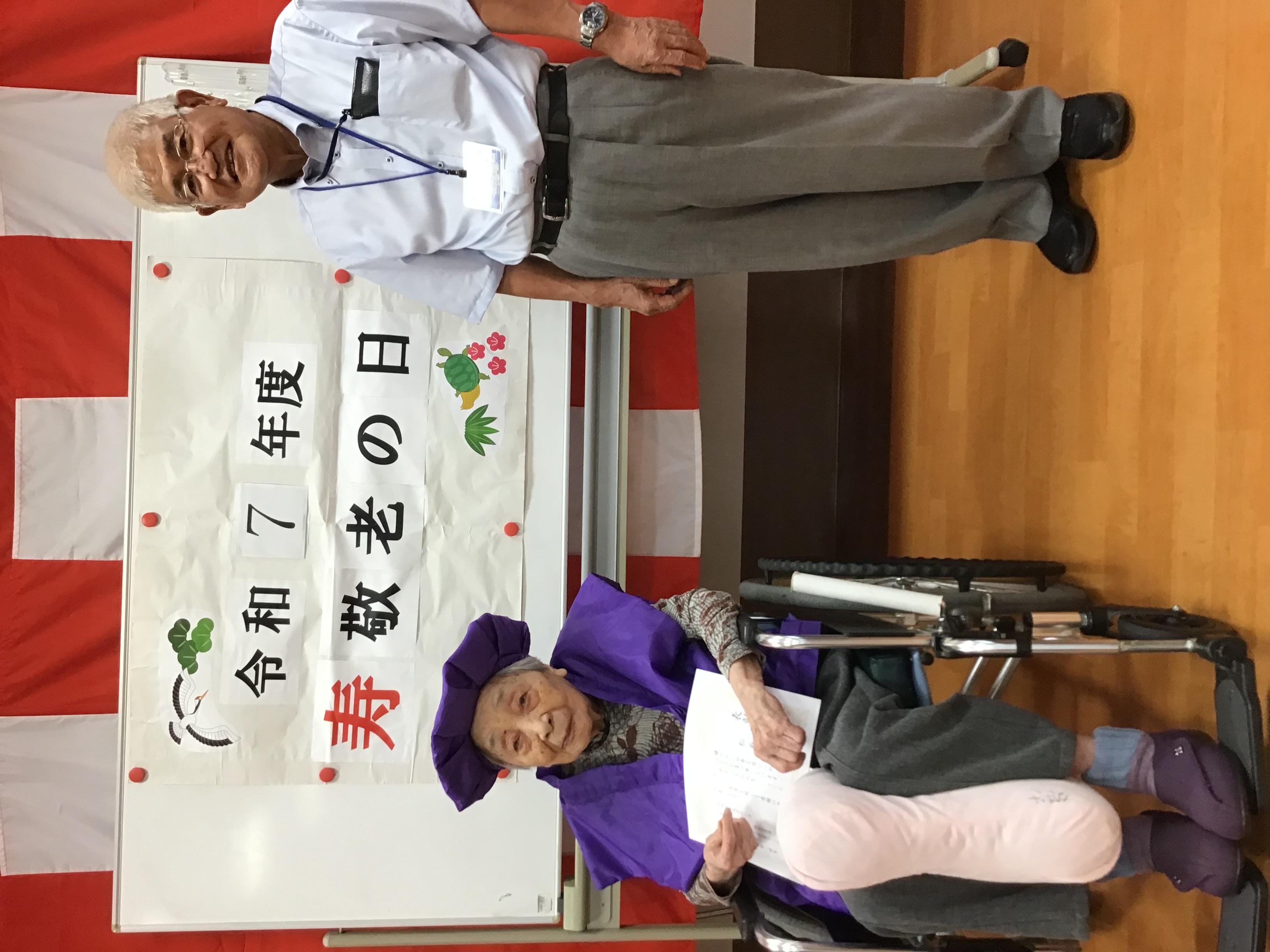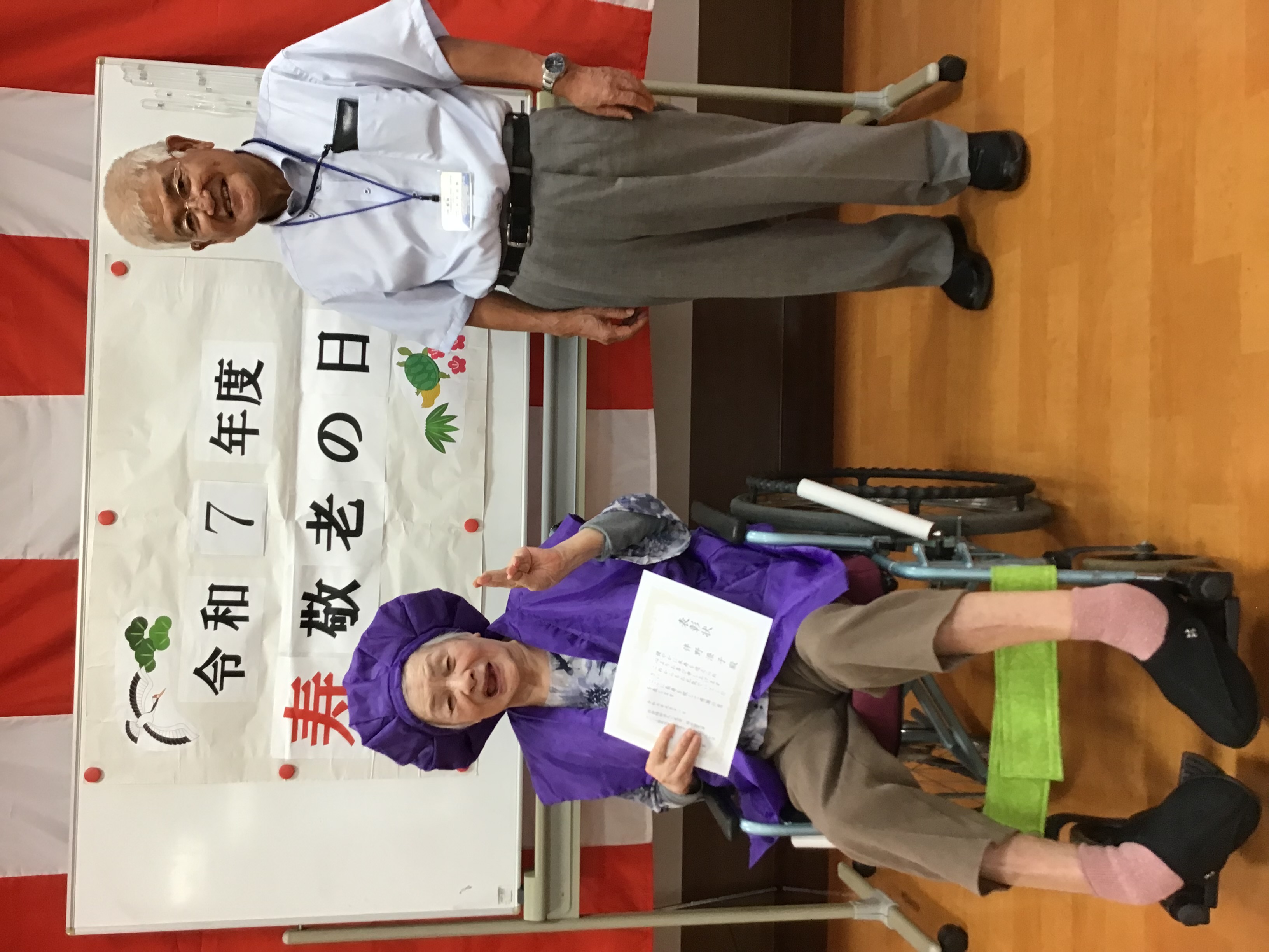 敬老会を開催しました(*^-^*)2025年9月11日今日は福祉館恵海のご利用者の敬老会でした(*^-^*) また別日に表彰もありますが、一足先にお祝いです(≧◇≦) 恵海での男女最高齢は・・・・ 秘密です( ´∀` )でも、きっと驚くことでしょう(*’ω’*) 喜寿に米寿・・・ 卒寿に白寿に百寿・・・ 皆さんいつまでもお元気で(*‘ω‘ *) 施設情報愛媛県新居浜市にある地域密着型介護老人福祉施設、グループホーム恵海笑顔と思いやりを大切に、あたたかい絆で広げよう地域の輪福祉館 恵海(めぐみ)〒792-0896 愛媛県新居浜市阿島1-7-20TEL:0897-67-1100 FAX:0897-67-1102惠海WEBサイト最近の記事2025年9月27日GHお誕生日会福祉館 恵海2025年9月24日GHおでかけ福祉館 恵海2025年9月11日敬老会の後は、お楽しみの・・・福祉館 恵海2025年9月10日GH最近の様子福祉館 恵海2025年9月9日GH生け花福祉館 恵海2025年9月7日もしもピアノが弾けたなら・・・福祉館 恵海恵海の記事一覧