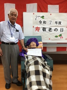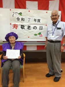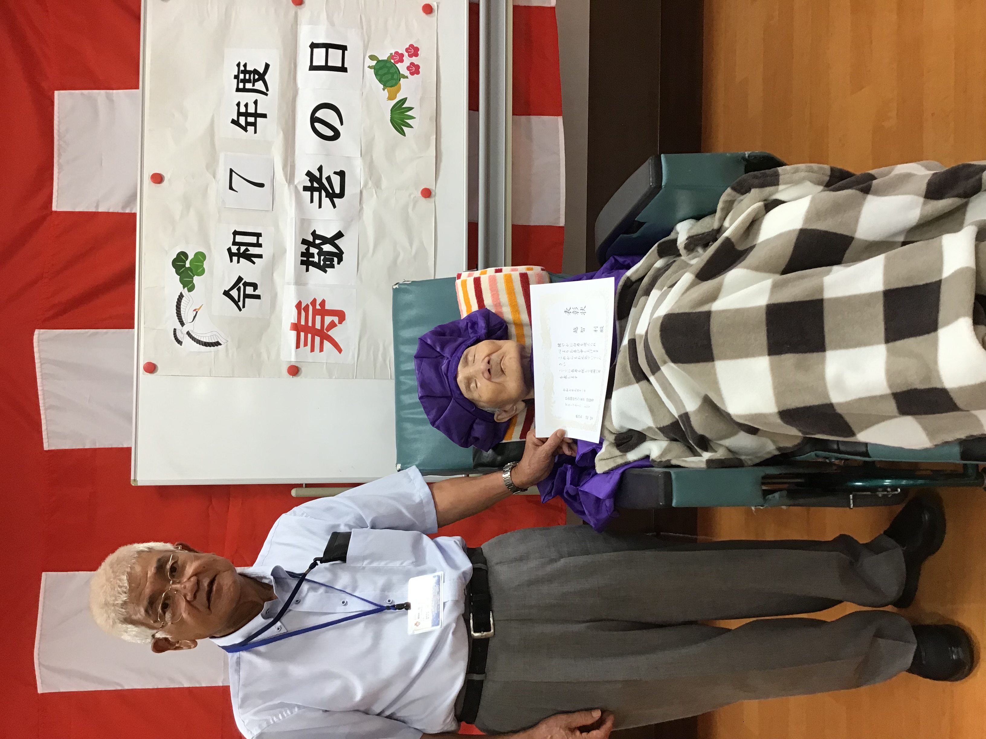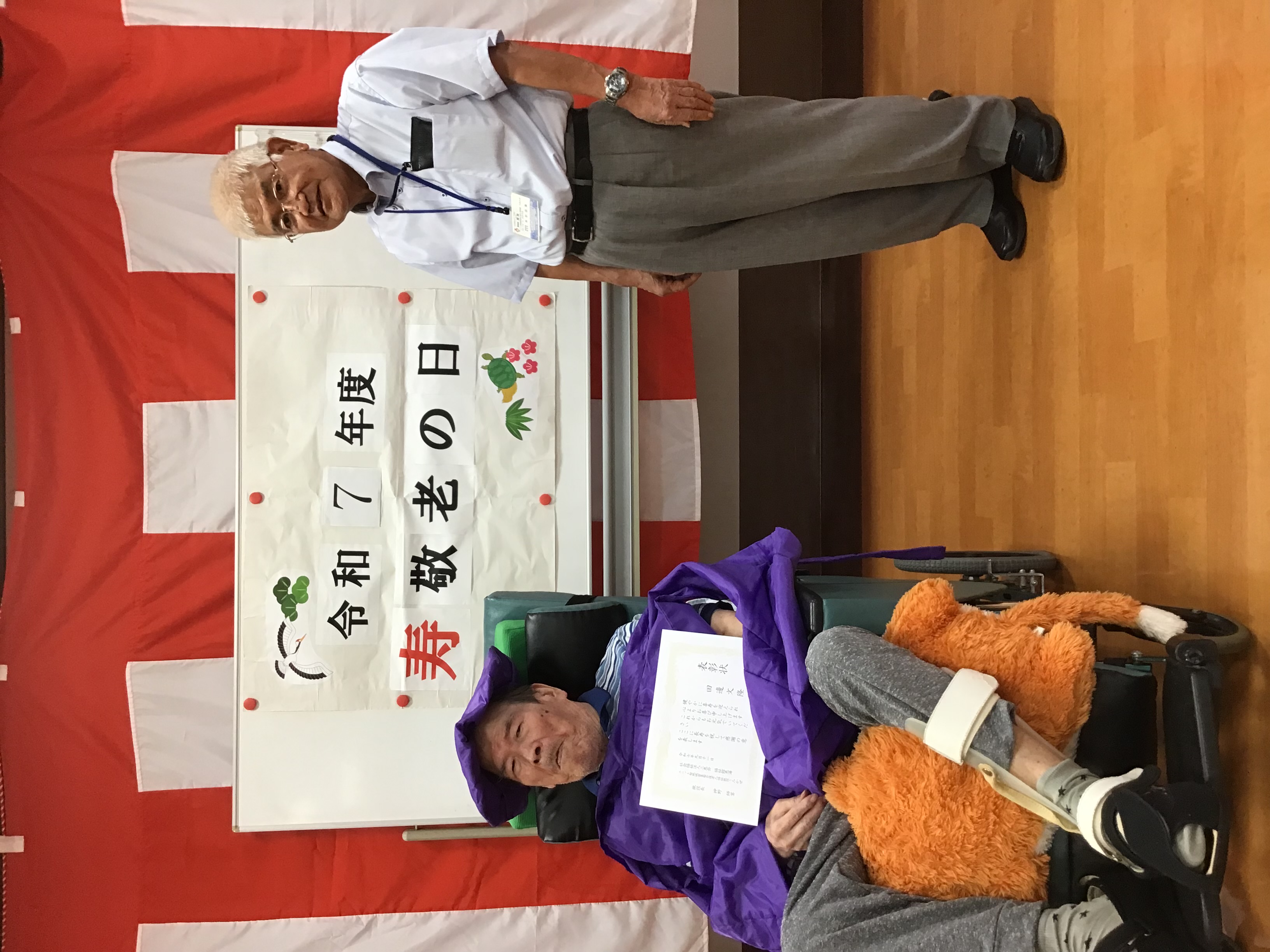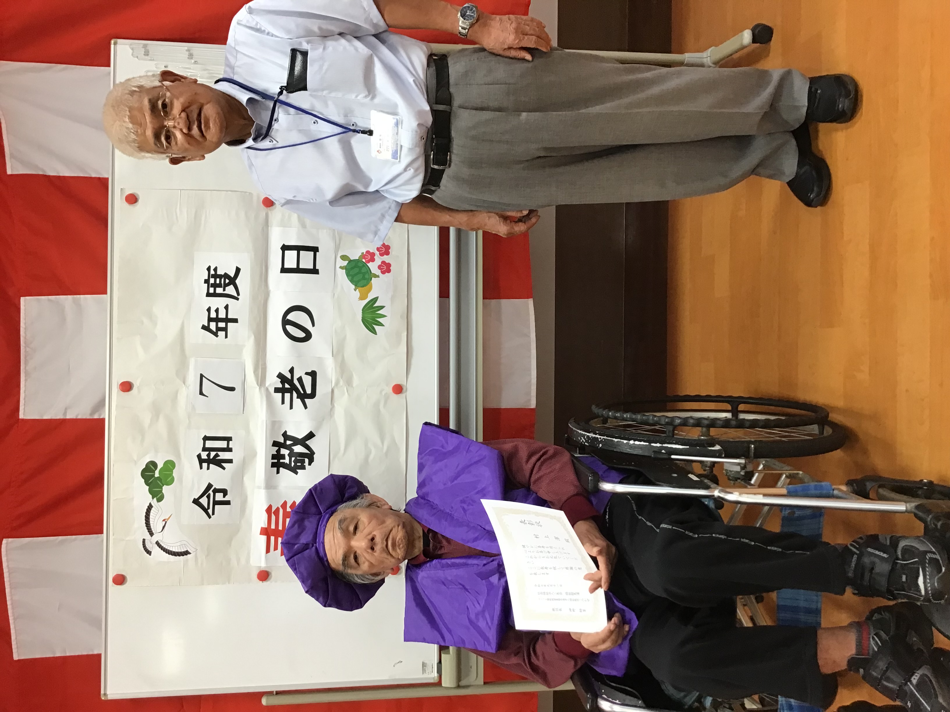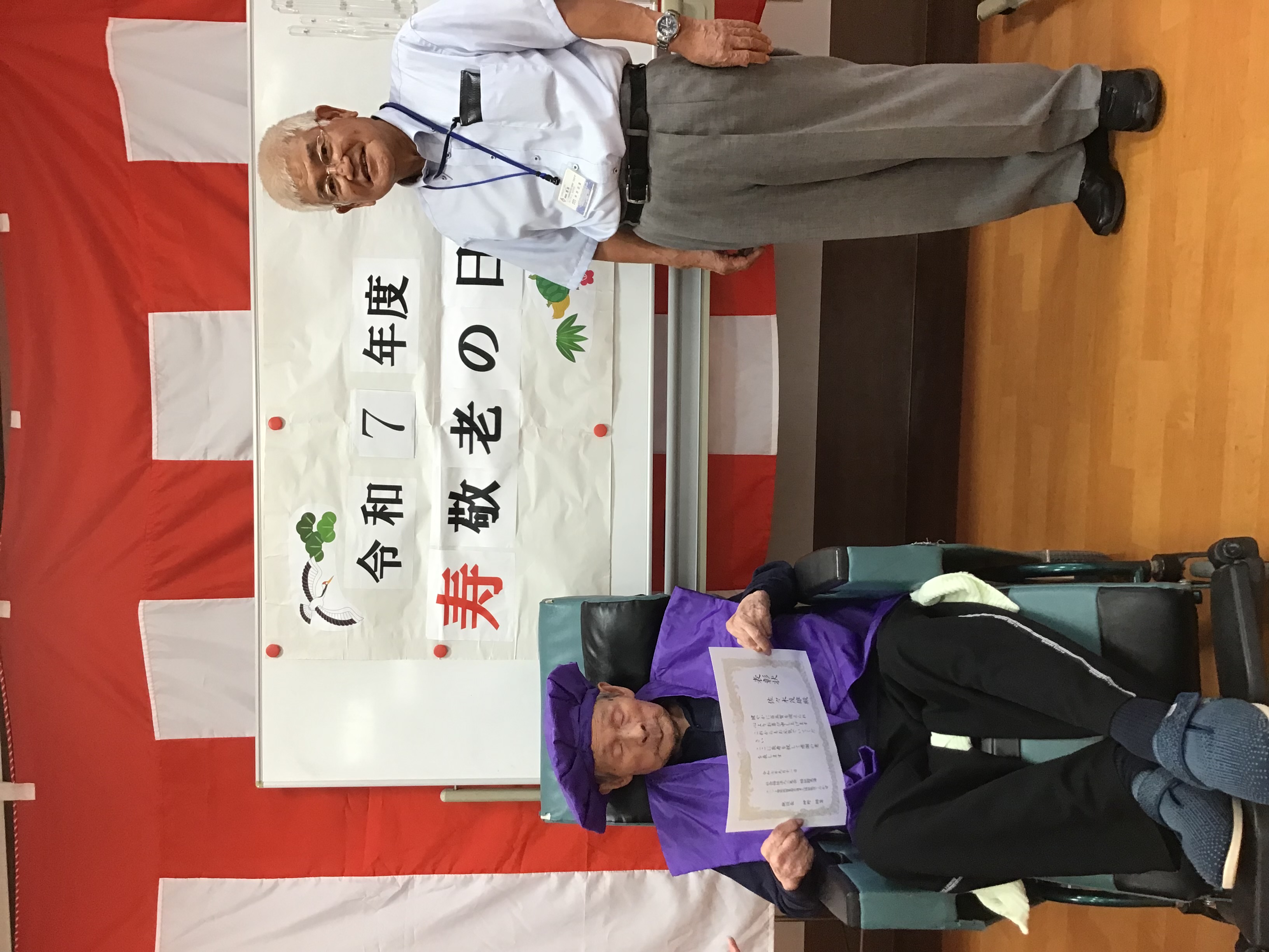 敬老会を開催しました(*^-^*)2025年9月11日今日は福祉館恵海のご利用者の敬老会でした(*^-^*) また別日に表彰もありますが、一足先にお祝いです(≧◇≦) 恵海での男女最高齢は・・・・ 秘密です( ´∀` )でも、きっと驚くことでしょう(*’ω’*) 喜寿に米寿・・・ 卒寿に白寿に百寿・・・ 皆さんいつまでもお元気で(*‘ω‘ *) 施設情報愛媛県新居浜市にある地域密着型介護老人福祉施設、グループホーム恵海笑顔と思いやりを大切に、あたたかい絆で広げよう地域の輪福祉館 恵海(めぐみ)〒792-0896 愛媛県新居浜市阿島1-7-20TEL:0897-67-1100 FAX:0897-67-1102惠海WEBサイト最近の記事2025年9月27日GHお誕生日会福祉館 恵海2025年9月24日GHおでかけ福祉館 恵海2025年9月11日敬老会の後は、お楽しみの・・・福祉館 恵海2025年9月10日GH最近の様子福祉館 恵海2025年9月9日GH生け花福祉館 恵海2025年9月7日もしもピアノが弾けたなら・・・福祉館 恵海恵海の記事一覧
