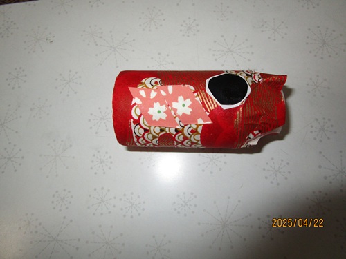 ヤクルト容器の周りに折り紙を貼っていきます。