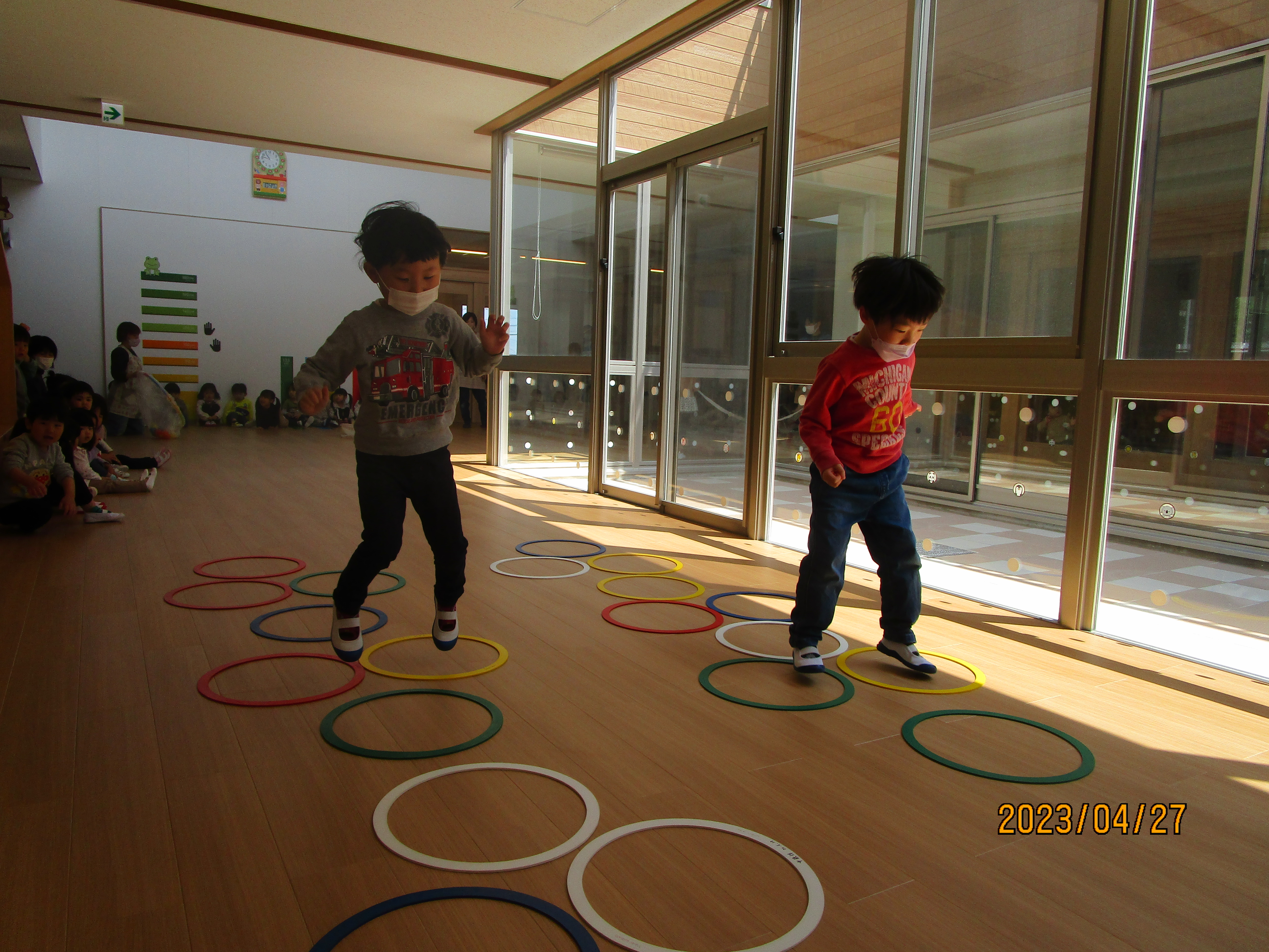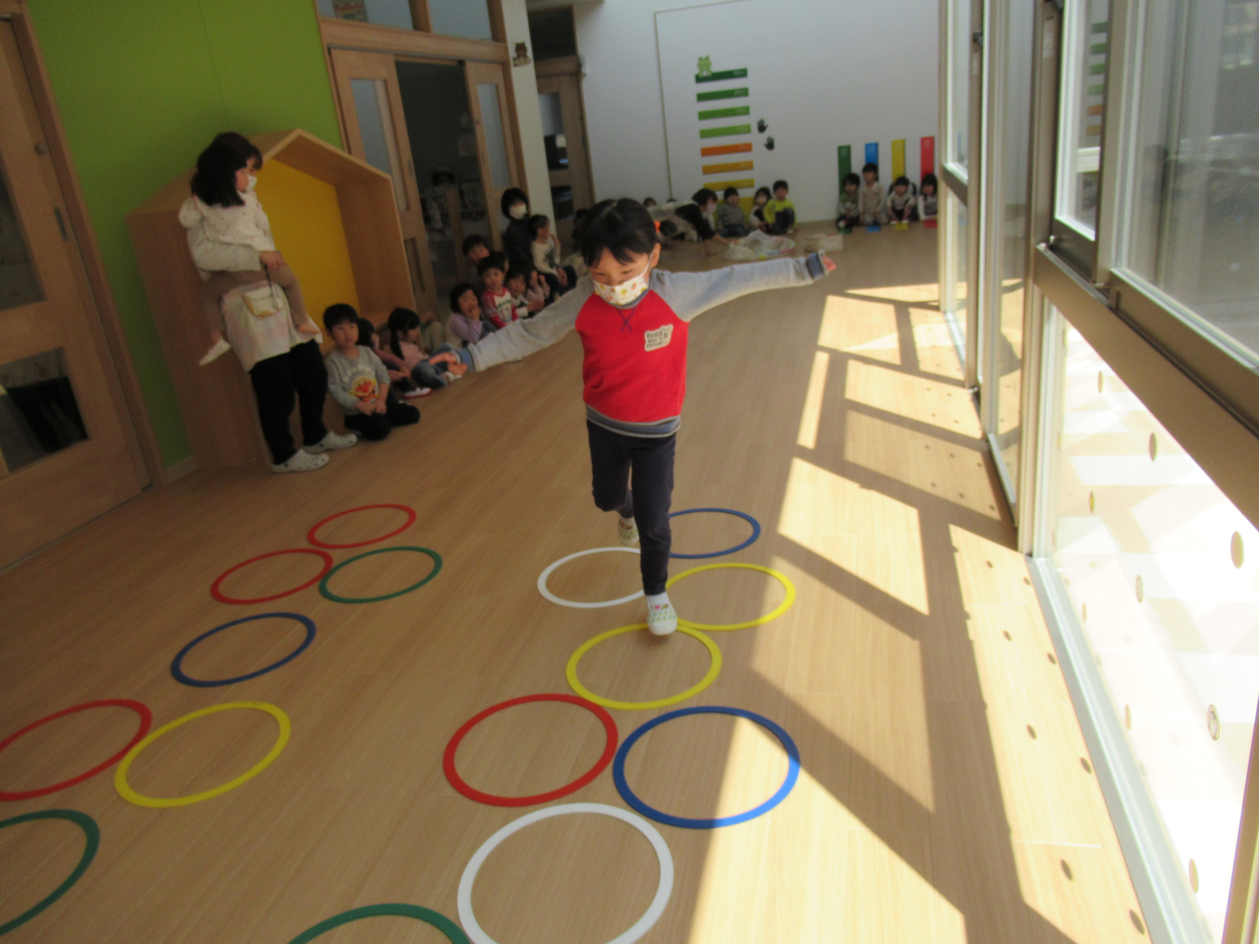 玉入れ、ケンケンパ、ゴムくぐりなどに挑戦!
