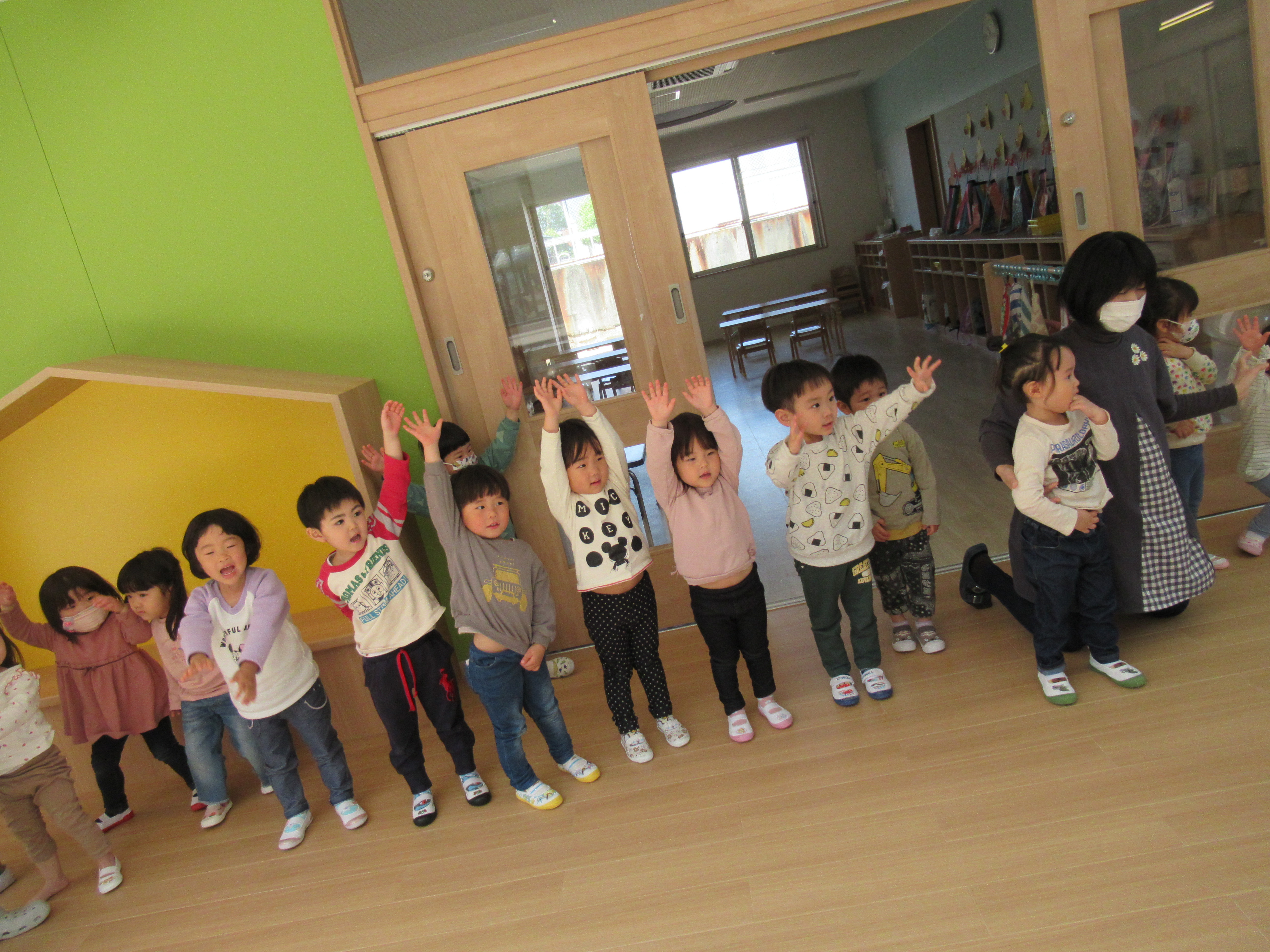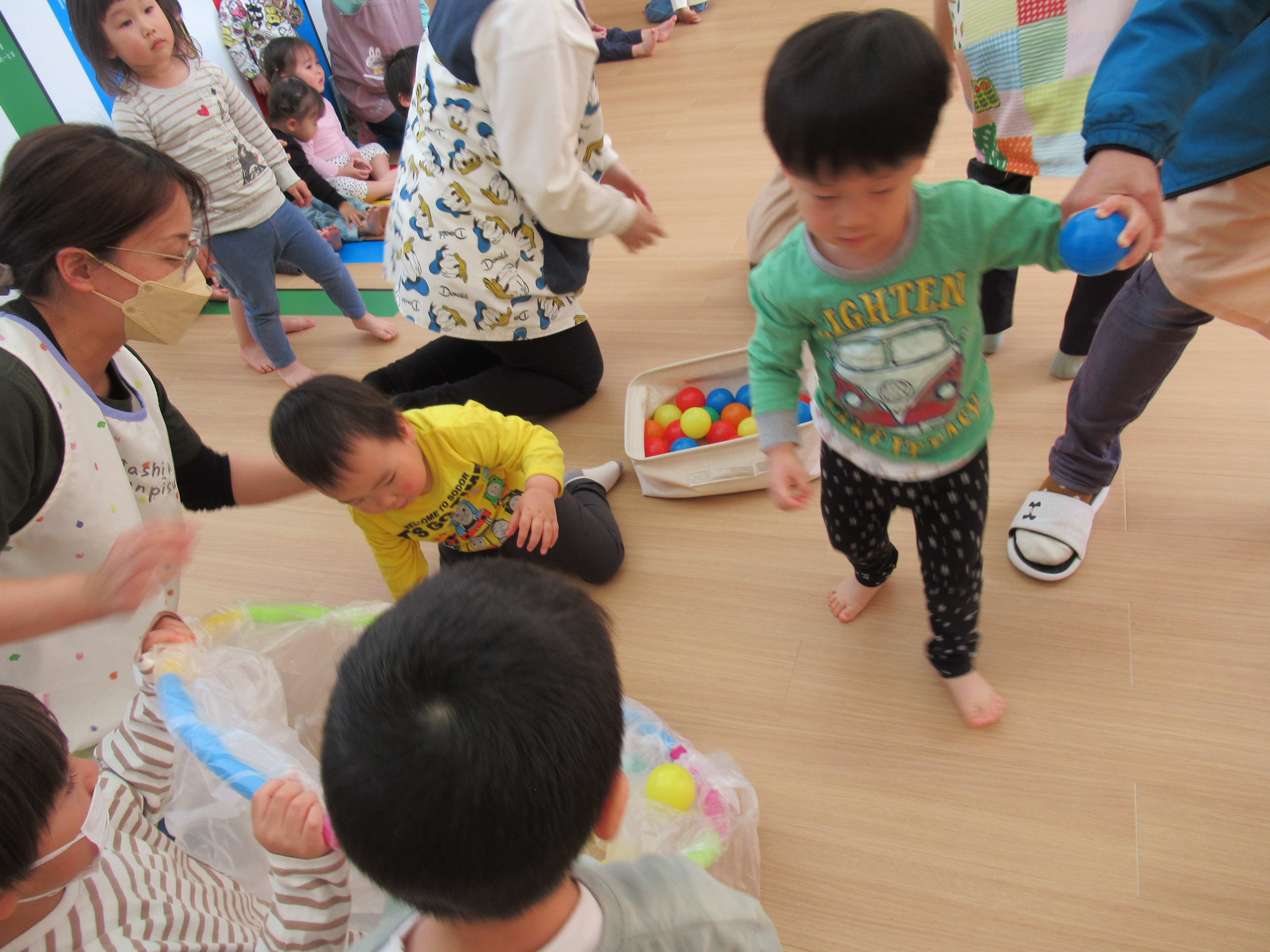 風船が割れそうなほど元気よくタッチしていく子どもたち(#^^#)