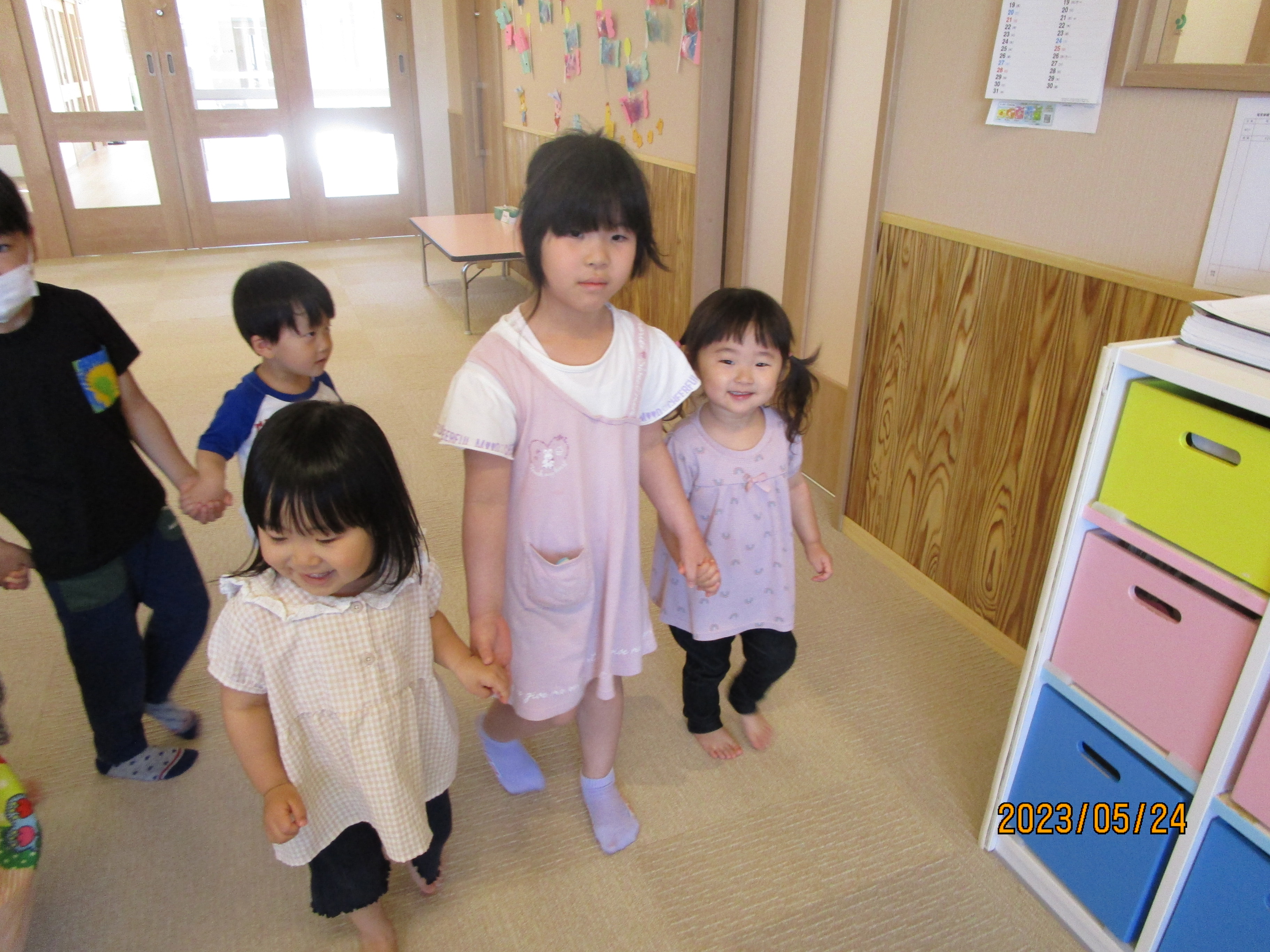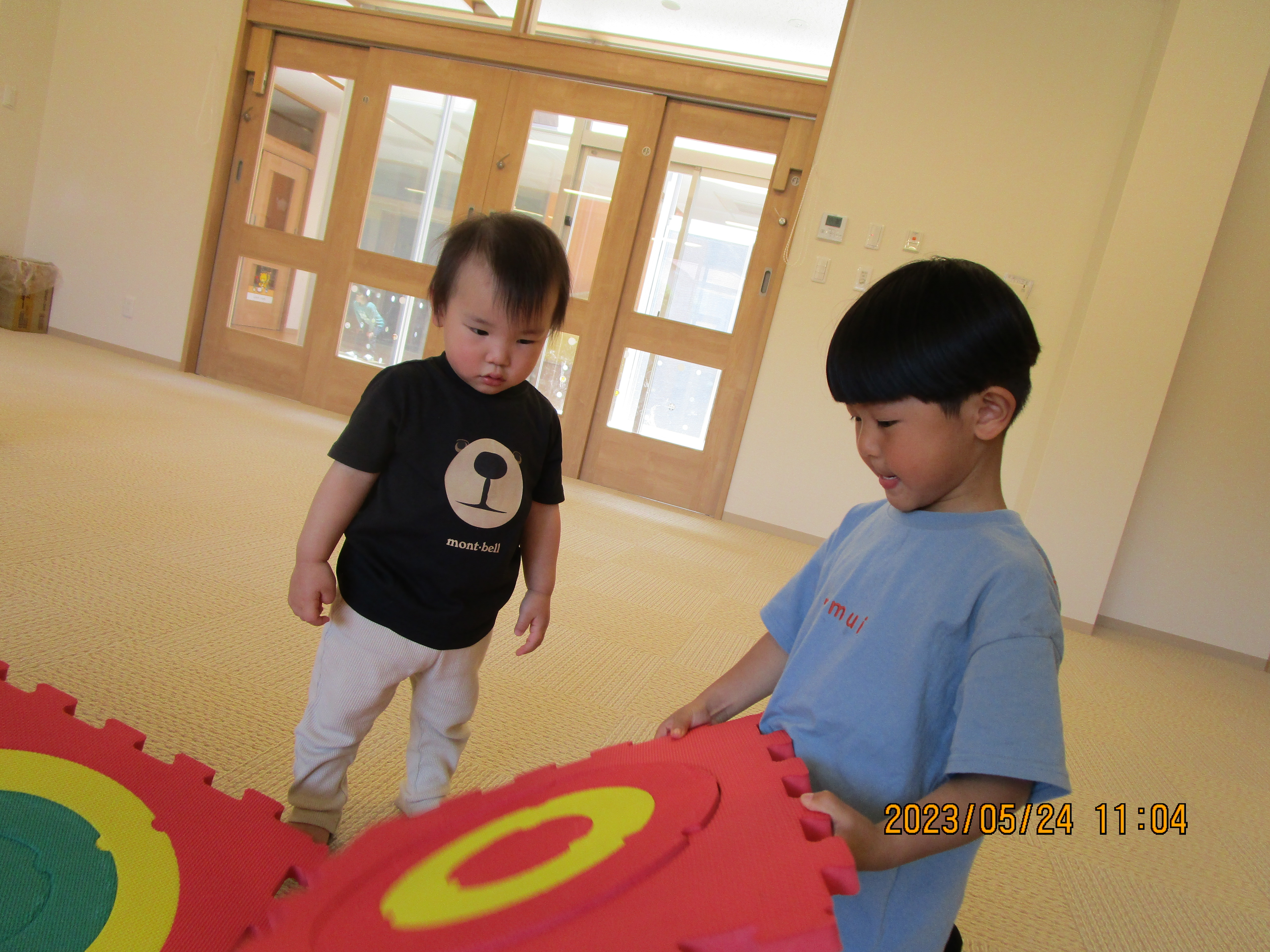 年長児が0歳児から4歳児のお部屋に遊びに行きました☆