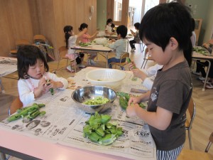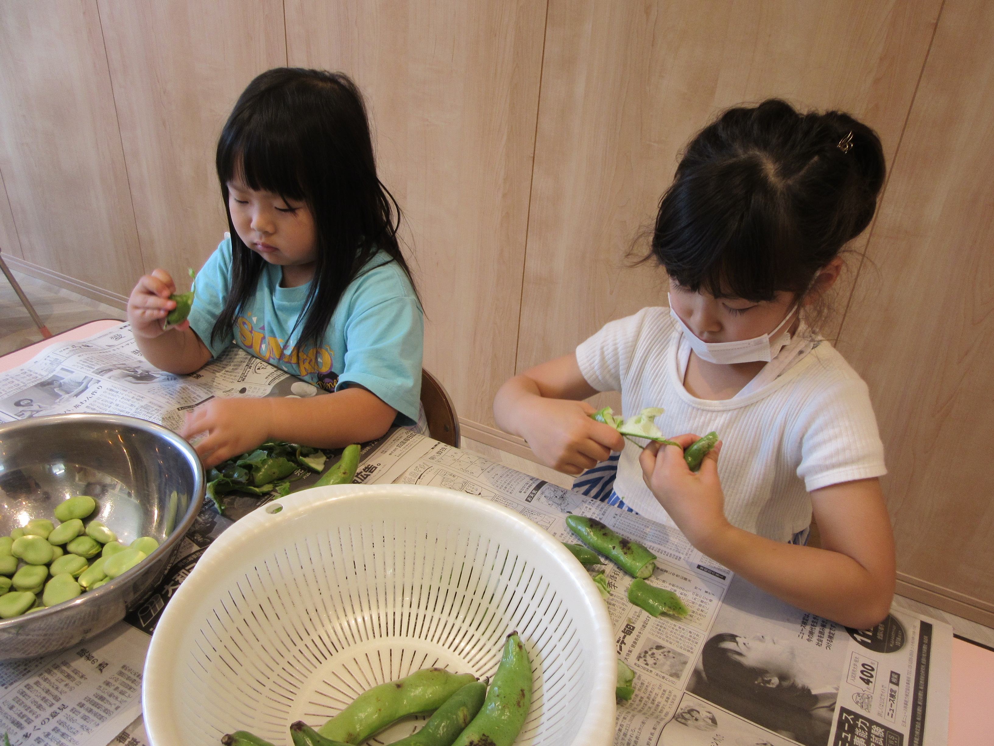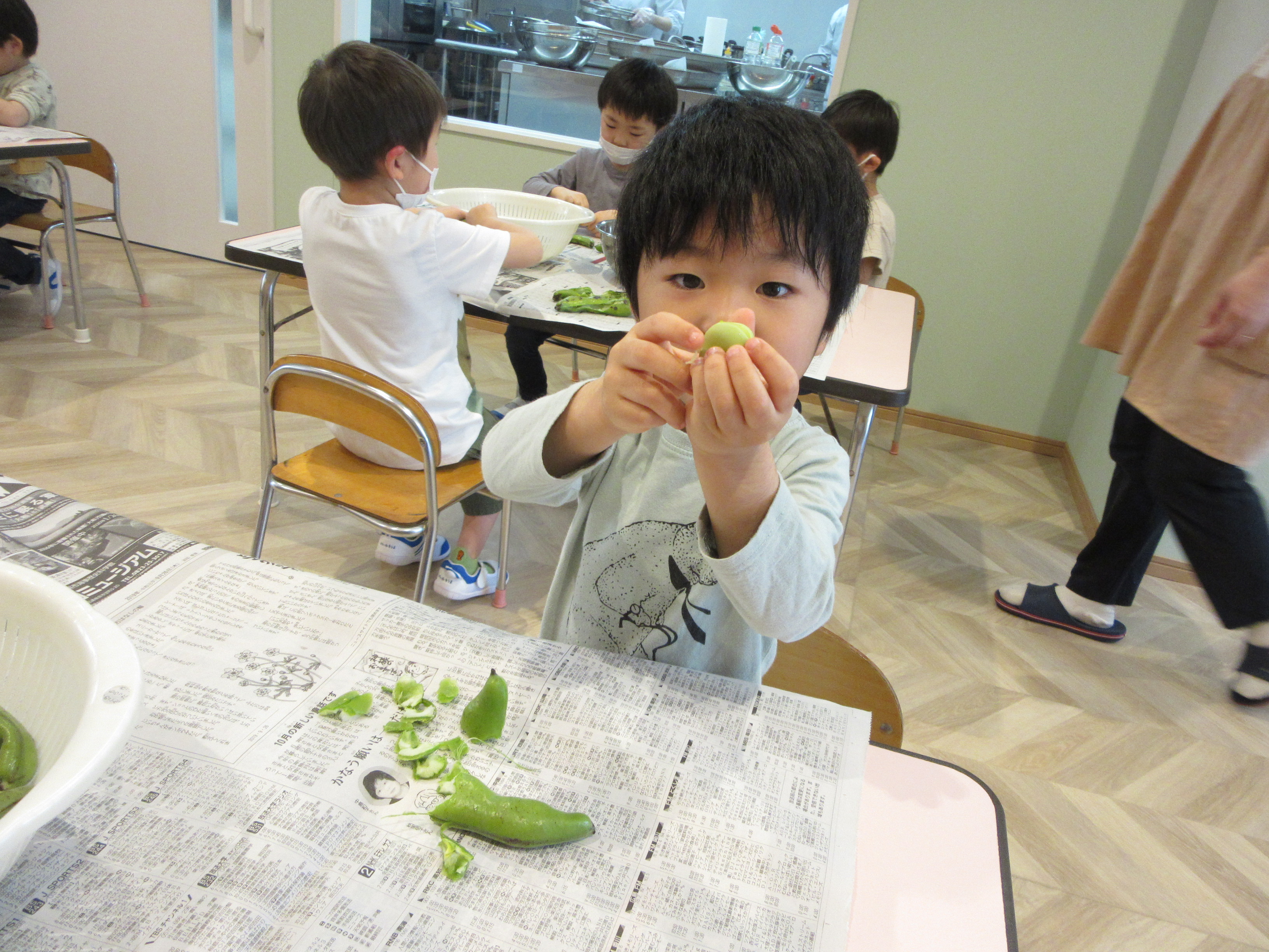 空豆の皮むき(5月16日実施)2023年6月28日年中児の子どもたちが、空豆の皮むきに挑戦しました!! 皮が固く苦戦している様子も見られましたが、だんだんコツをつかんで、上手に皮むきできるようになりました☆ 空豆が苦手~と言っていた子も、自分でむいた豆なら食べてみる!!と、進んで食べることができていました!! またお手伝いしてもらいたいと思います☆ 施設情報愛媛県新居浜市にある児童福祉施設中萩保育園あいさつのできる子 つよい体のやさしい子 話の聞ける子 自分で考えできる子児童福祉施設 中萩保育園〒792-0045愛媛県新居浜市中萩町8番1号TEL:0897-41-7233 FAX:0897-41-7209中萩保育園WEBサイト最近の記事2025年9月25日敬老の日 はがき作り児童福祉施設 中萩保育園2025年9月25日誕生会(9月5日実施)児童福祉施設 中萩保育園2025年8月25日防災集会(8月21日実施)児童福祉施設 中萩保育園2025年8月25日プール大会(8月6日実施)児童福祉施設 中萩保育園2025年8月25日誕生会(8月1日実施)児童福祉施設 中萩保育園2025年7月31日アイス屋さんごっこ(7月22日実施)児童福祉施設 中萩保育園中萩保育園の記事一覧