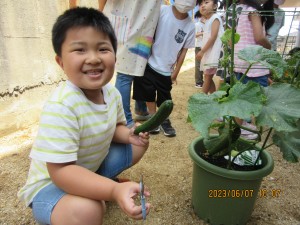夏野菜の収穫(6月5日実施)2023年6月28日子どもたちと植えた夏野菜が成長し、きゅうりの収穫をしました!! ウッドデッキから、野菜ができる様子を観察していた子どもたち☆とってもうれしそうな様子でした☆ 施設情報愛媛県新居浜市にある児童福祉施設中萩保育園あいさつのできる子 つよい体のやさしい子 話の聞ける子 自分で考えできる子児童福祉施設 中萩保育園〒792-0045愛媛県新居浜市中萩町8番1号TEL:0897-41-7233 FAX:0897-41-7209中萩保育園WEBサイト最近の記事2025年9月25日敬老の日 はがき作り児童福祉施設 中萩保育園2025年9月25日誕生会(9月5日実施)児童福祉施設 中萩保育園2025年8月25日防災集会(8月21日実施)児童福祉施設 中萩保育園2025年8月25日プール大会(8月6日実施)児童福祉施設 中萩保育園2025年8月25日誕生会(8月1日実施)児童福祉施設 中萩保育園2025年7月31日アイス屋さんごっこ(7月22日実施)児童福祉施設 中萩保育園中萩保育園の記事一覧