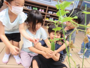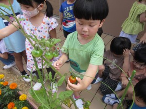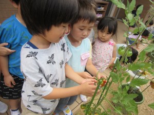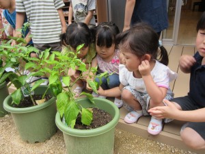 夏野菜の収穫(7月7日実施)2023年7月13日年中児が夏野菜の収穫をしました!! ピーマン、なす、トマト、きゅうり・・・お部屋の見えるところにあるプランターをいつも観察、収穫できる日を、とても楽しみにしてくれていました。 とれたての野菜は、色がきれいで、つやつや☆ 感触もしっかり確かめていました☆ 施設情報愛媛県新居浜市にある児童福祉施設中萩保育園あいさつのできる子 つよい体のやさしい子 話の聞ける子 自分で考えできる子児童福祉施設 中萩保育園〒792-0045愛媛県新居浜市中萩町8番1号TEL:0897-41-7233 FAX:0897-41-7209中萩保育園WEBサイト最近の記事2025年9月25日敬老の日 はがき作り児童福祉施設 中萩保育園2025年9月25日誕生会(9月5日実施)児童福祉施設 中萩保育園2025年8月25日防災集会(8月21日実施)児童福祉施設 中萩保育園2025年8月25日プール大会(8月6日実施)児童福祉施設 中萩保育園2025年8月25日誕生会(8月1日実施)児童福祉施設 中萩保育園2025年7月31日アイス屋さんごっこ(7月22日実施)児童福祉施設 中萩保育園中萩保育園の記事一覧