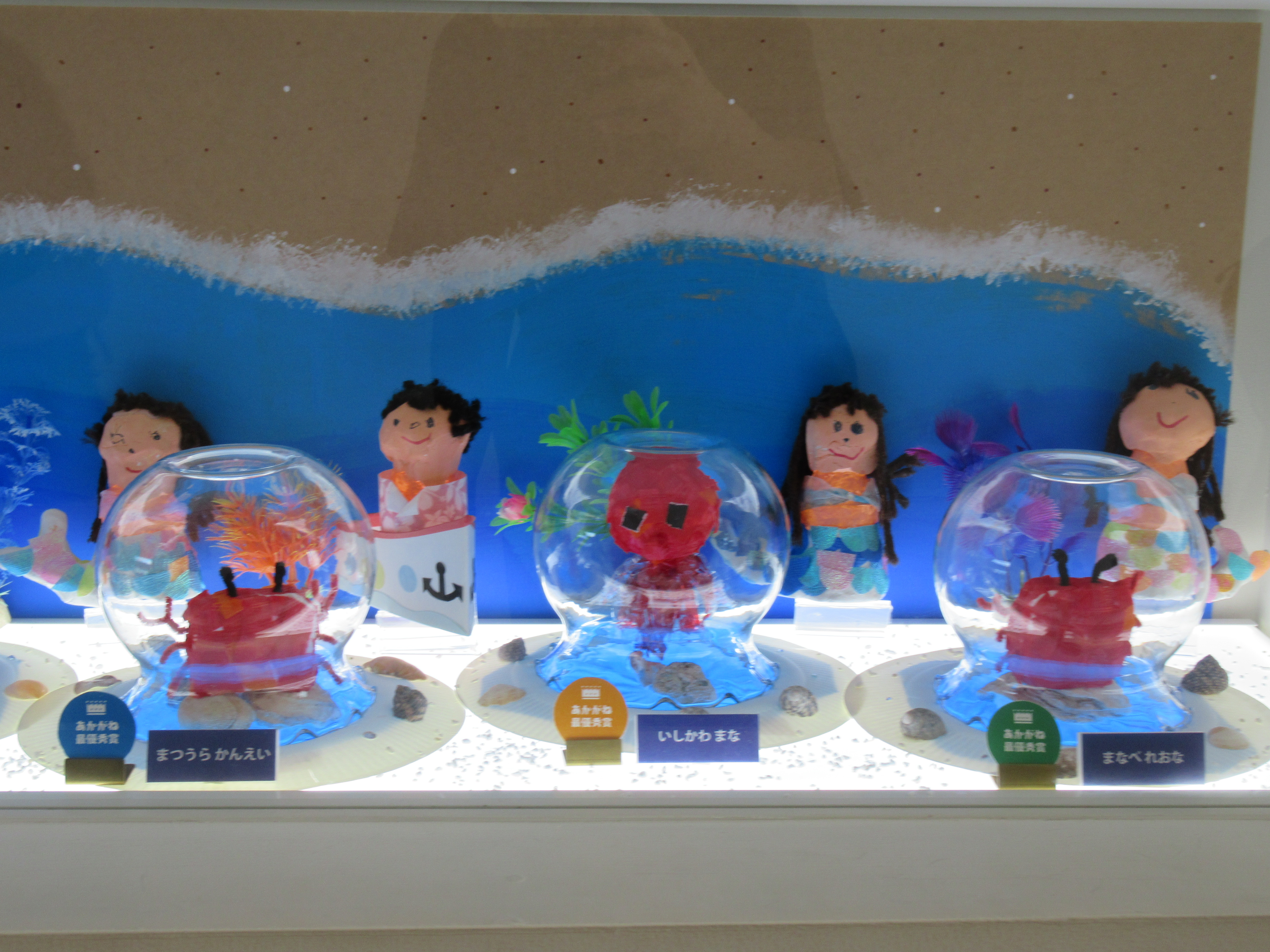 ショーケースにきれいに作品や紹介パネルを展示していただきました!