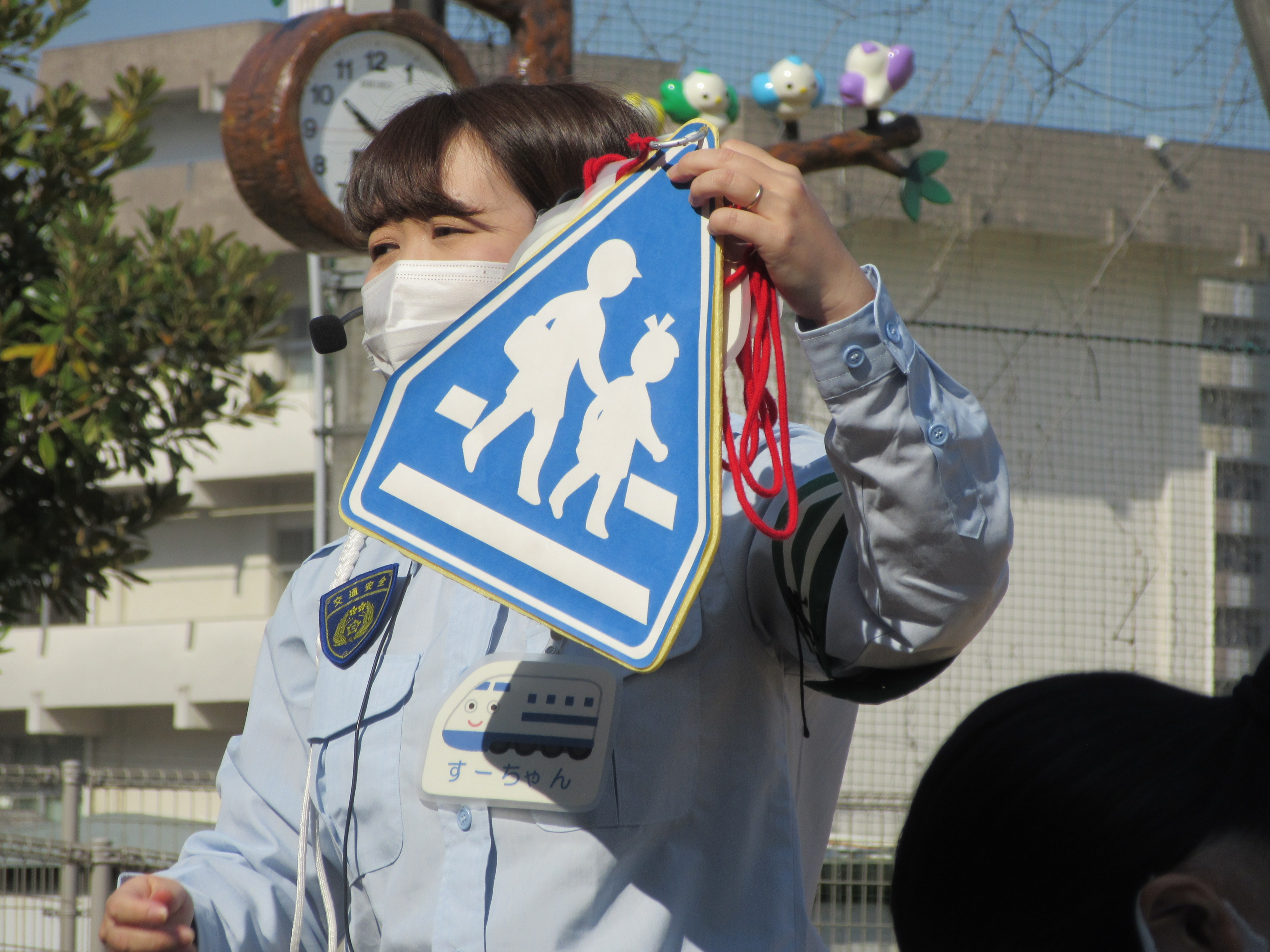 道路を渡るときや駐車場などでのお約束を真剣に聞いていました。