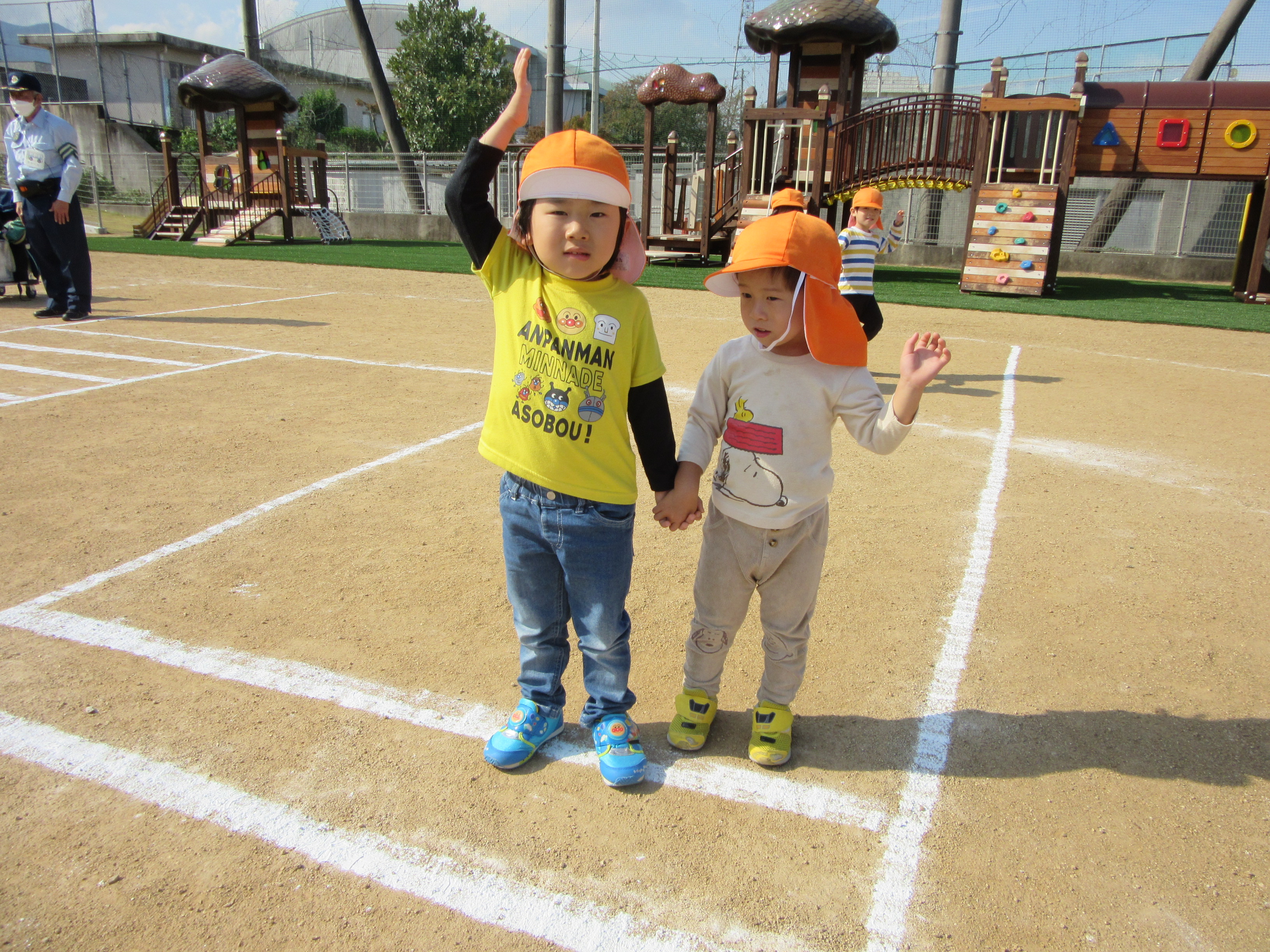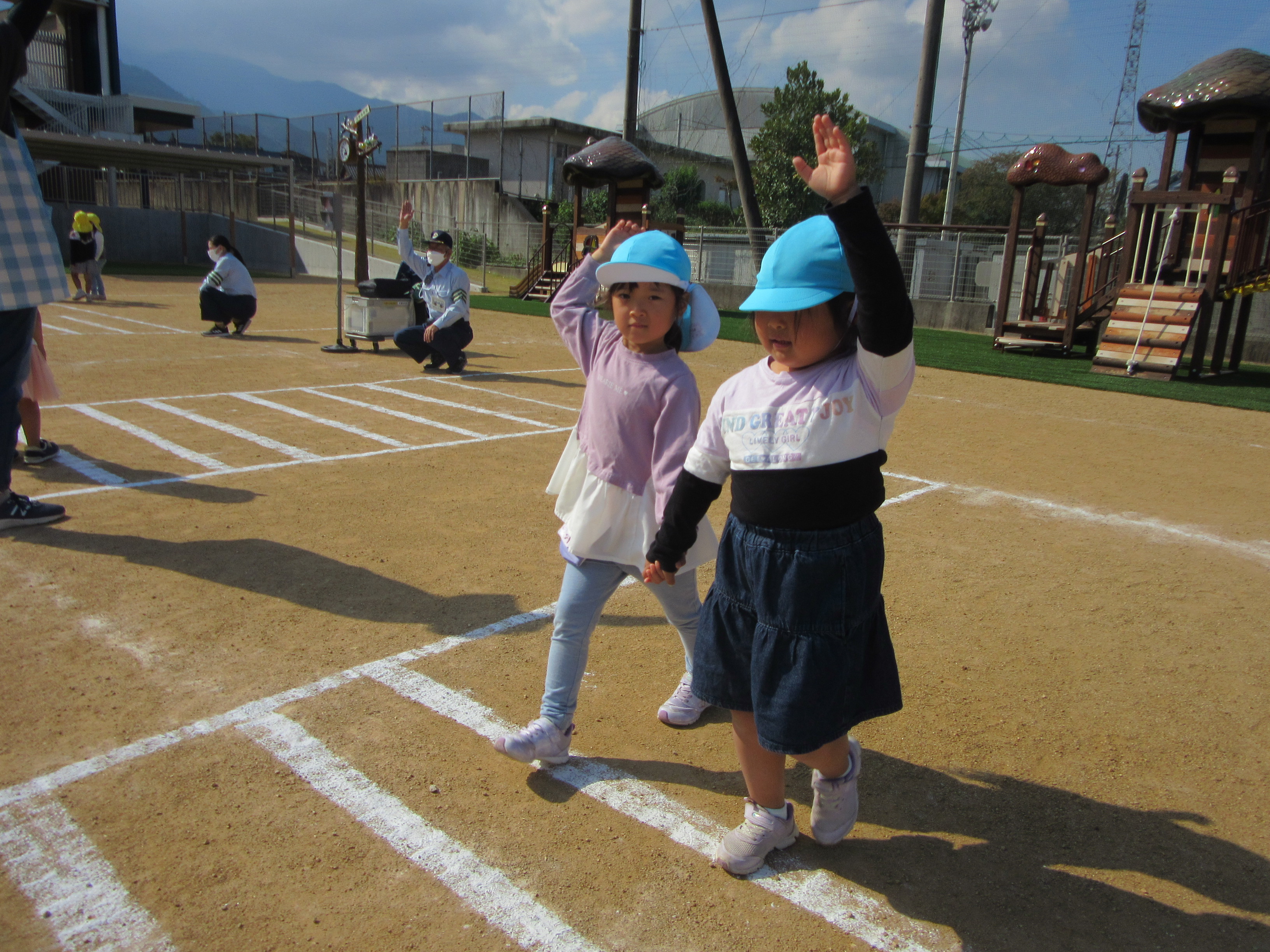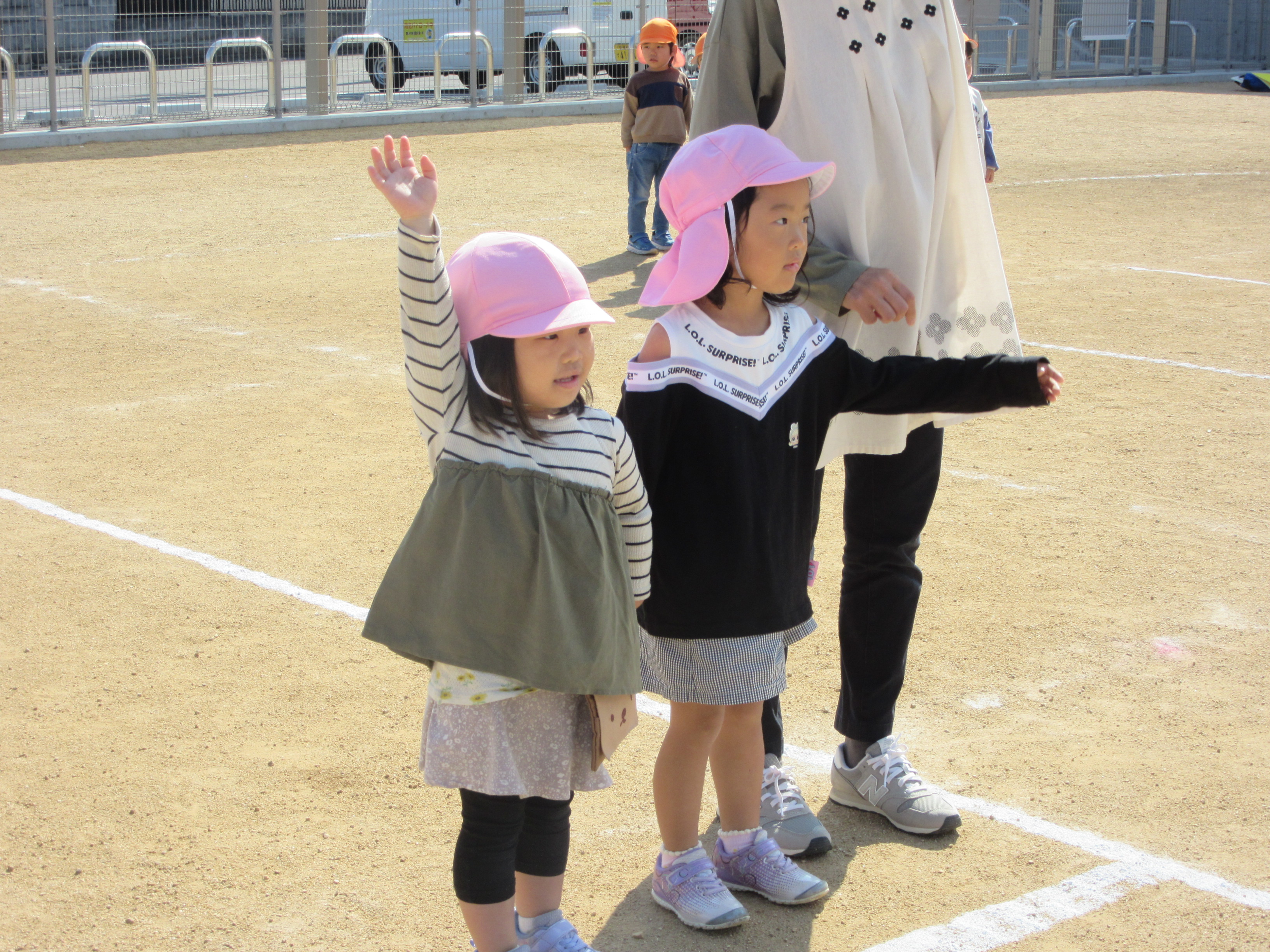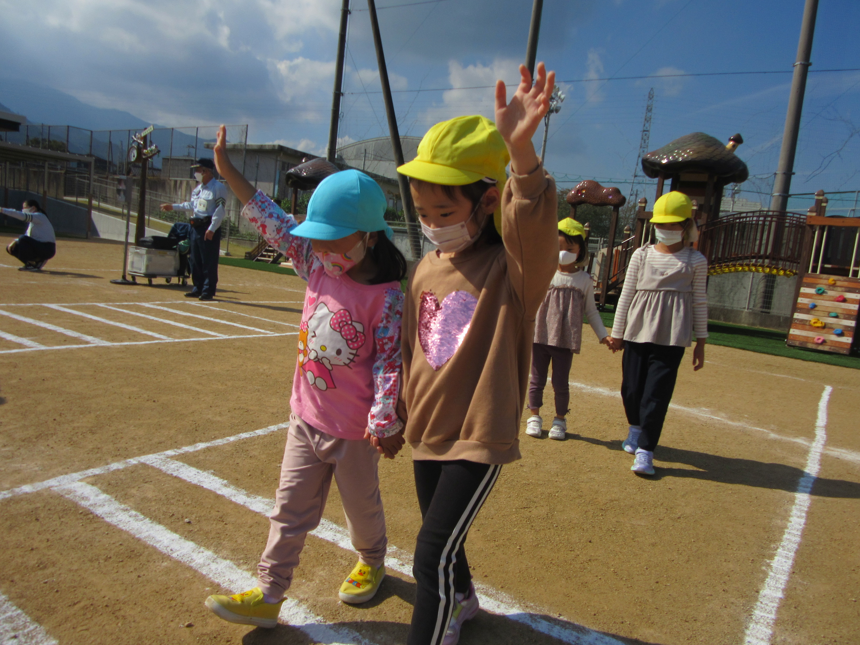 左右の確認と、パっと手を挙げて歩く練習をしました!