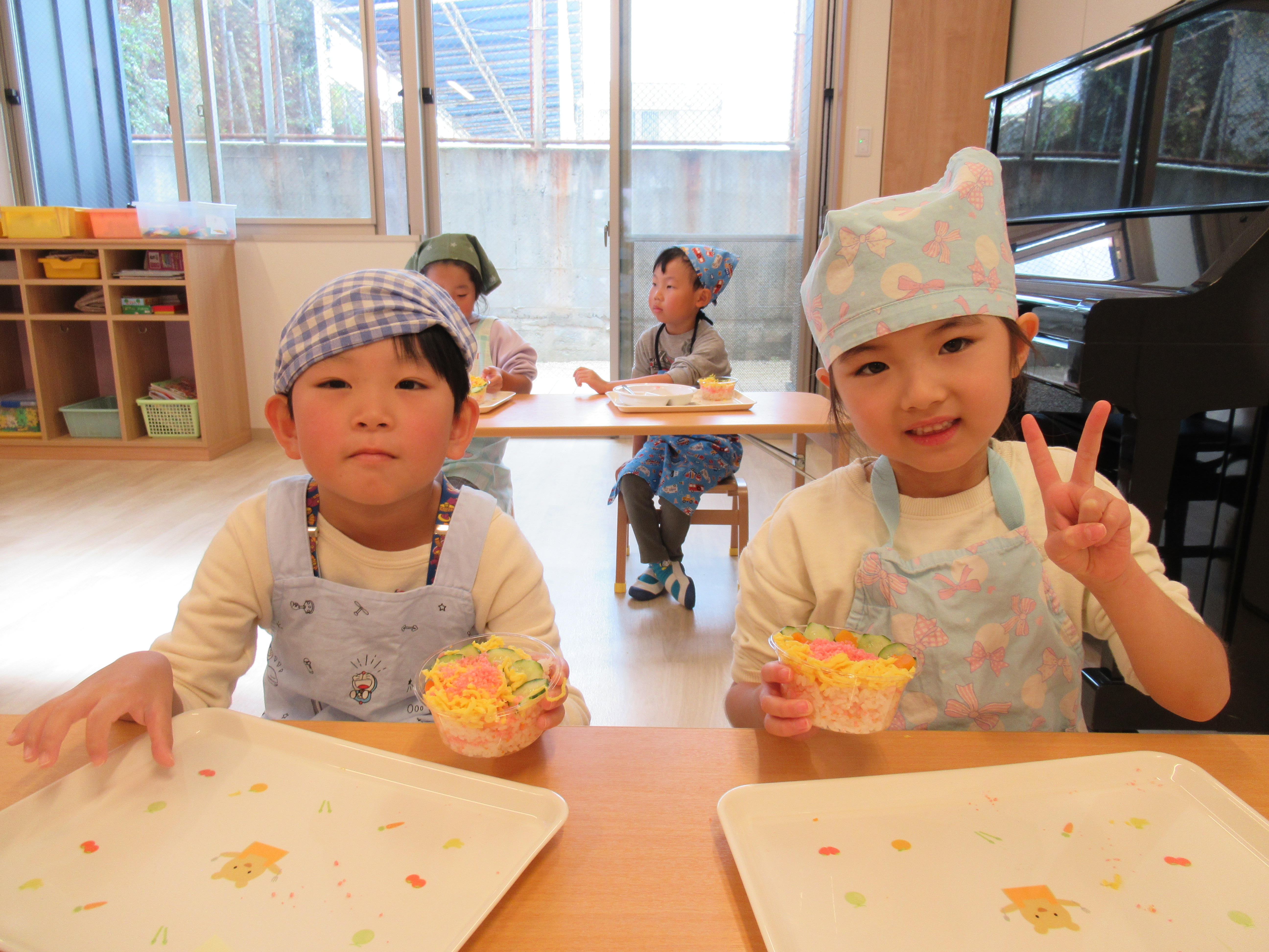 幼児クラスの子どもたちが、カップ寿司作りに挑戦しました!!
