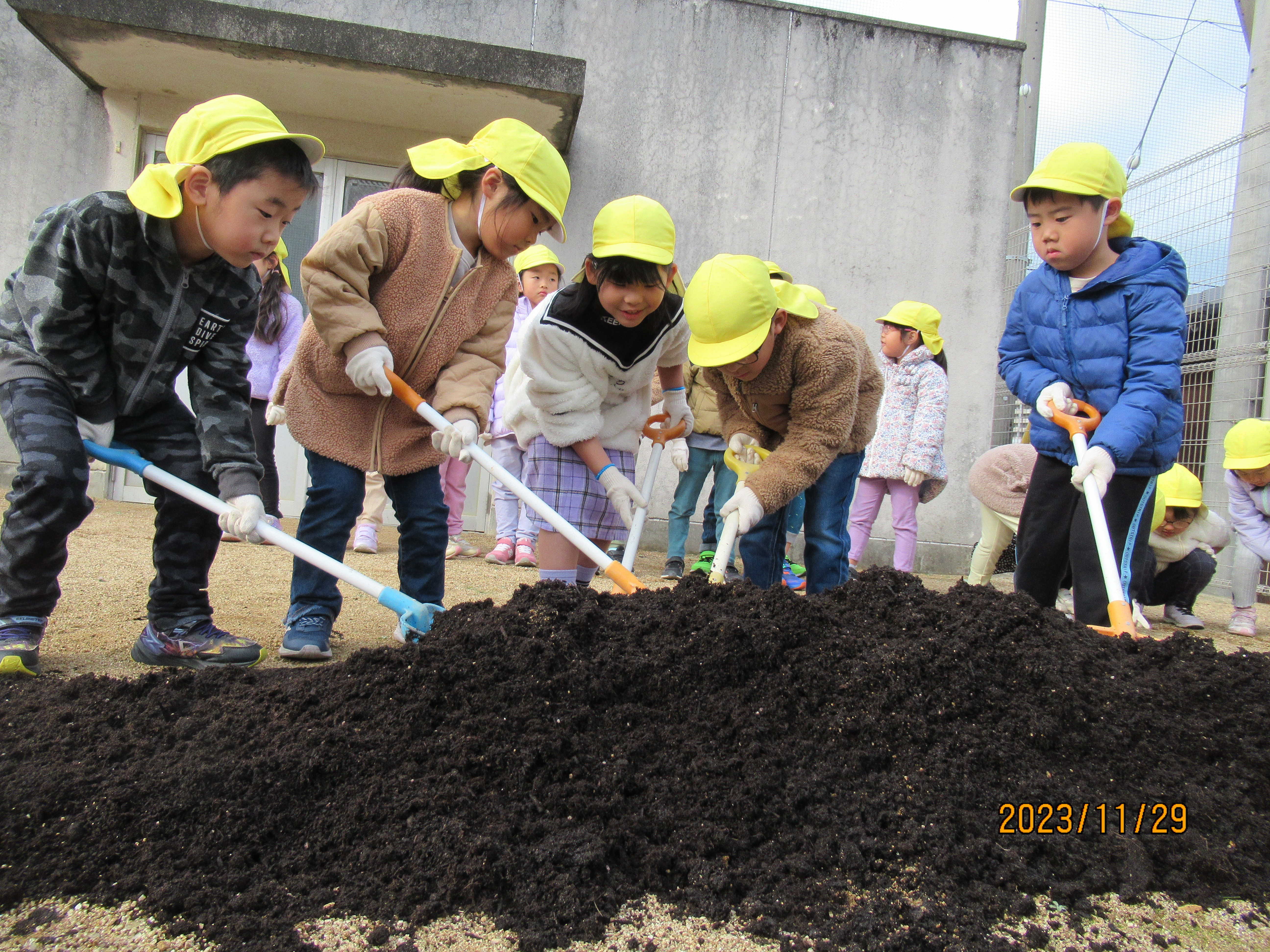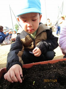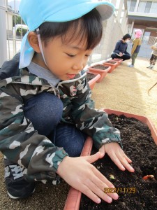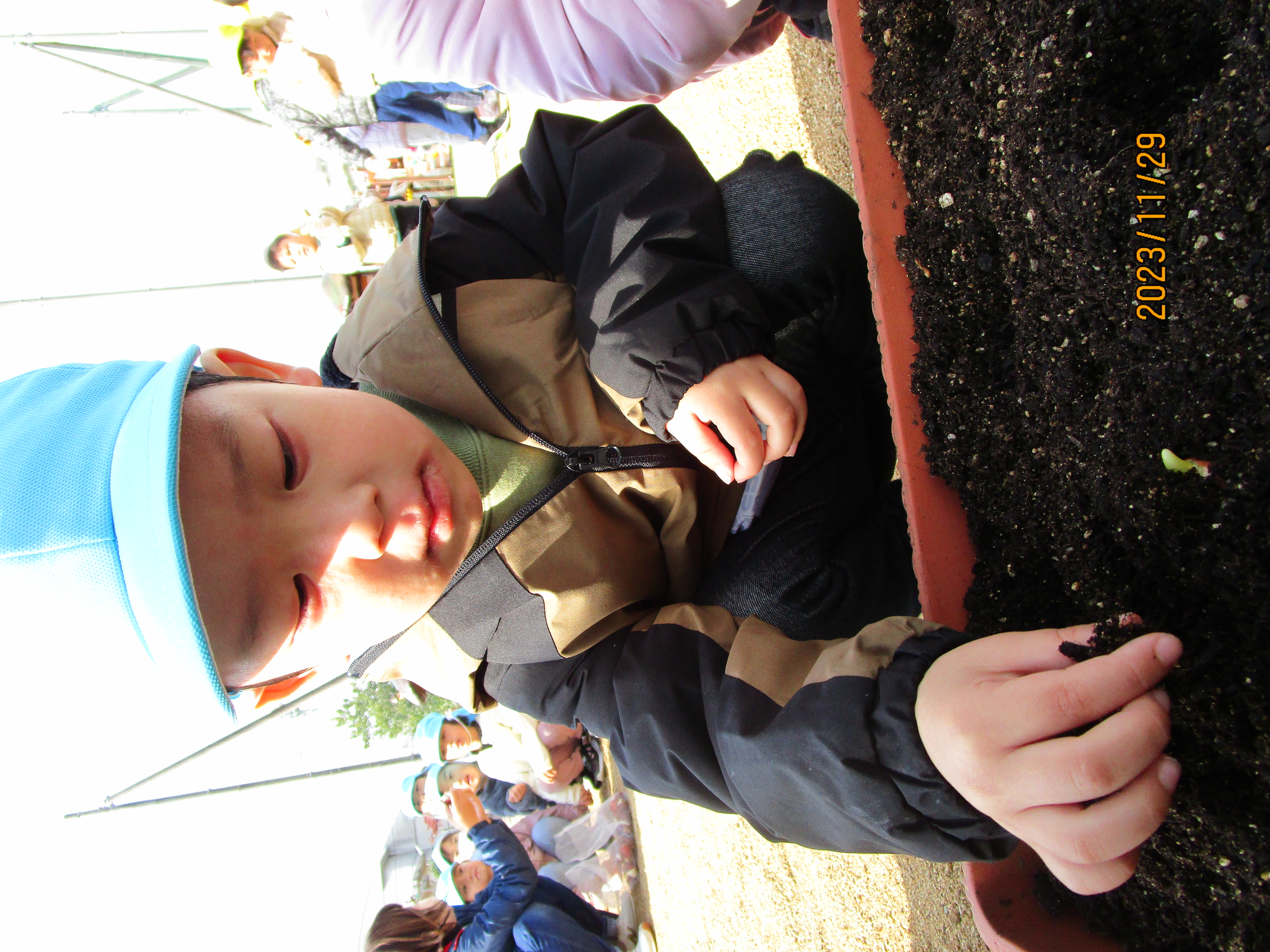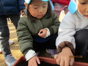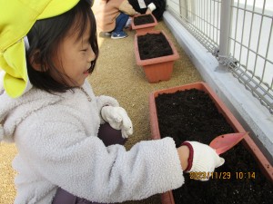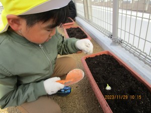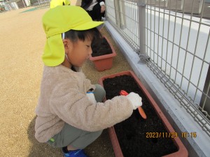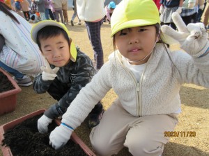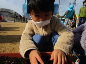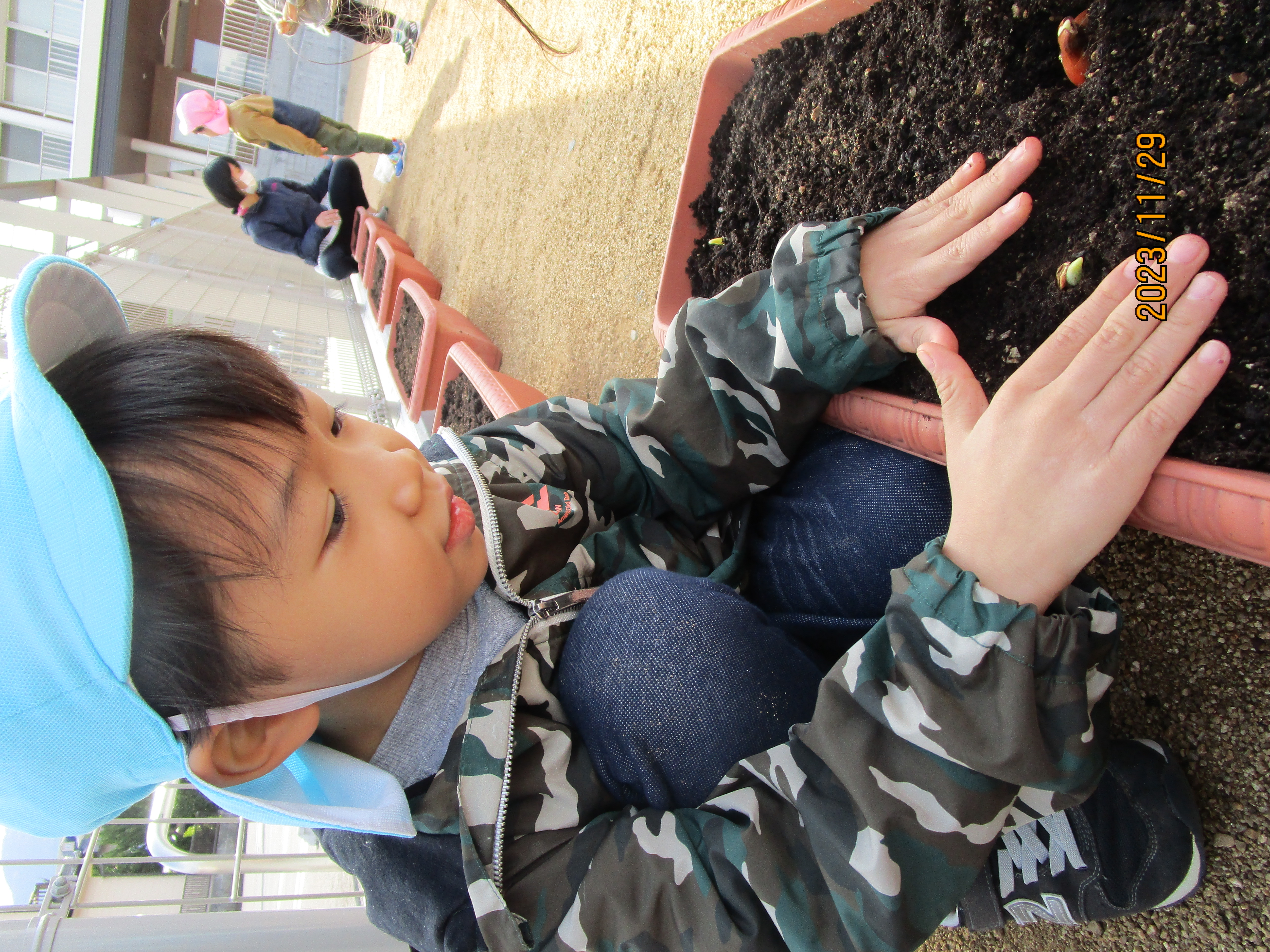 「穴を掘って球根を入れて・・・」 「優しく土をかぶせるよ♬」