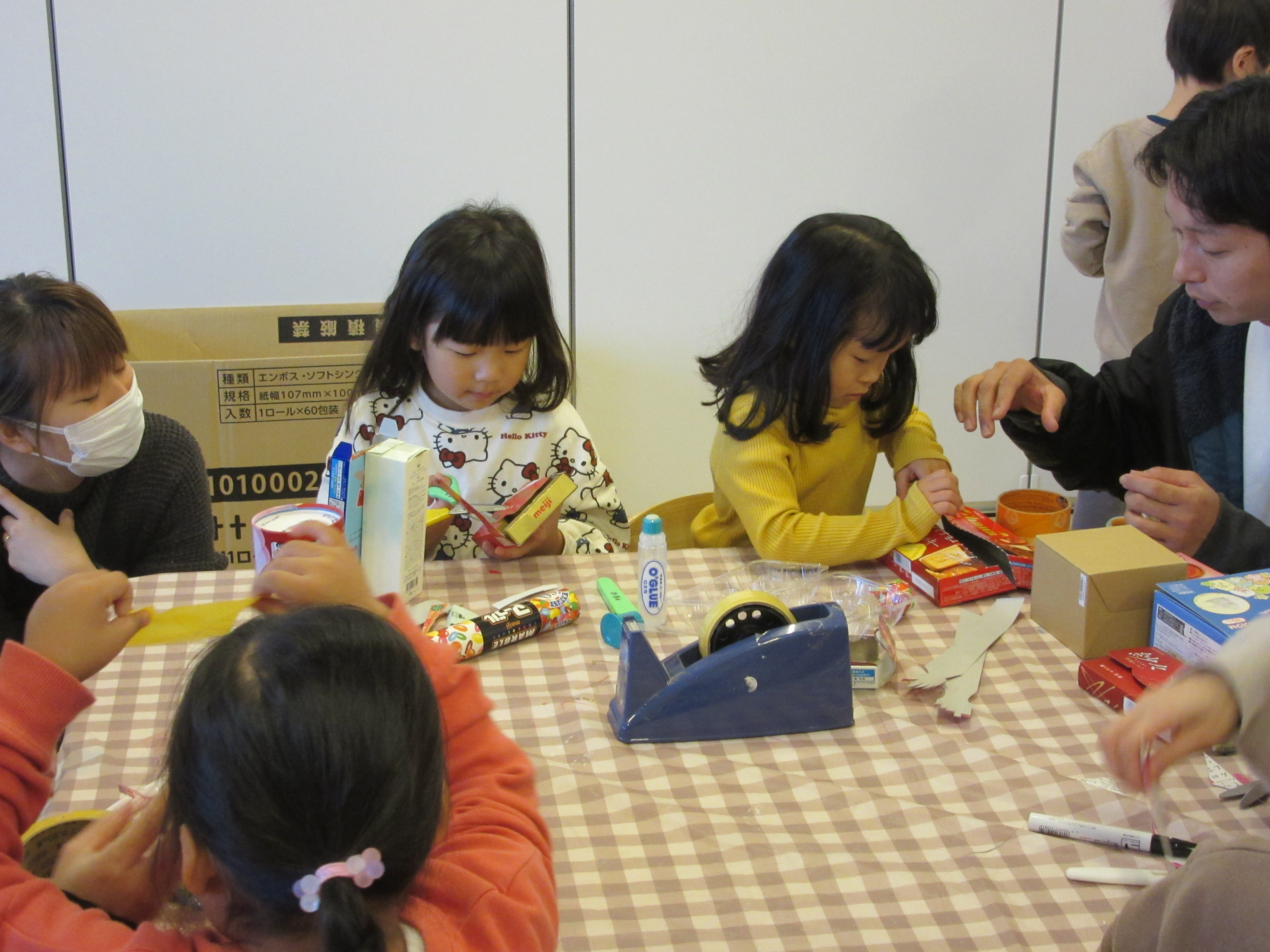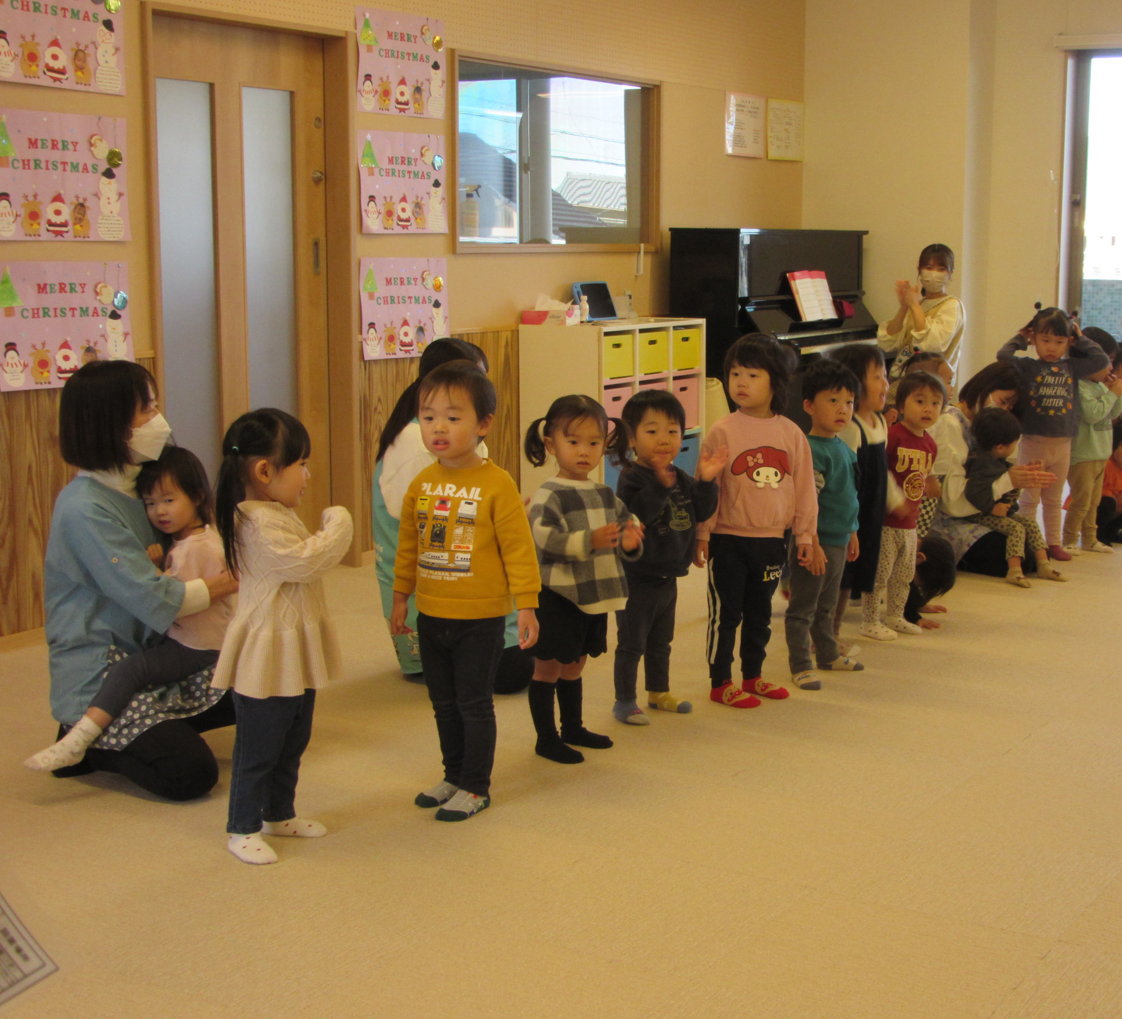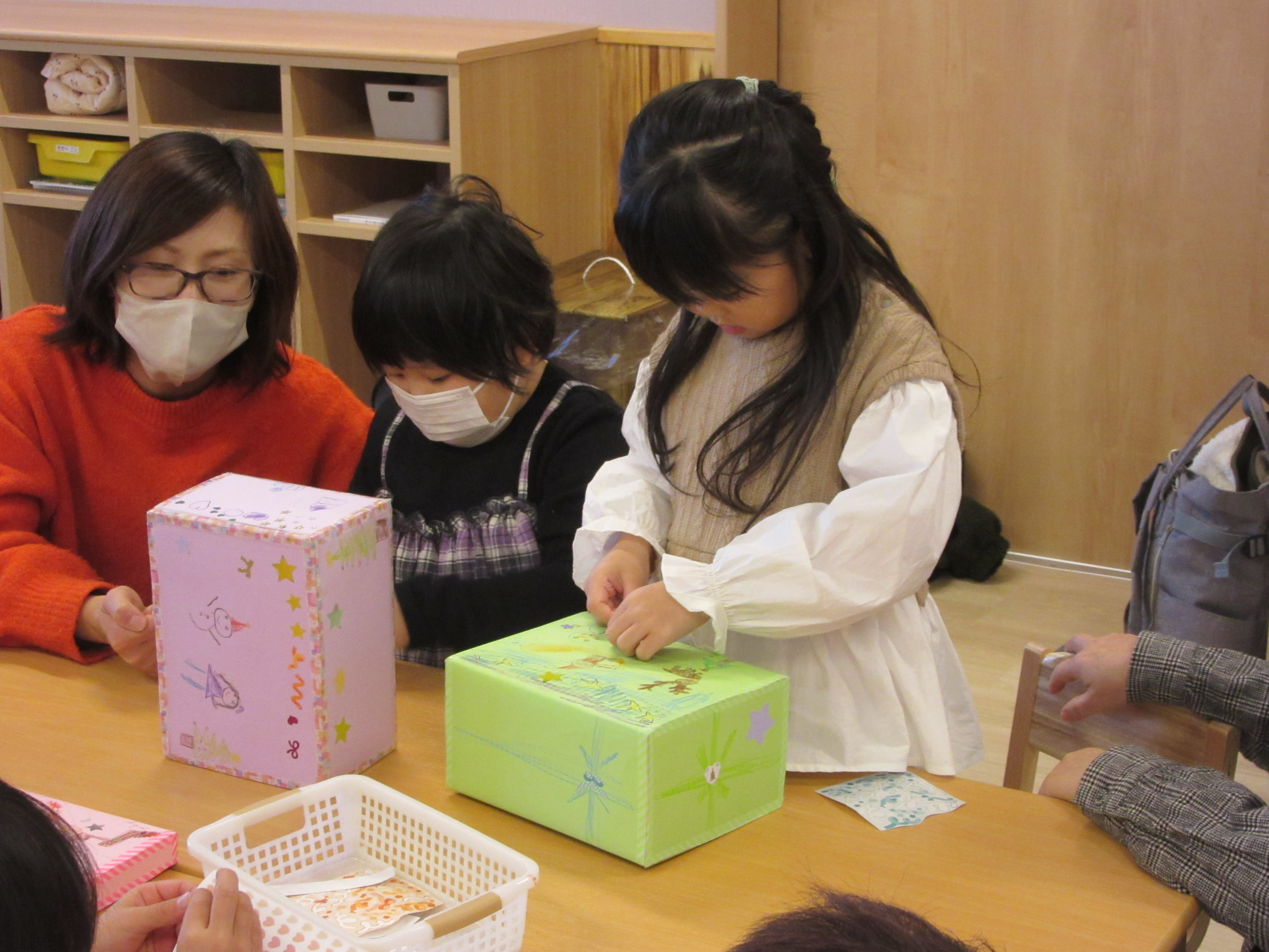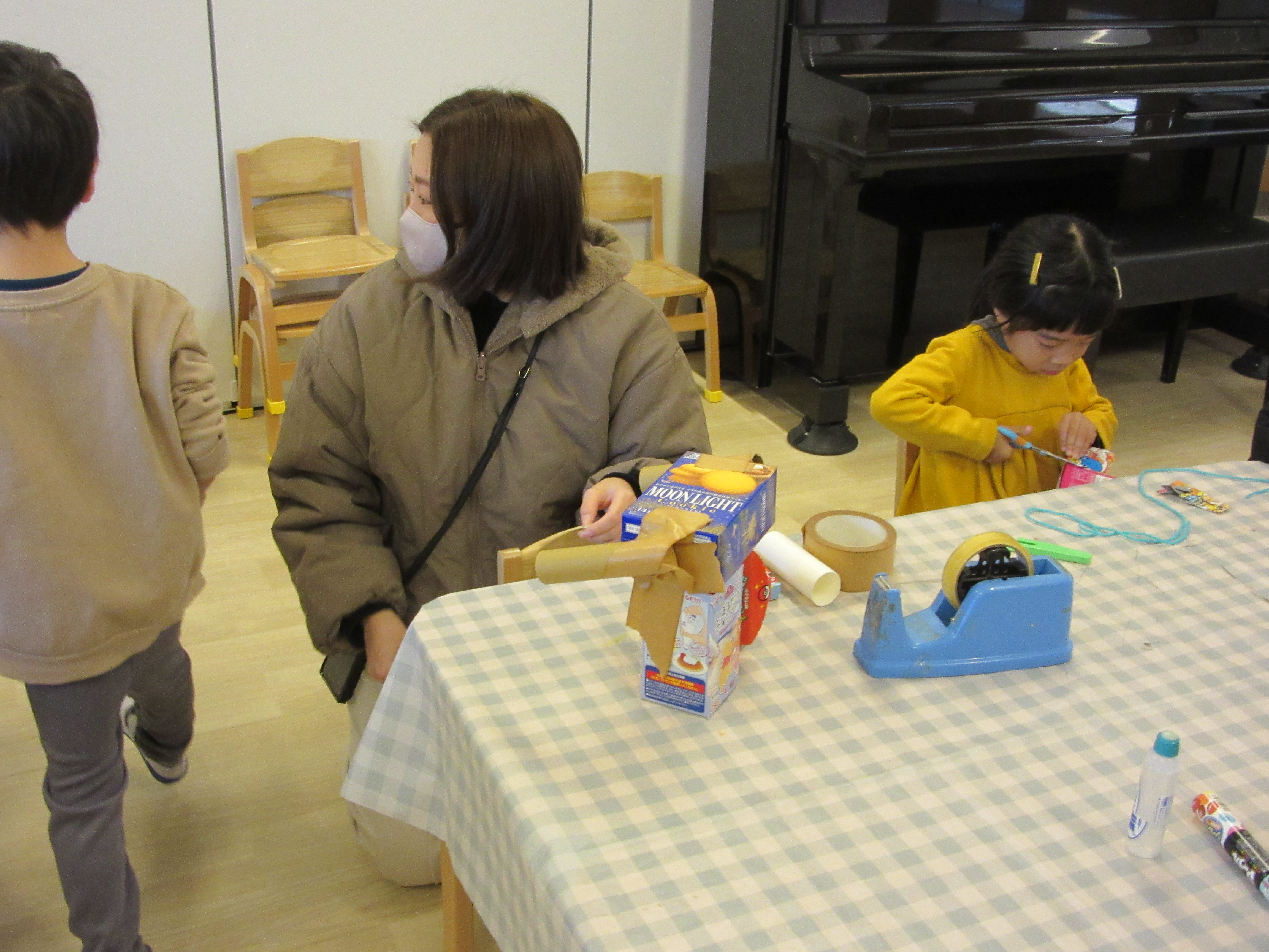 サンタさんの顔を作ってのぼり人形で遊んだ後は
