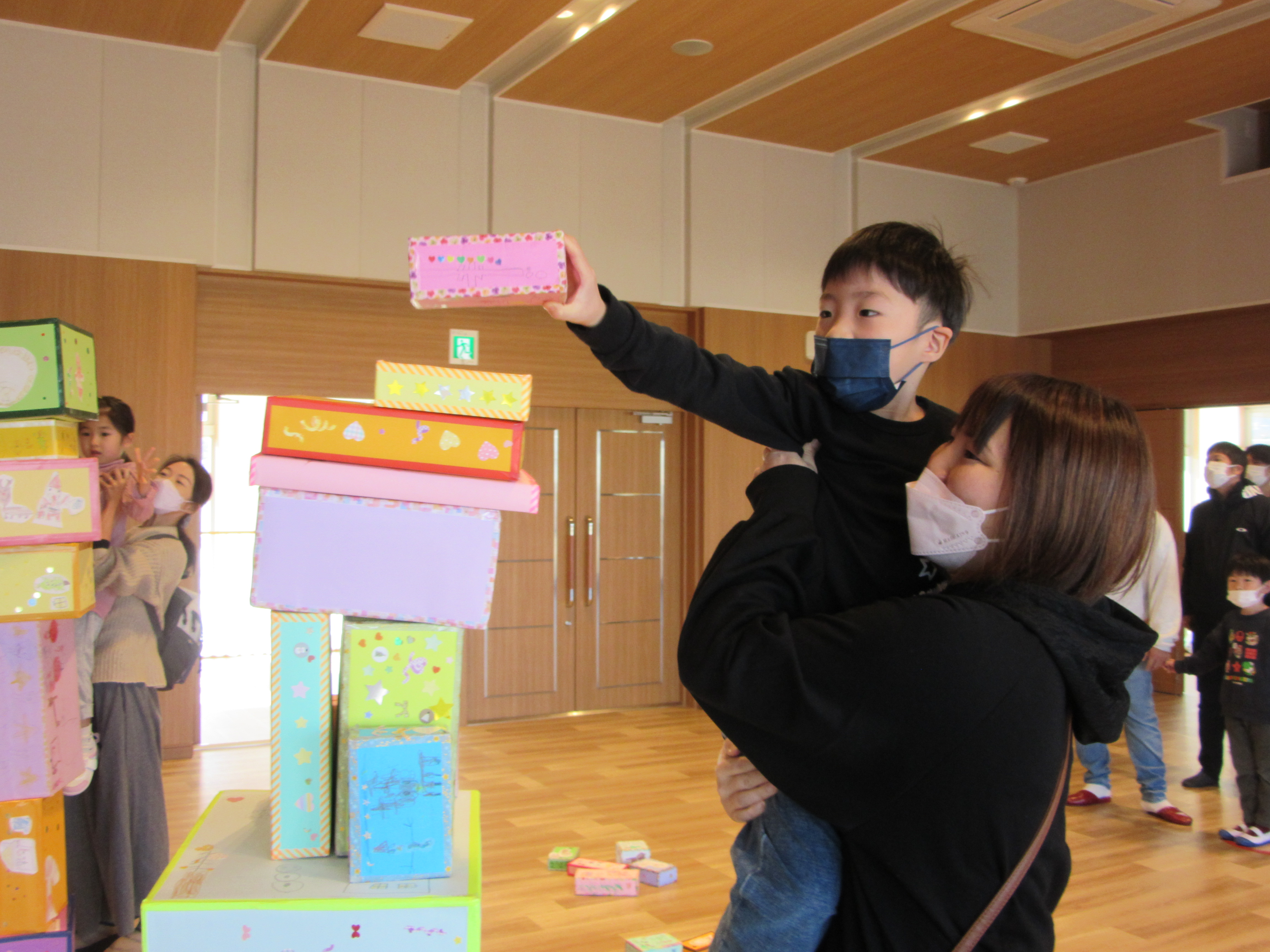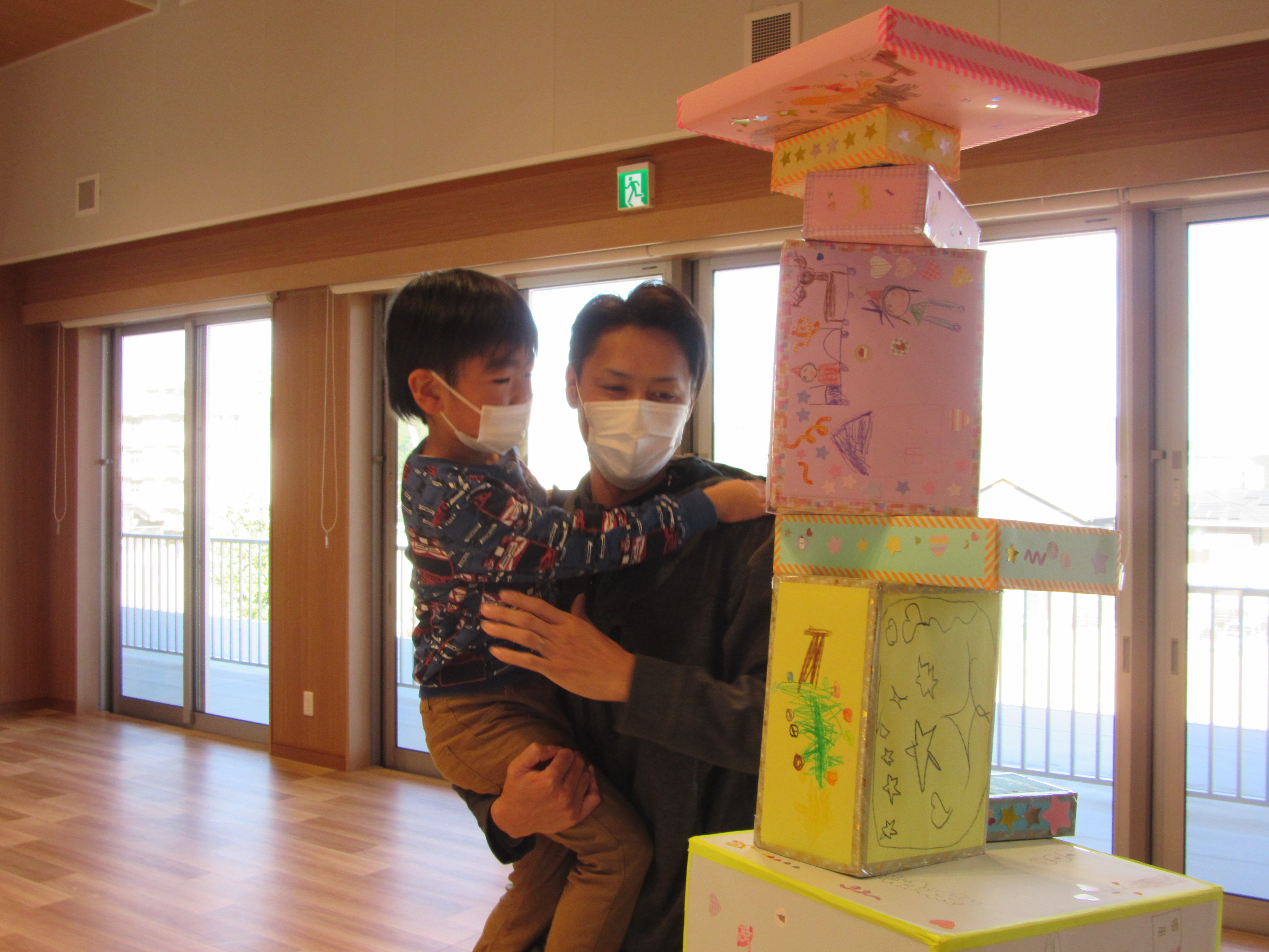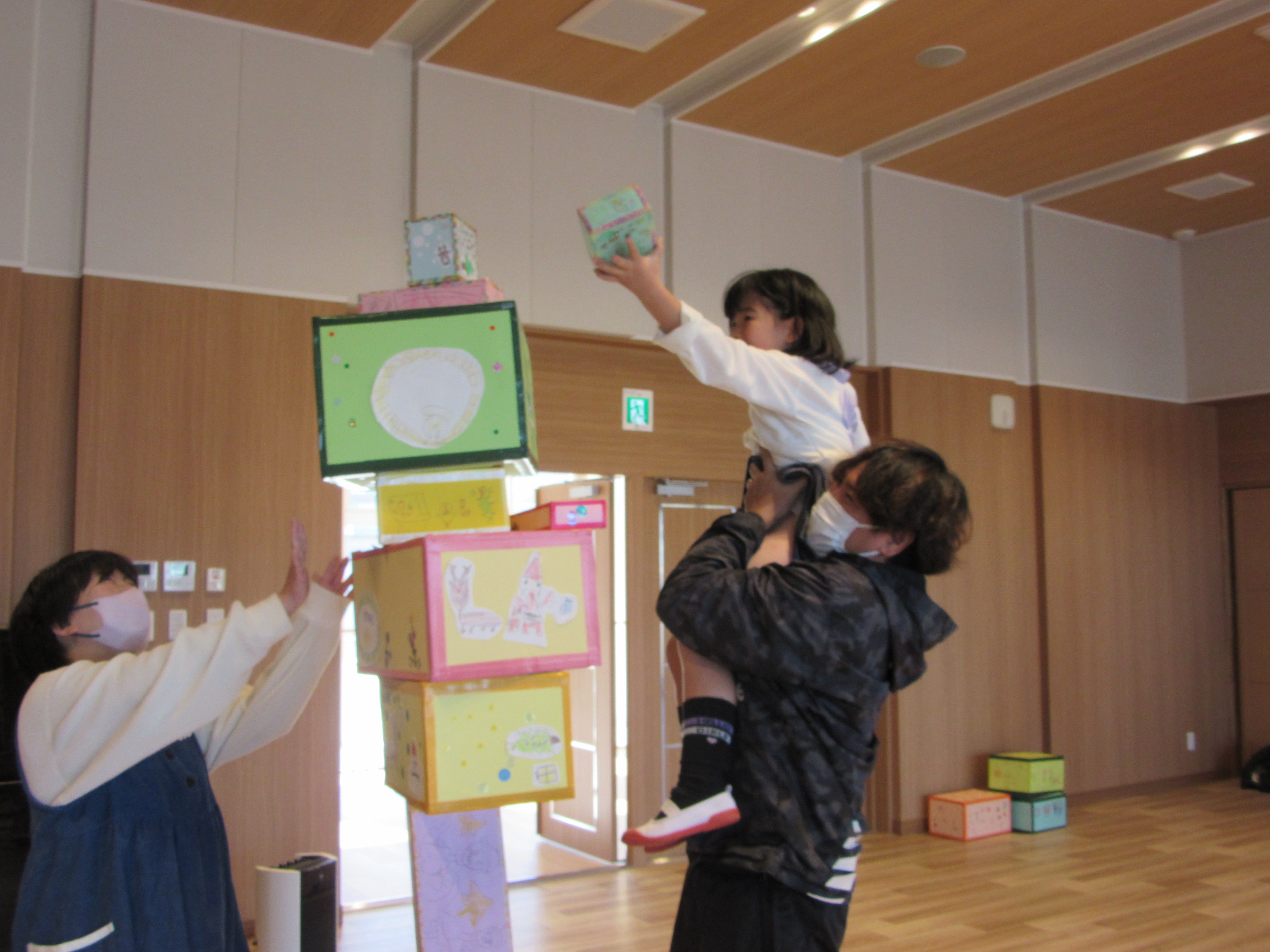 きりん組と段ボール積みゲームをしました(*^_^*)