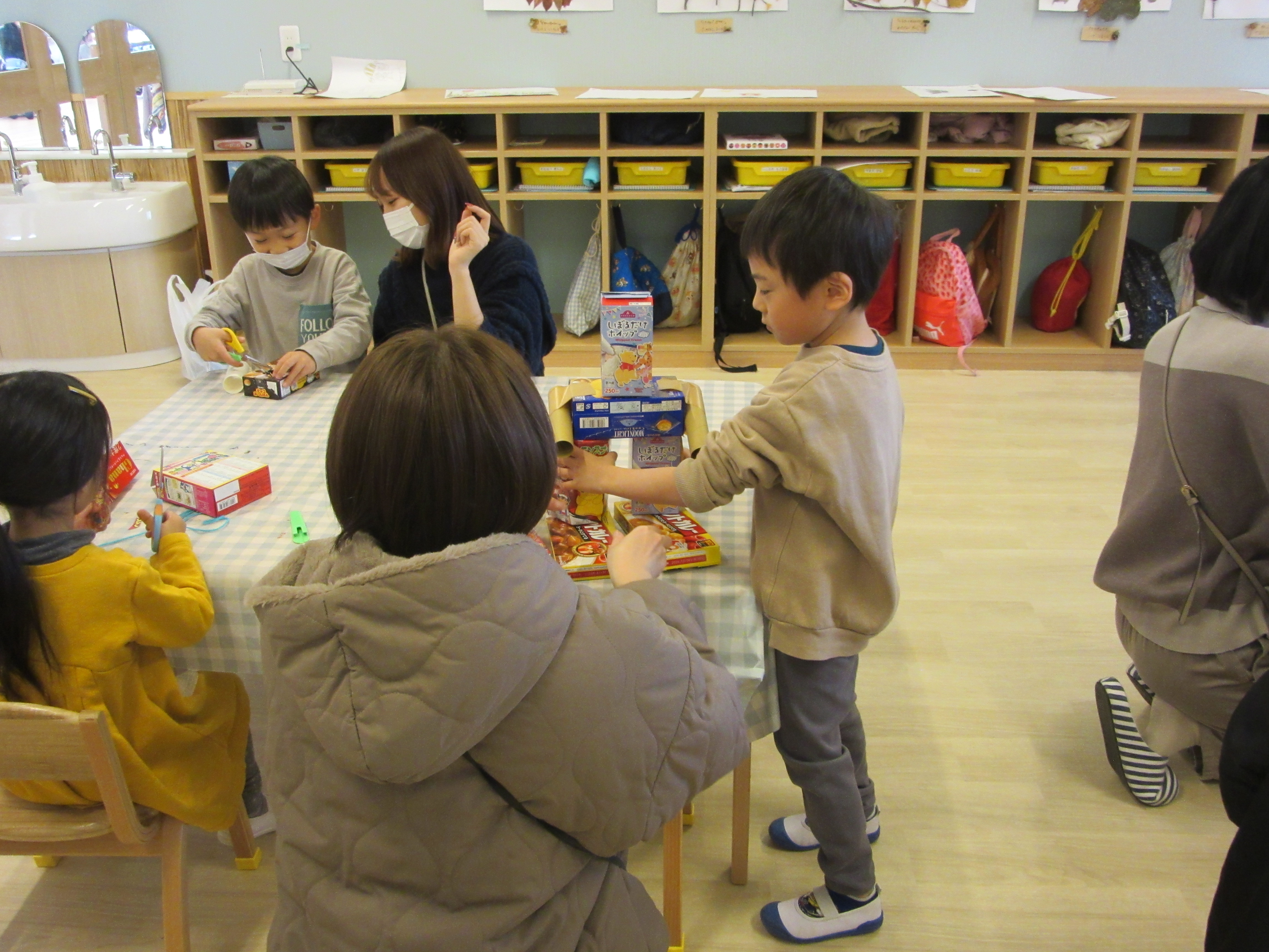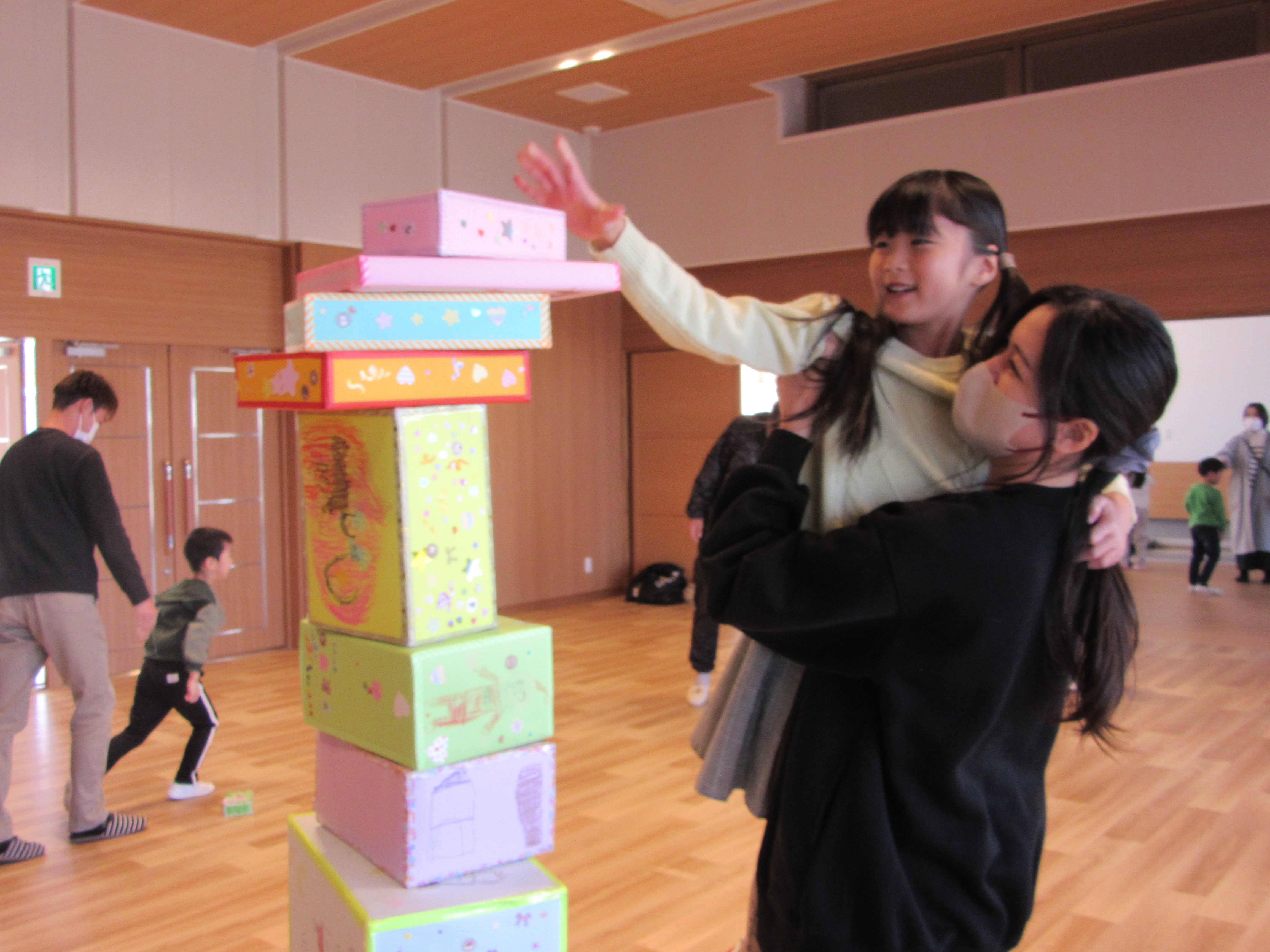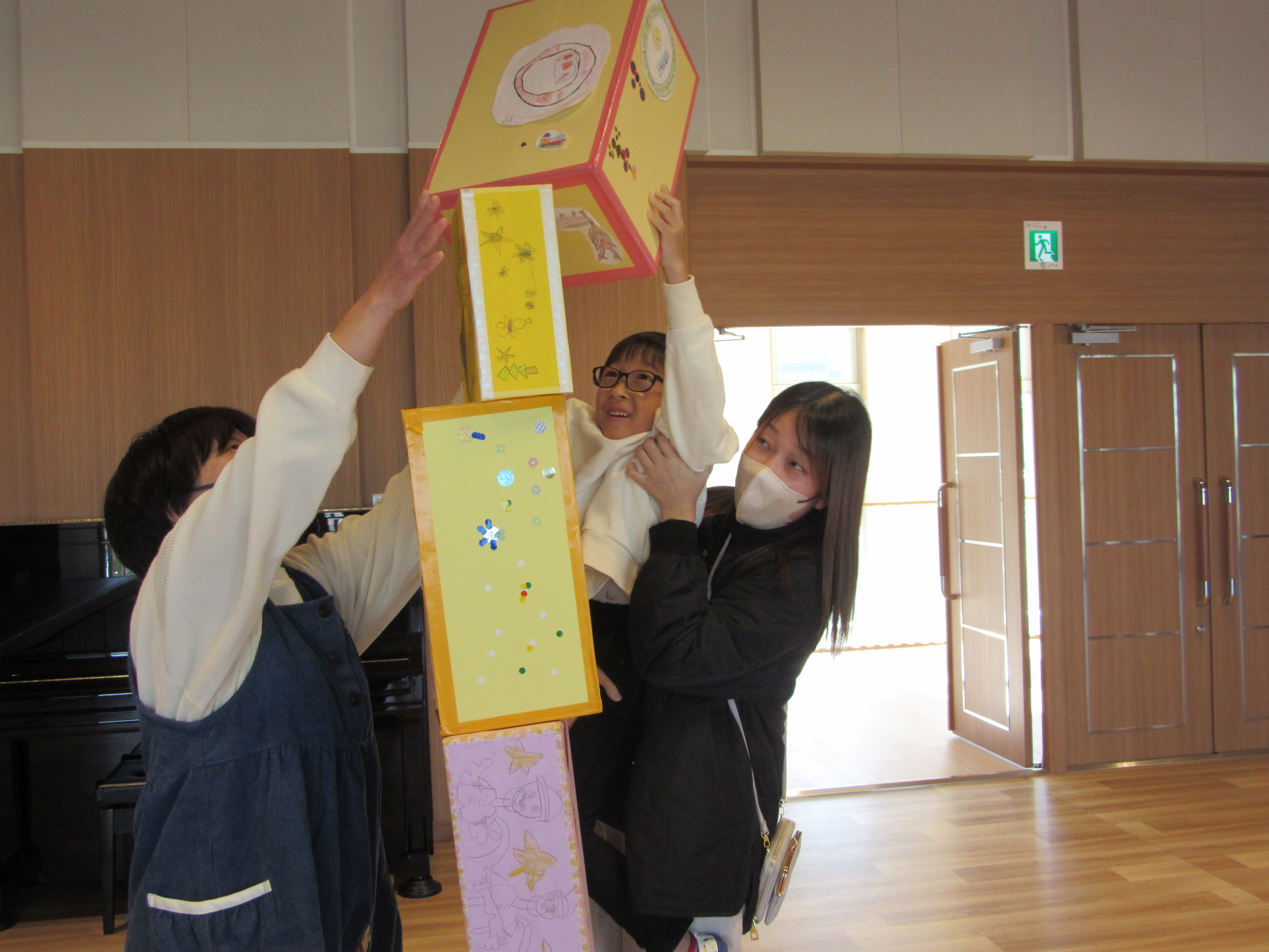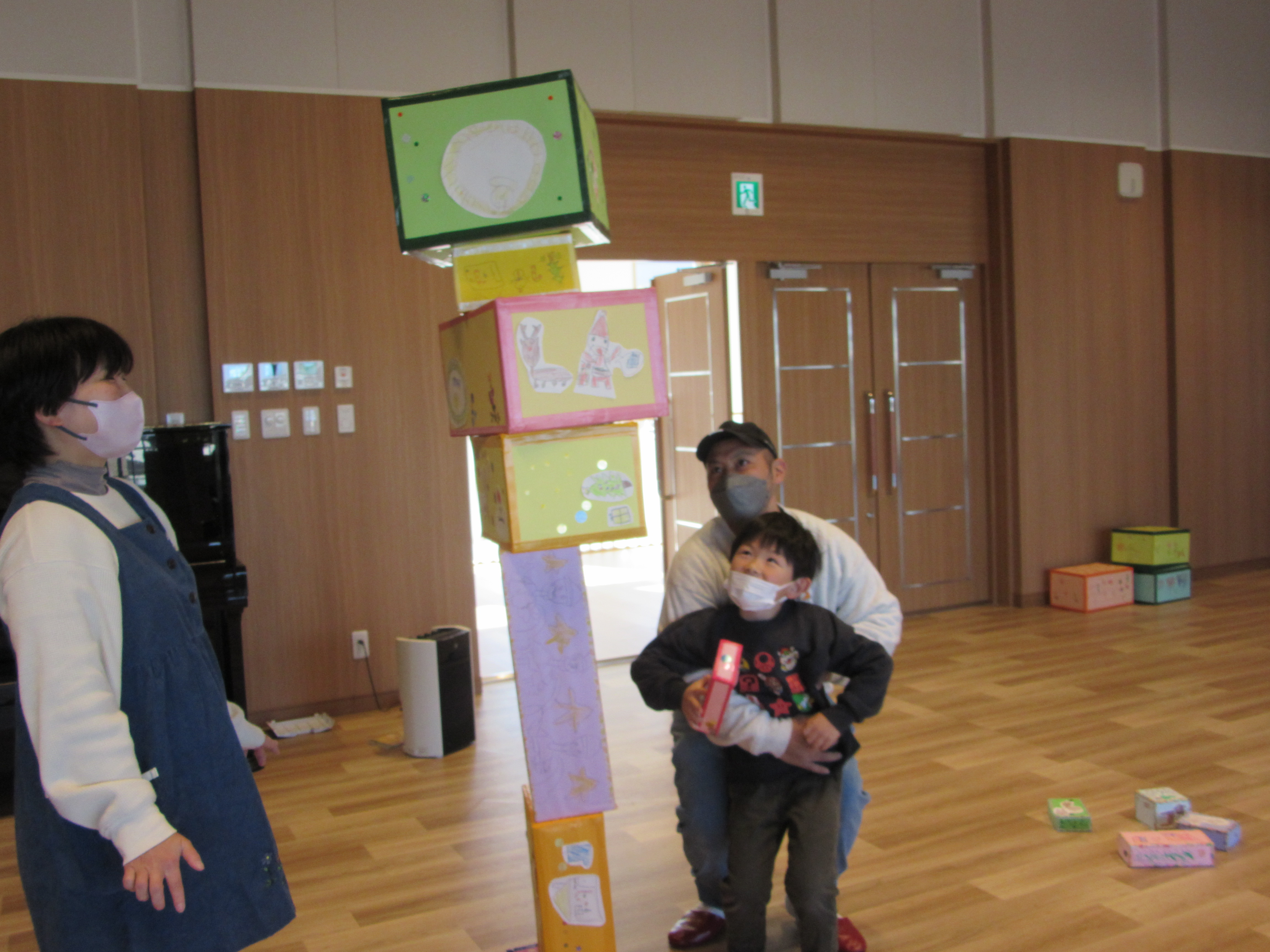 きりん組と段ボール積みゲームをしました(*^_^*)