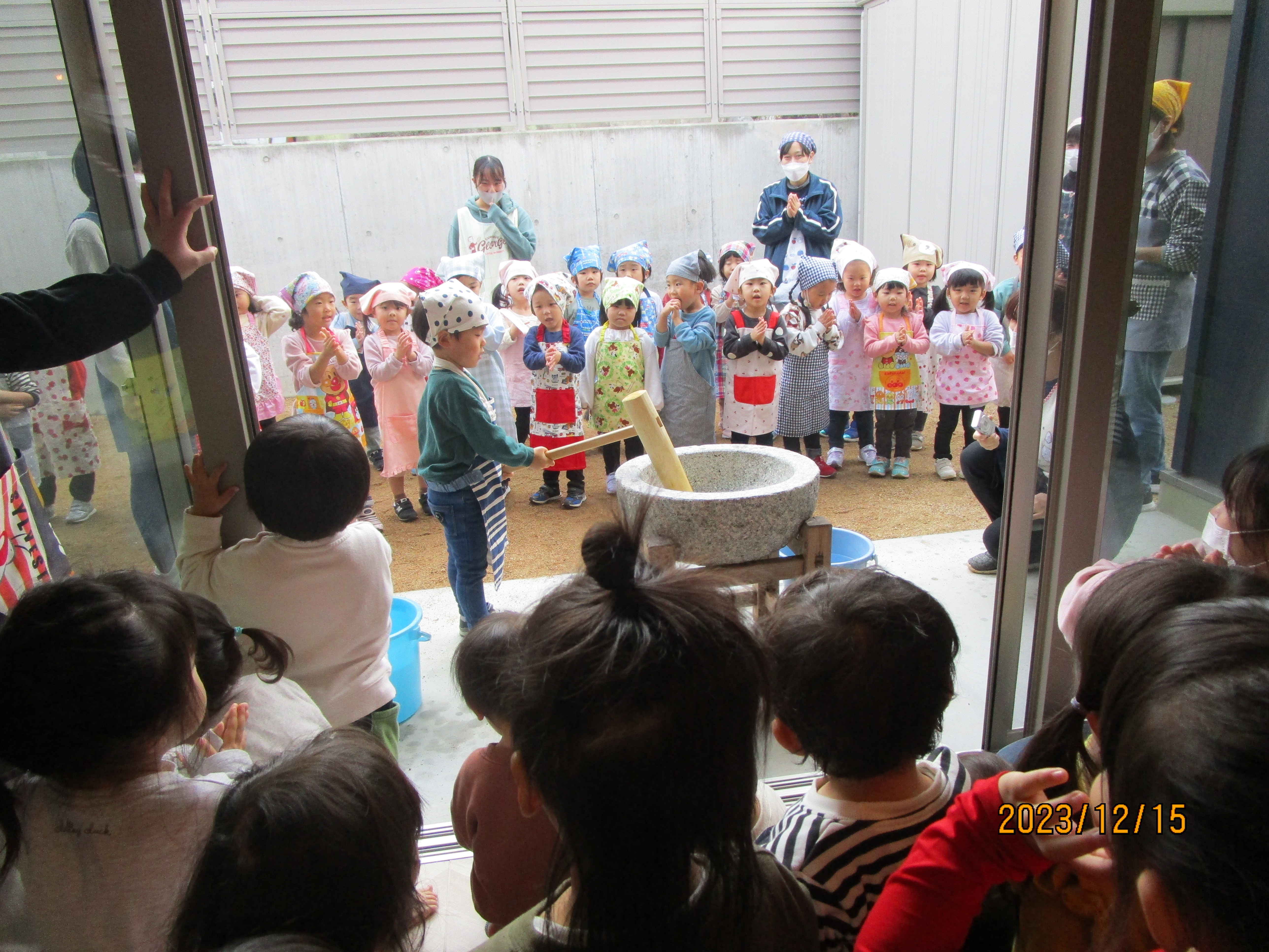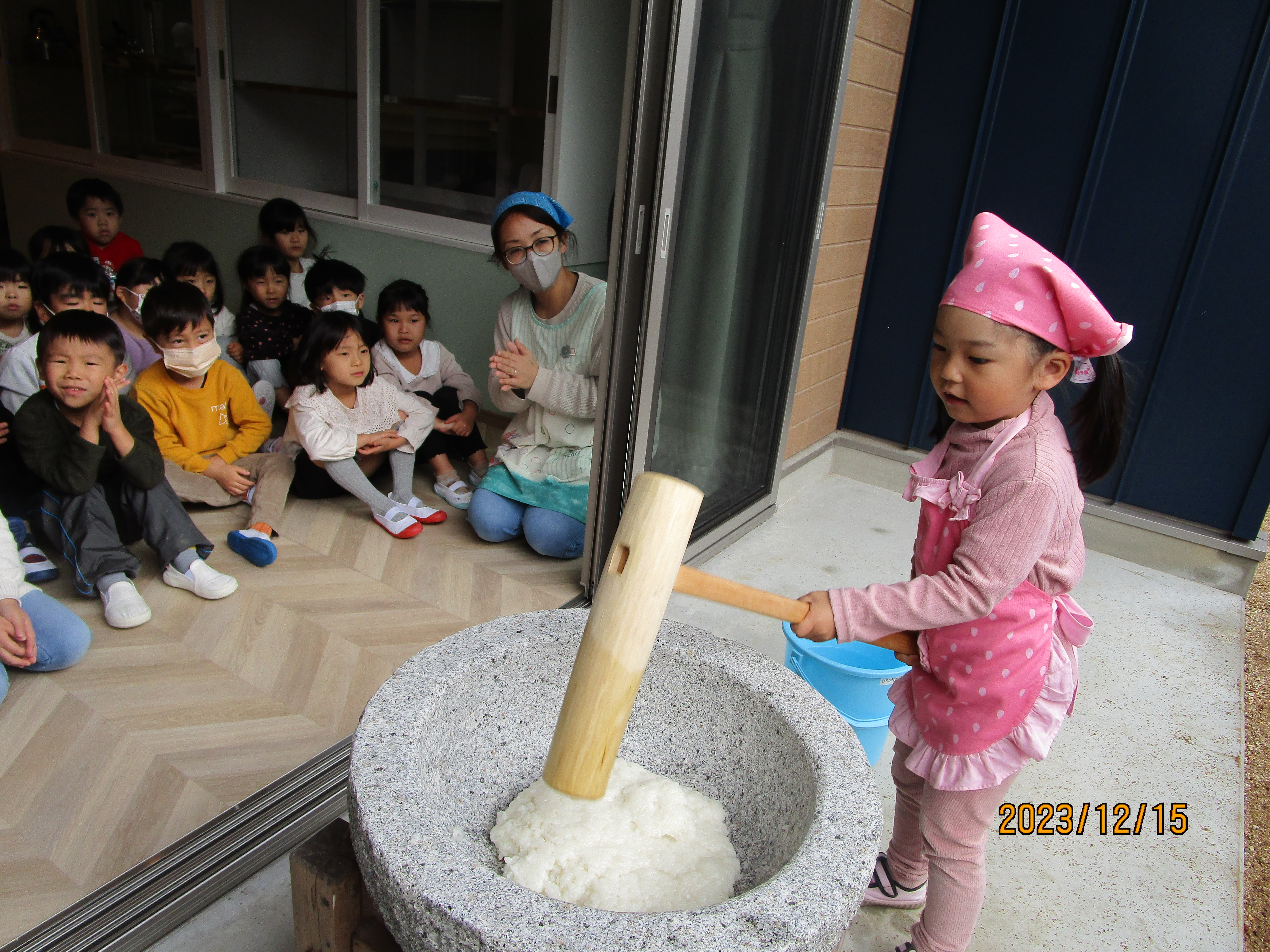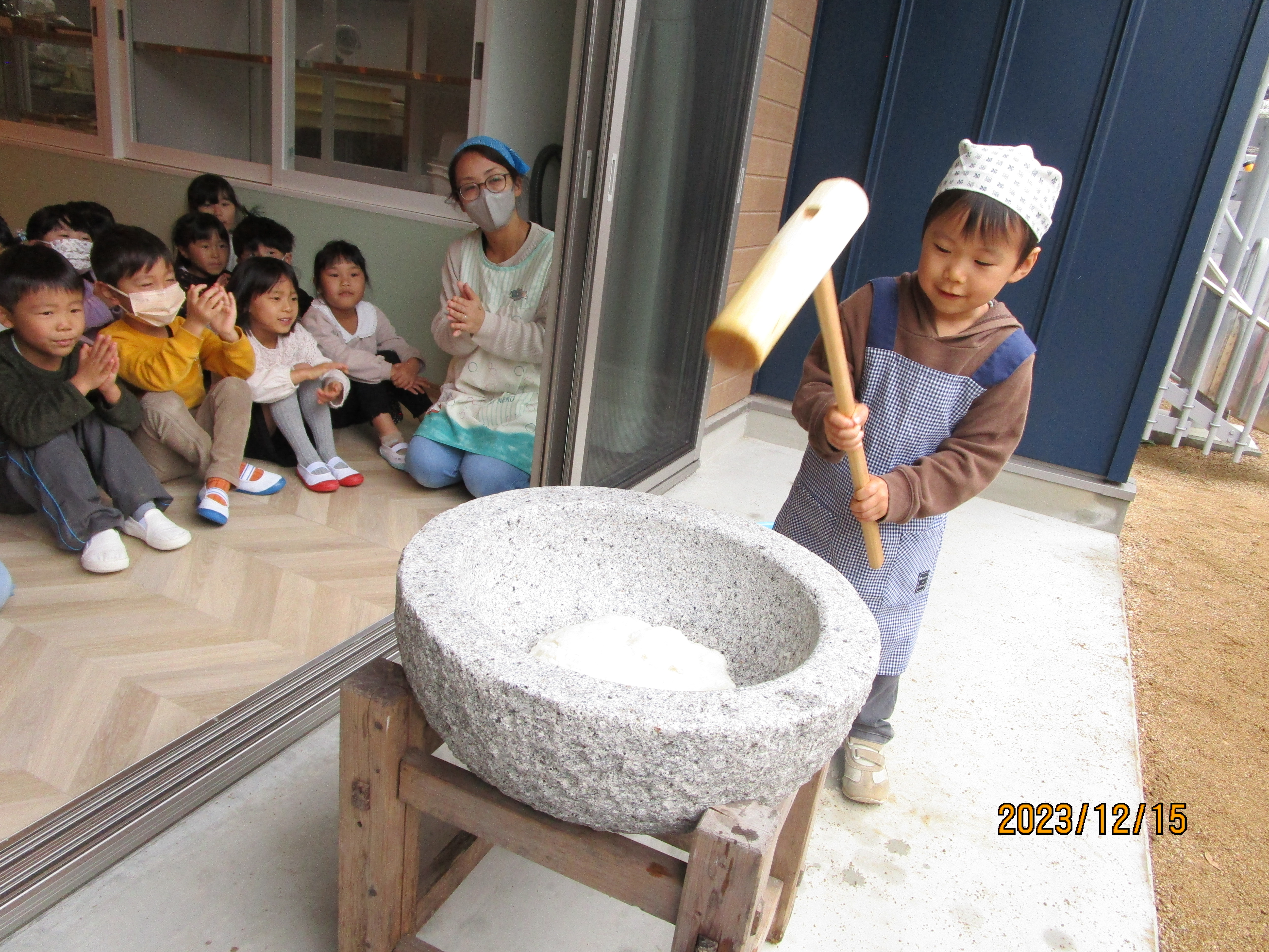 「お兄ちゃん、お姉ちゃんがんばって!」 「おもちってこうやって作るんだね」