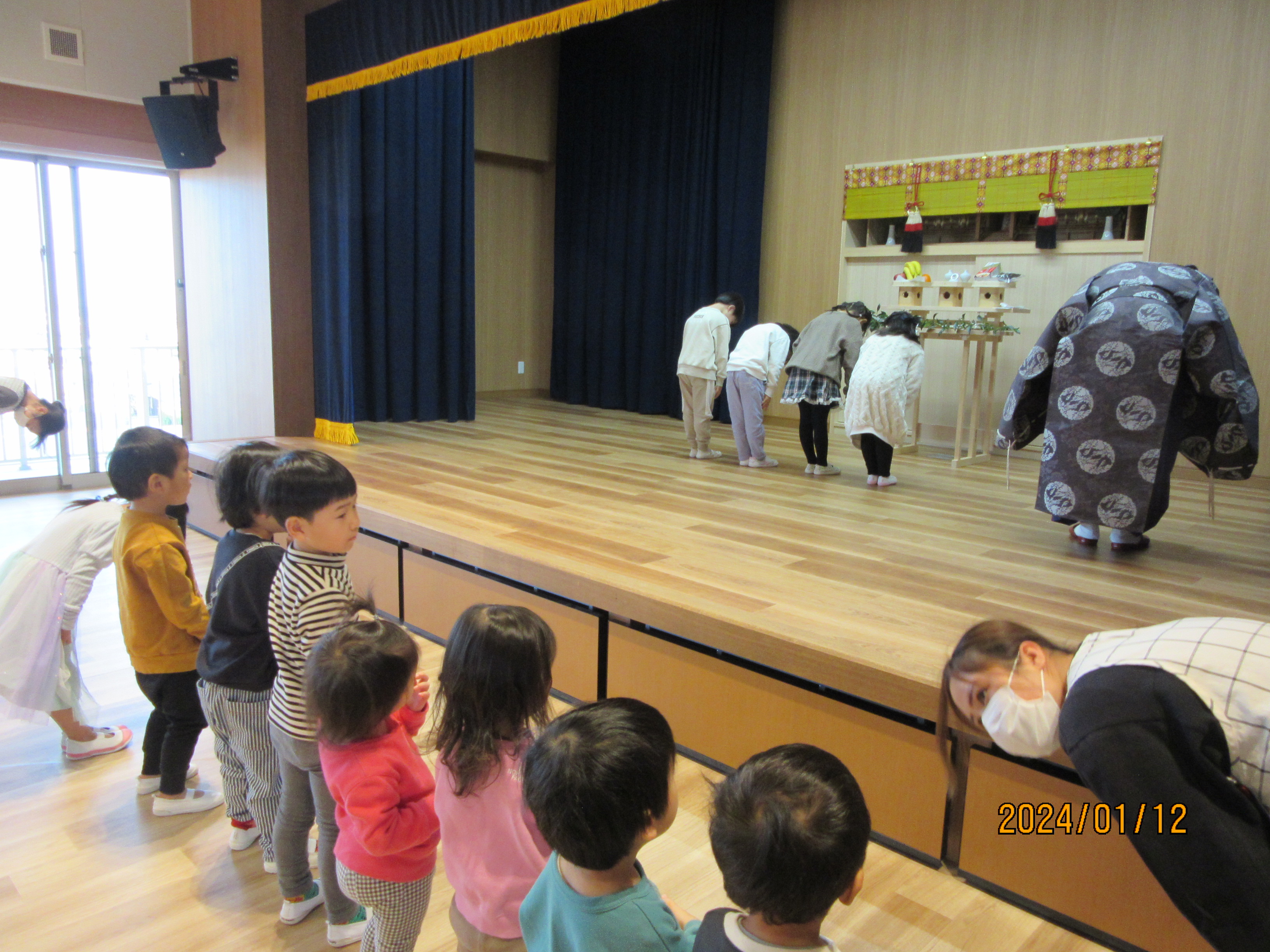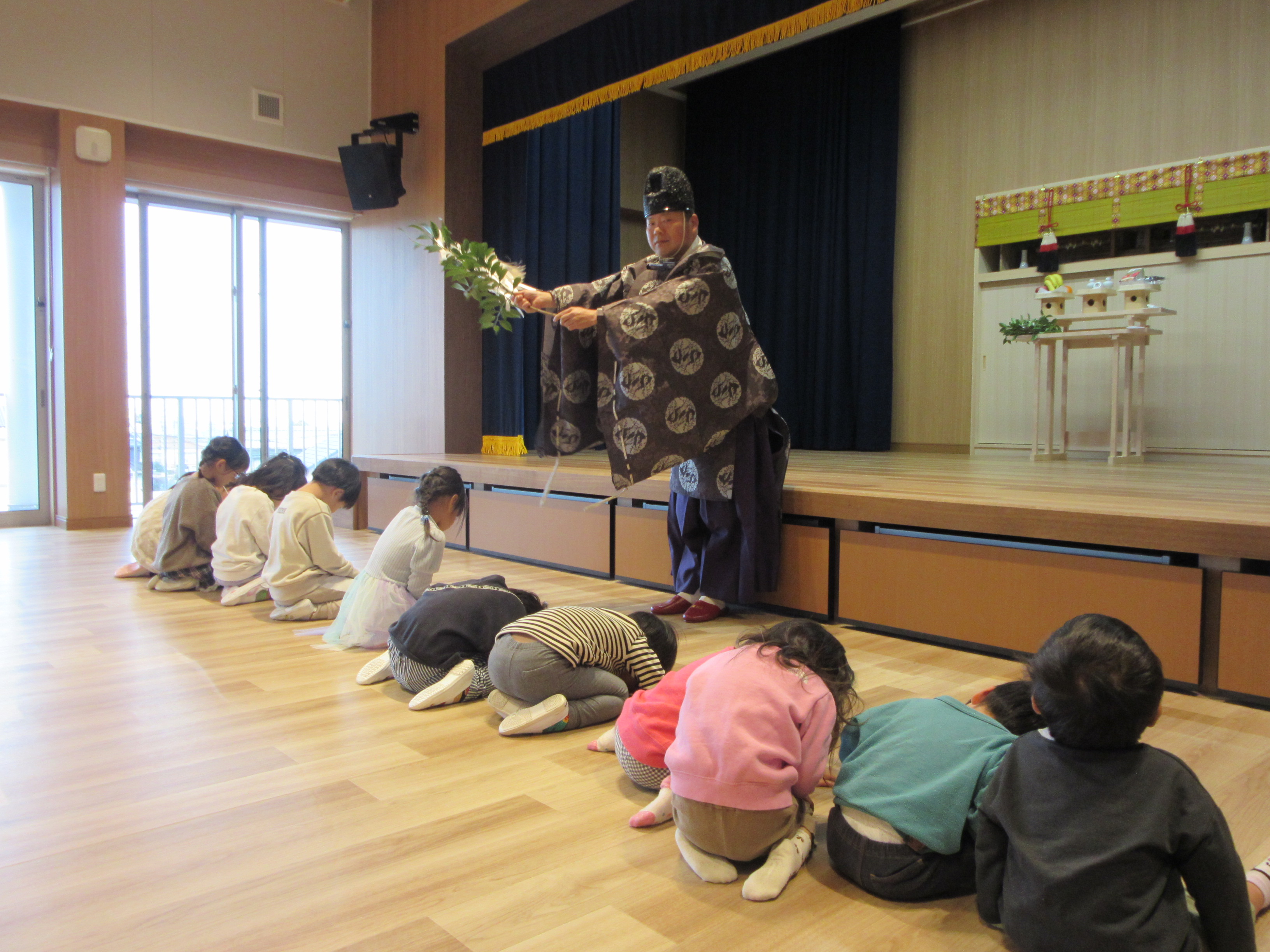 新園舎になり、2階のお遊戯室には神棚が設置されています。