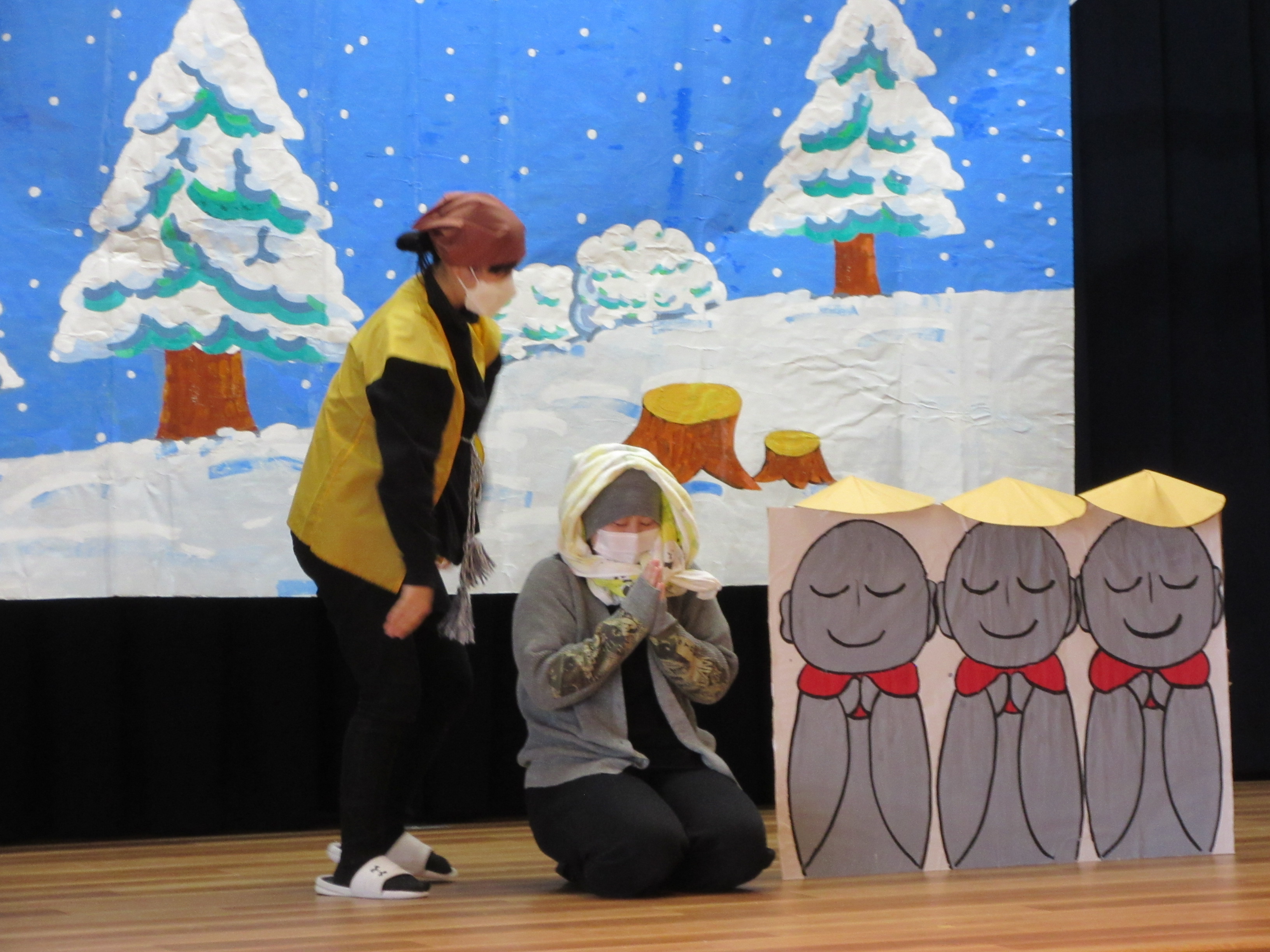 「かさをかぶせてあげましょう♪」        「おじぞうさんかわいい♡」