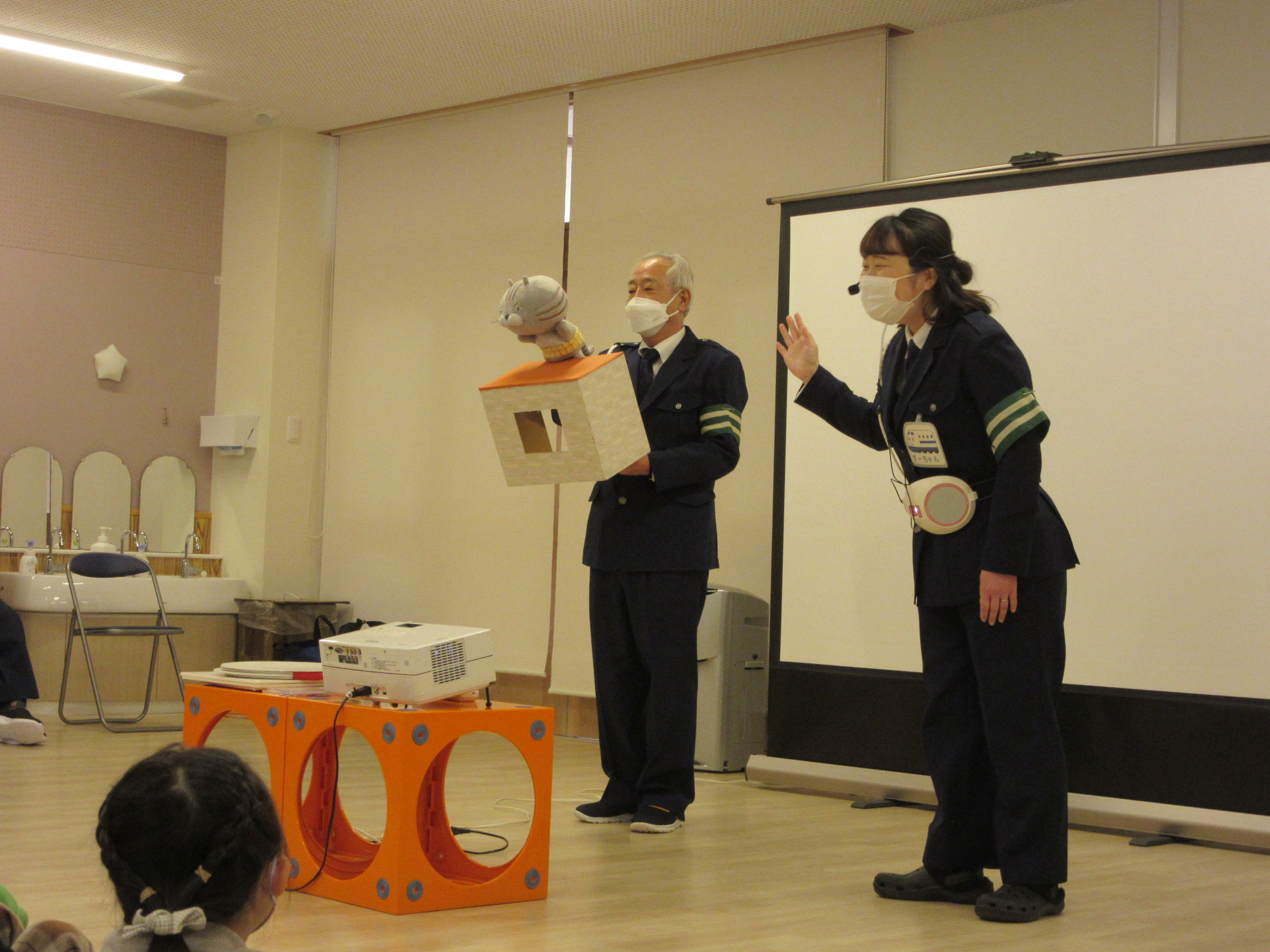 市役所危機管理課の方による交通安全教室がありました。