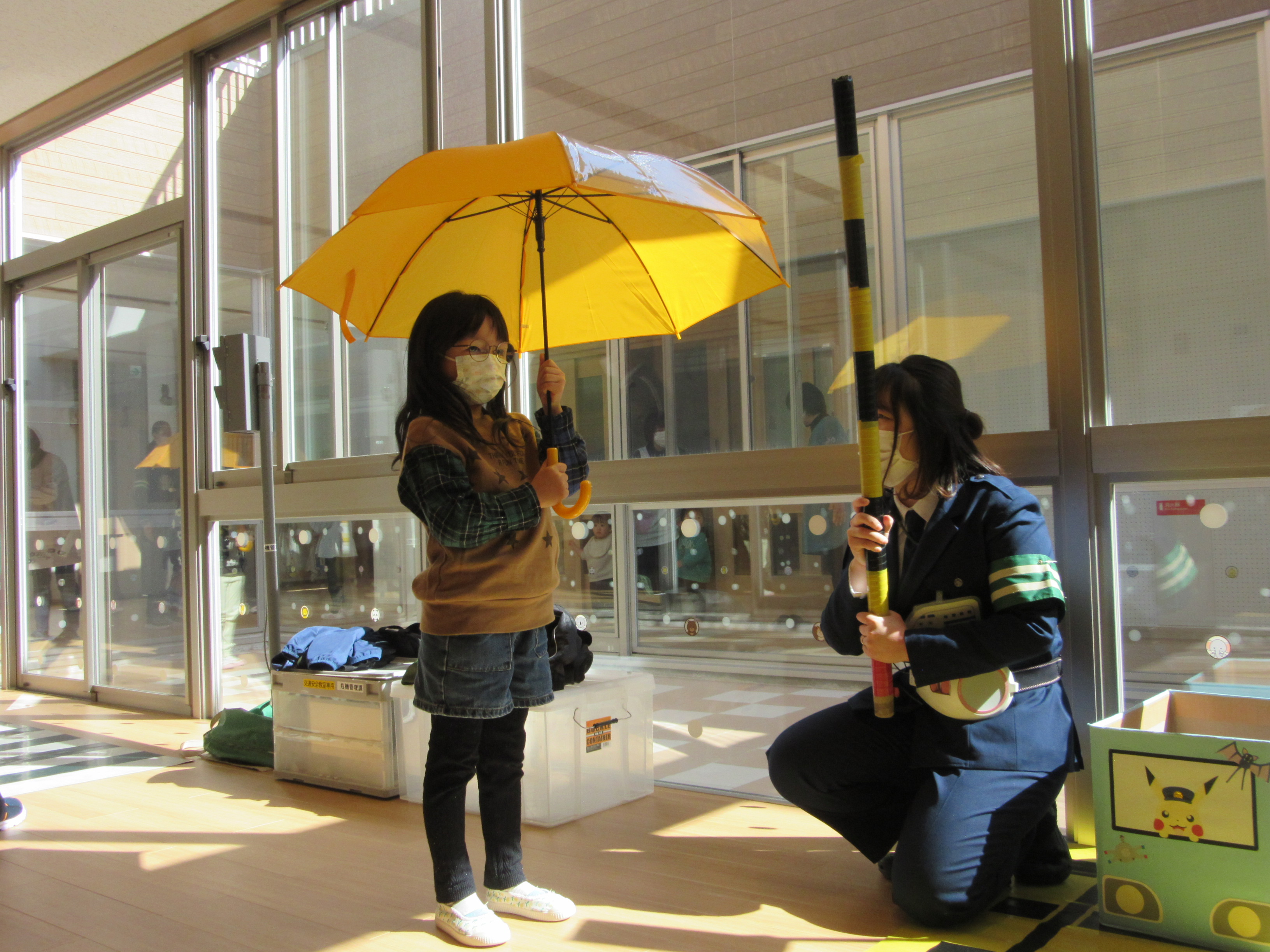 傘をさして歩く練習にも真剣に取り組んでいましたよ☆
