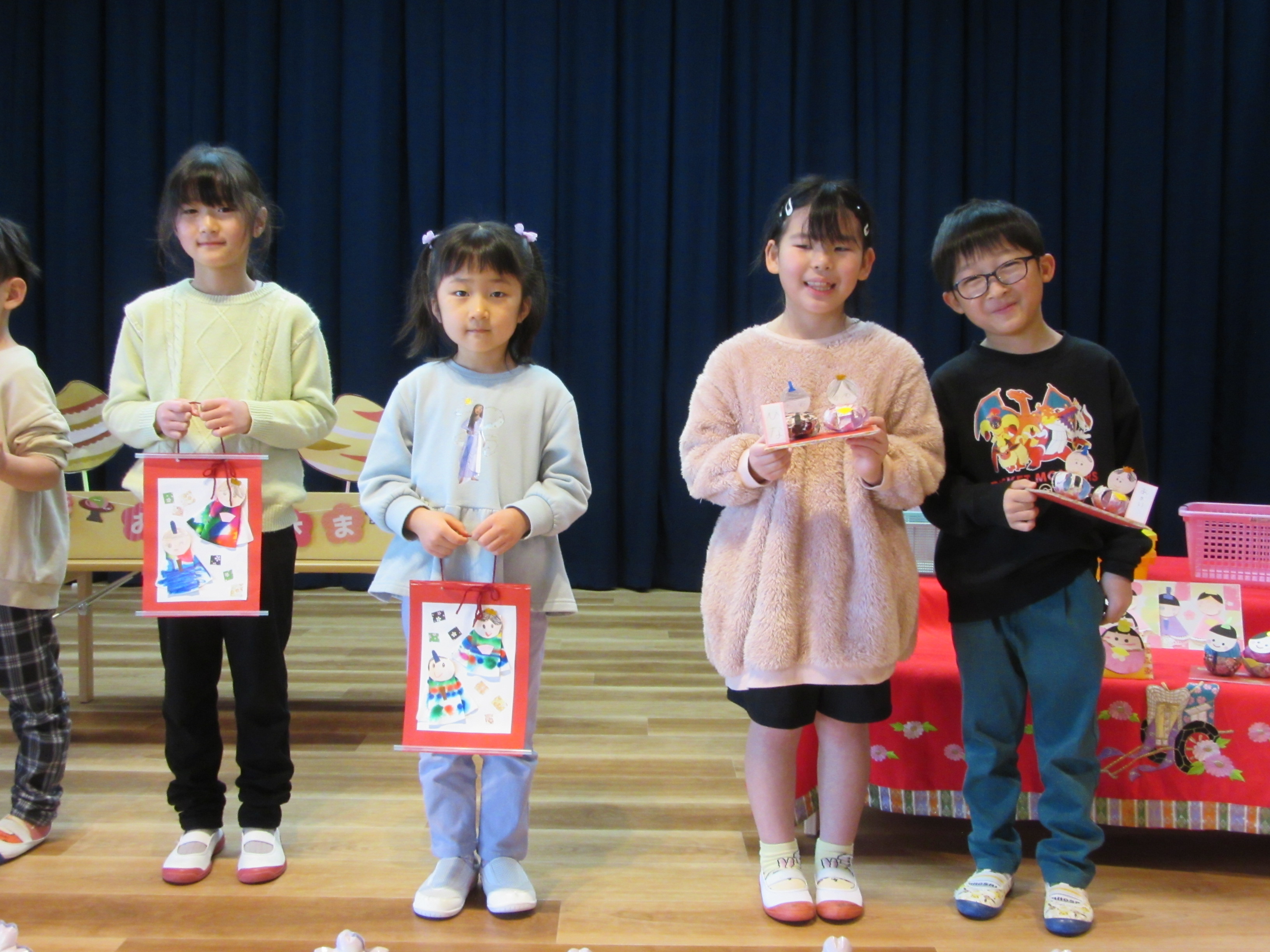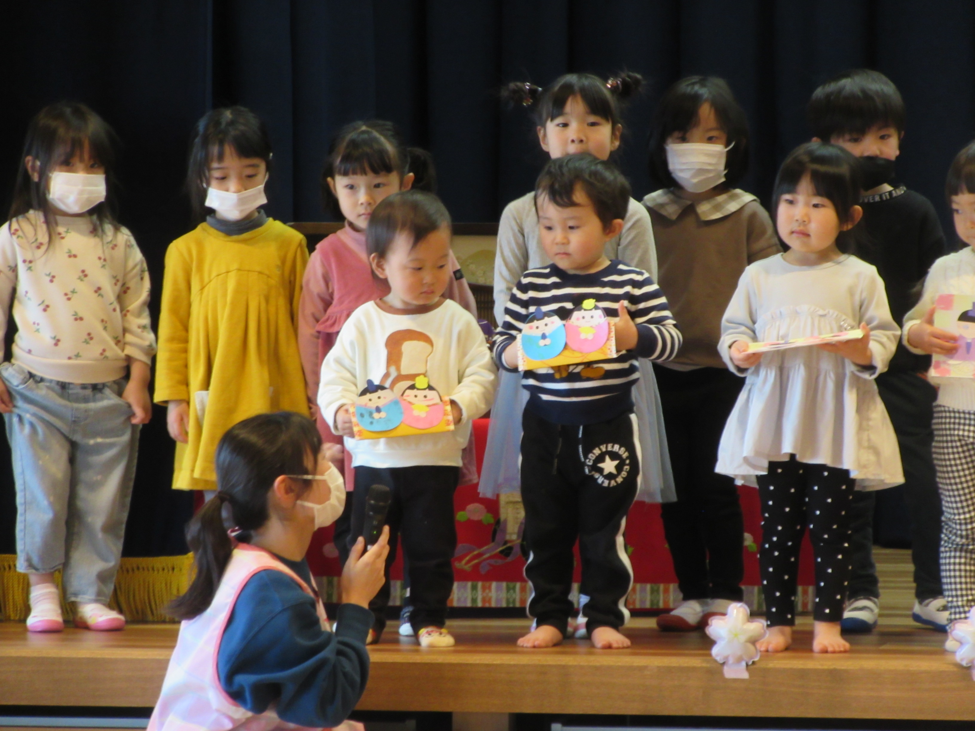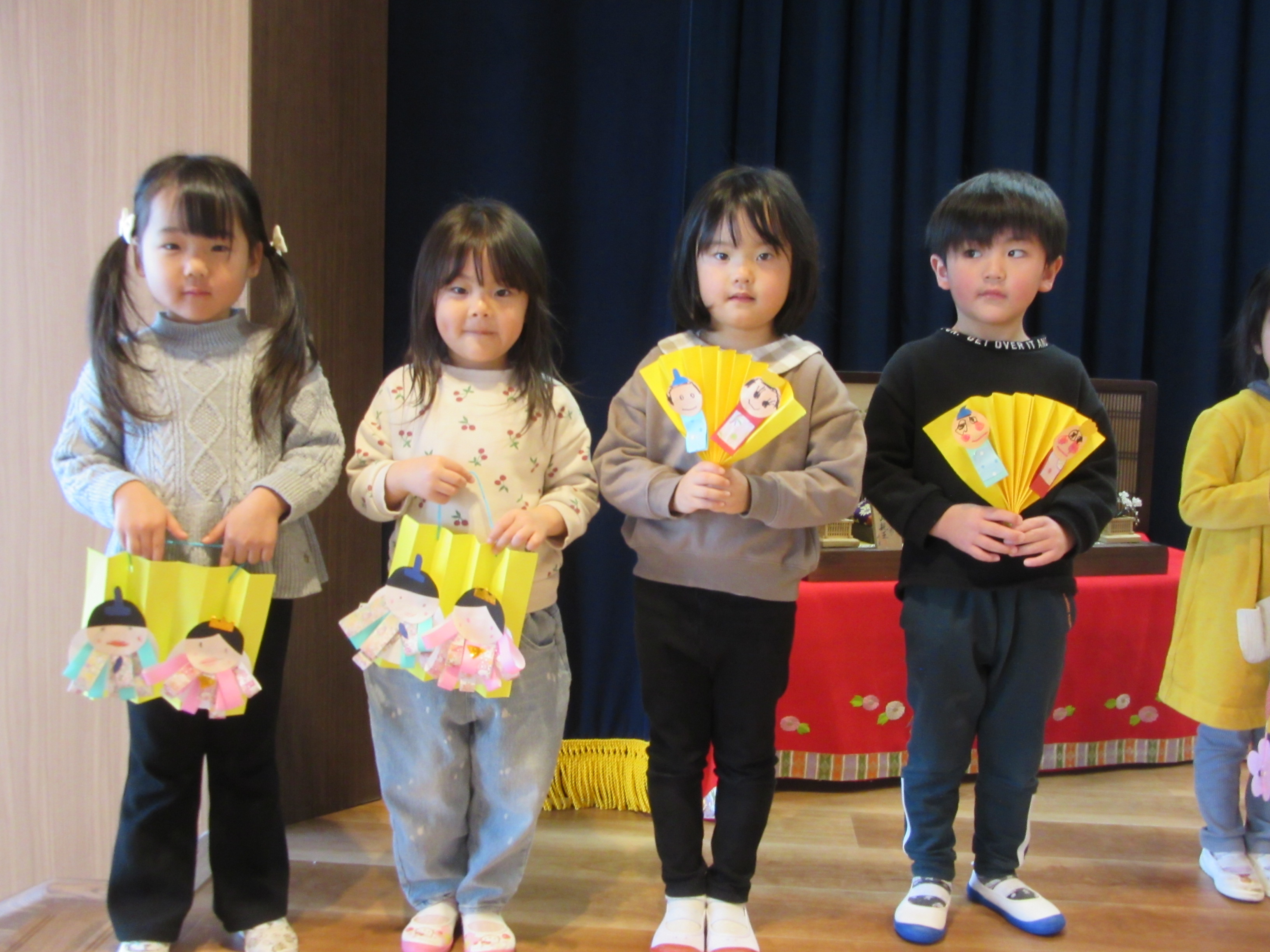 頑張って自分で作ったよ! みんなで「うれしいひなまつり」を歌いました♬