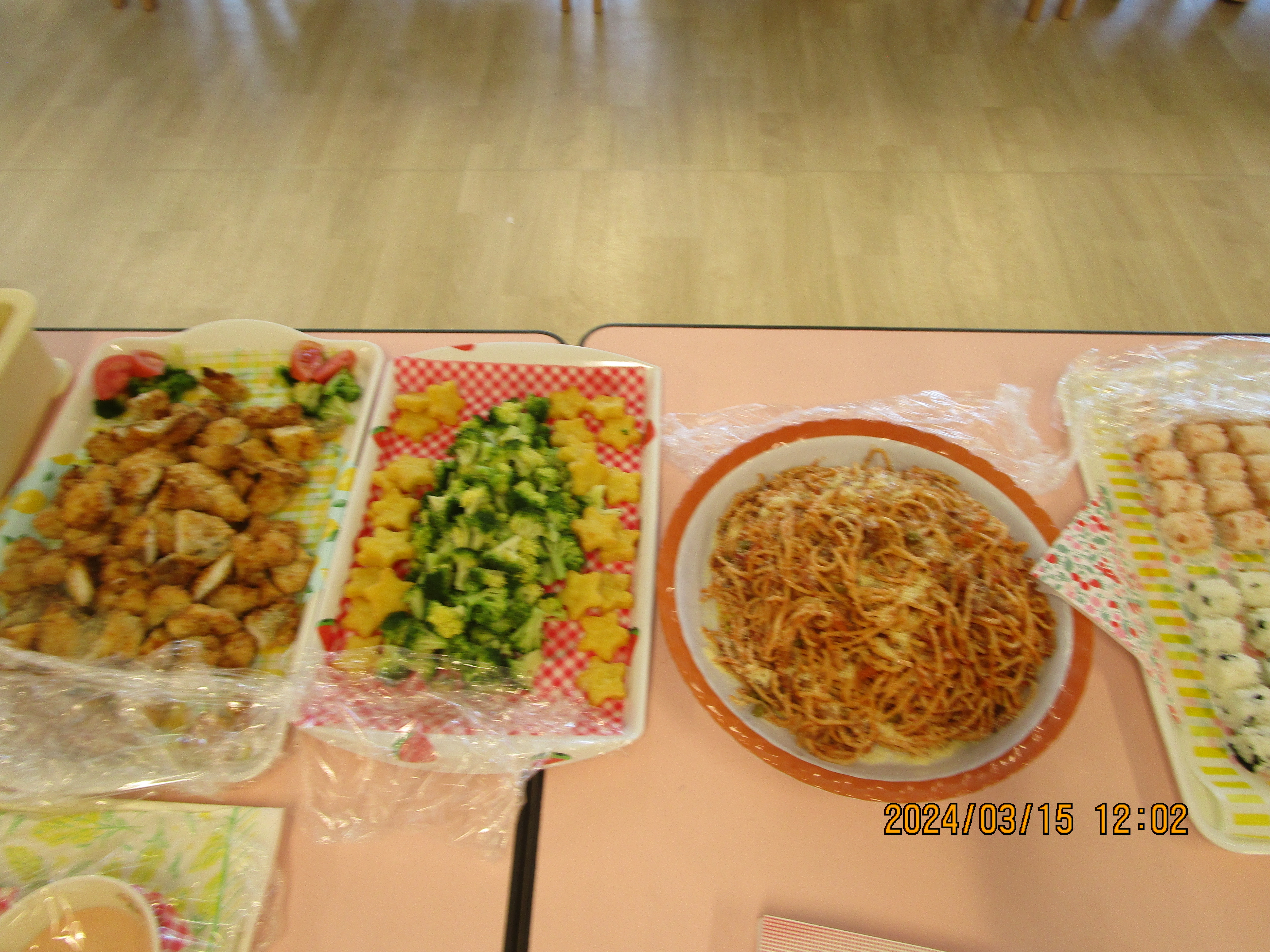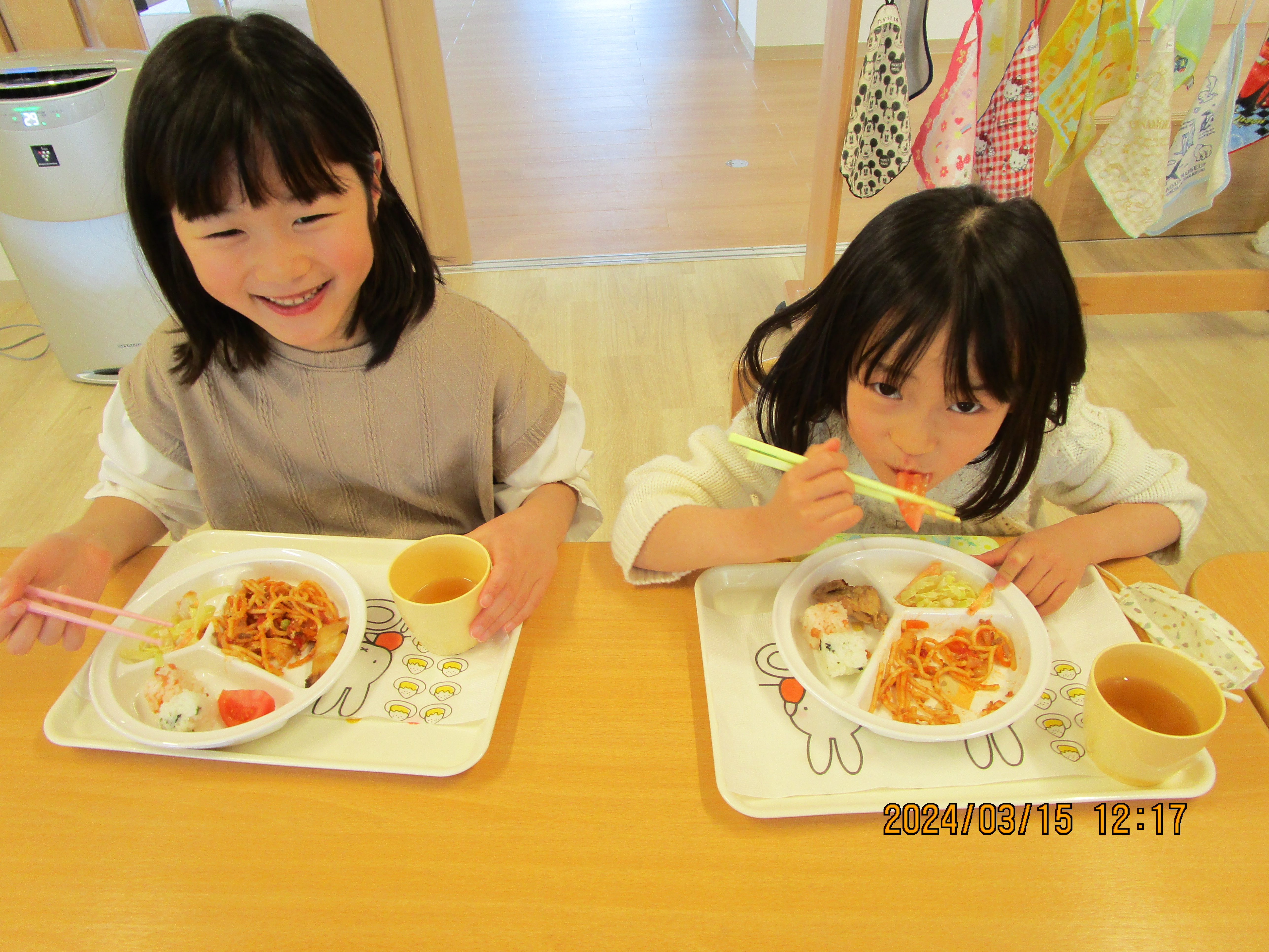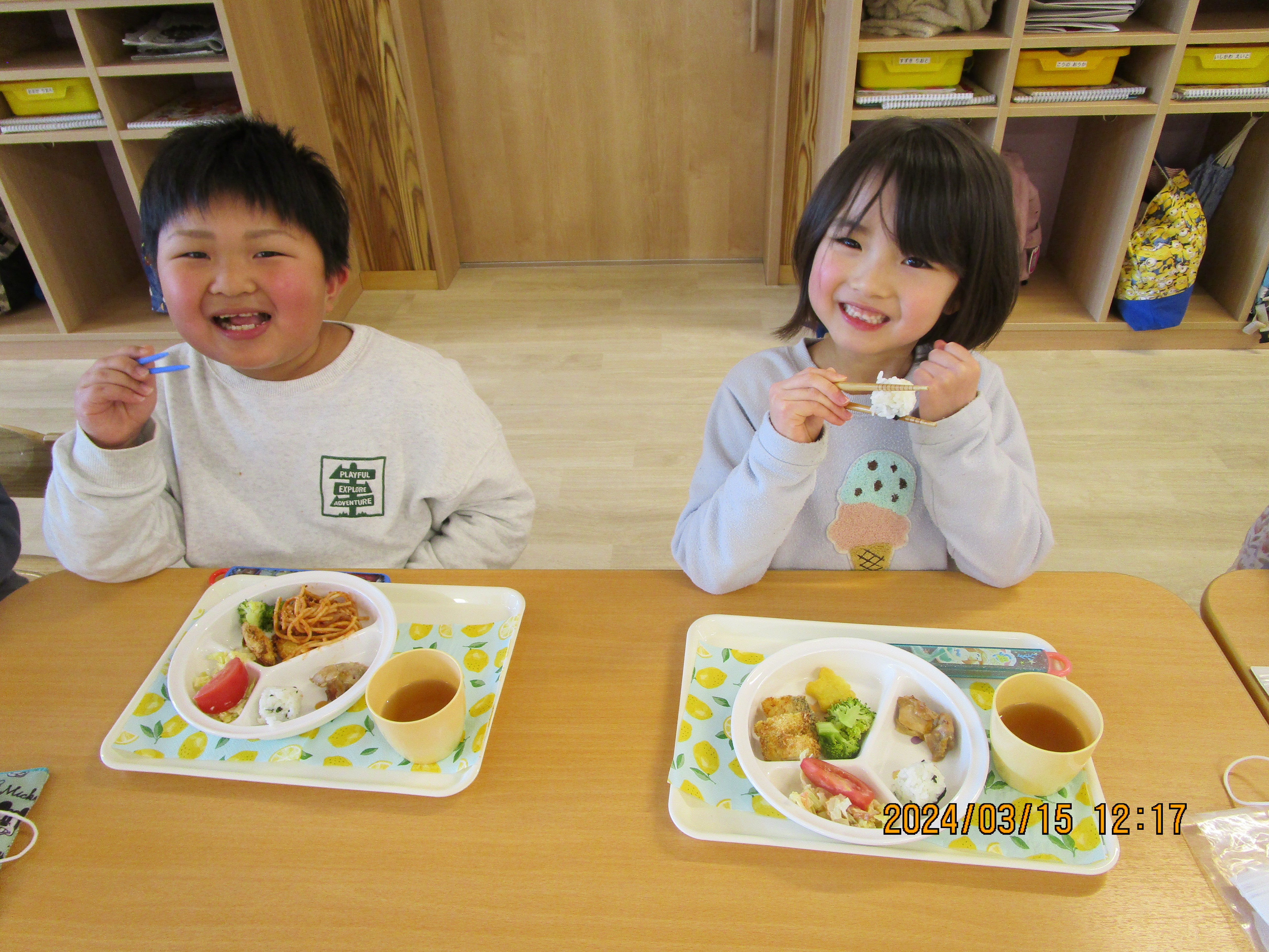年長さんから、メッセージカードをお世話になった先生たちへ♡ 給食はバイキング給食でした!