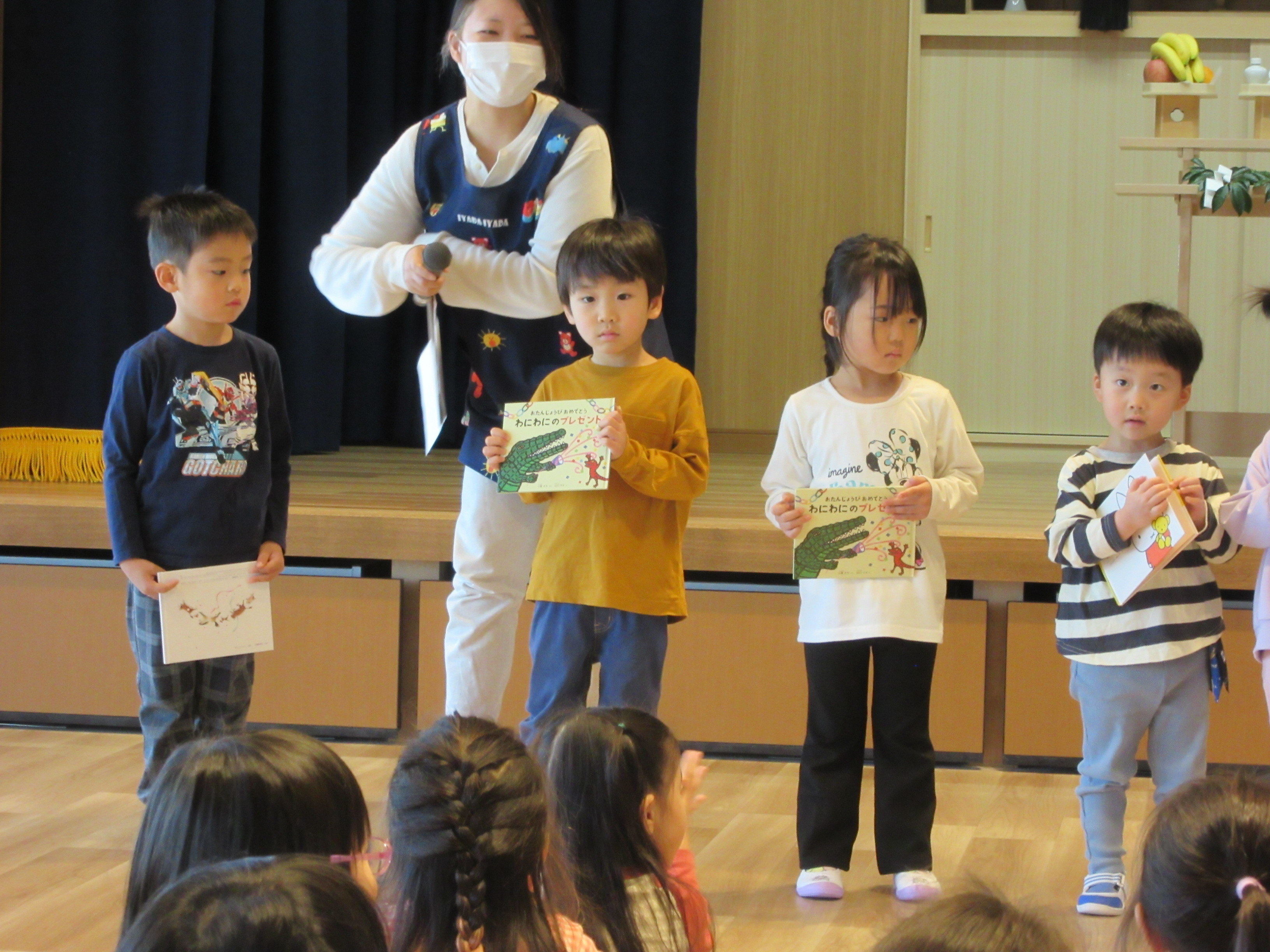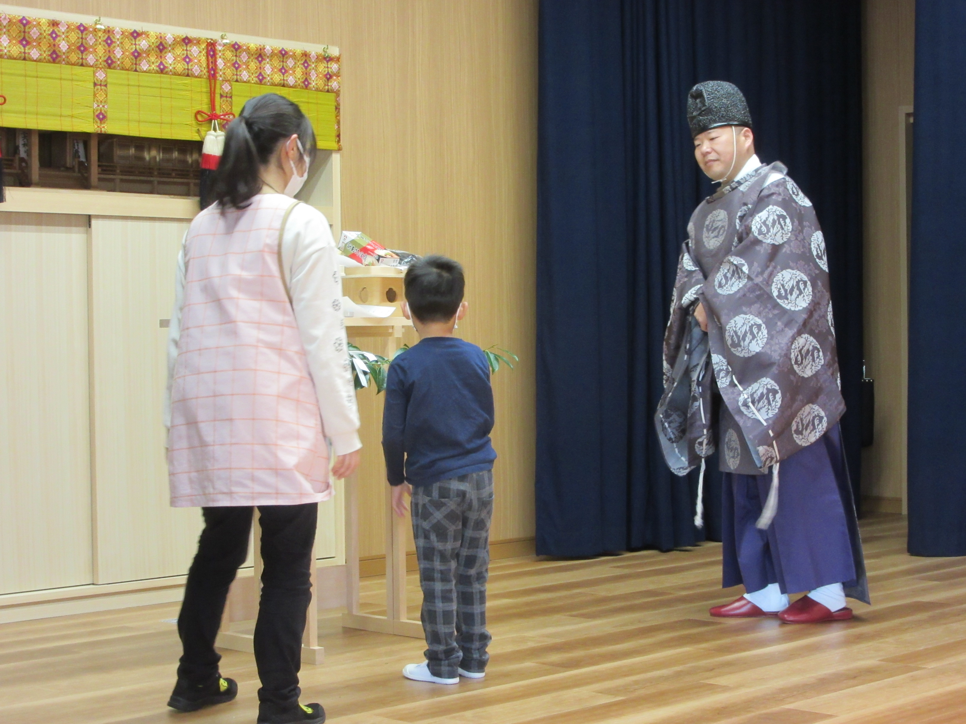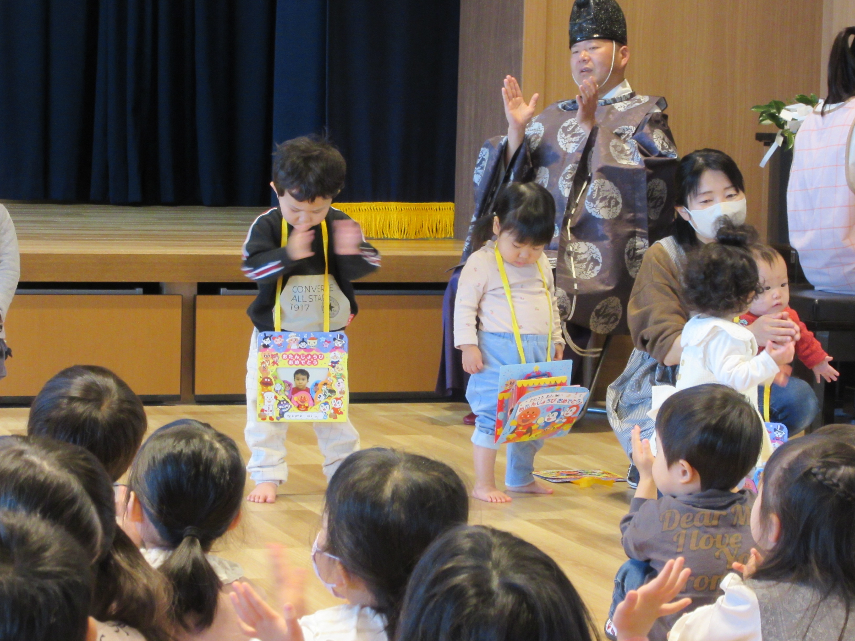 4月の誕生会を行いました。今月もみんなの健やかな成長を願い、白山神社の宮司さんに御祈祷して頂きました。