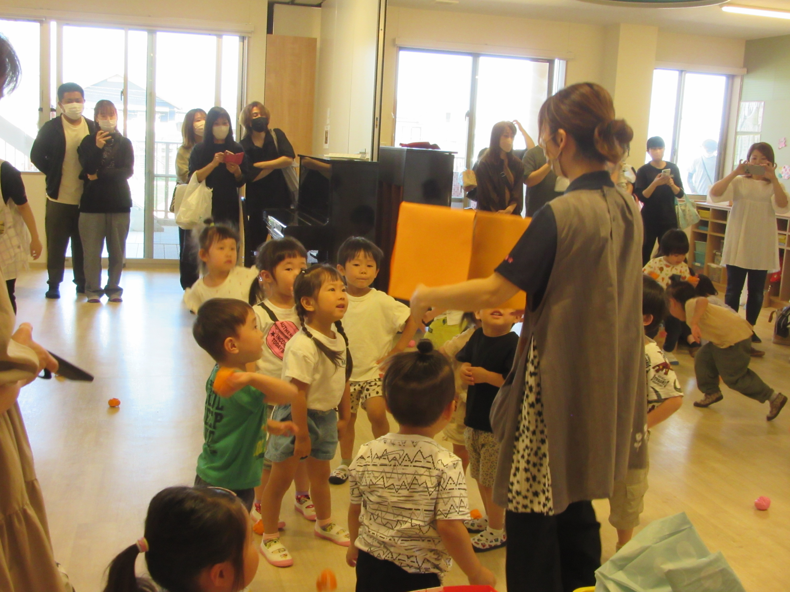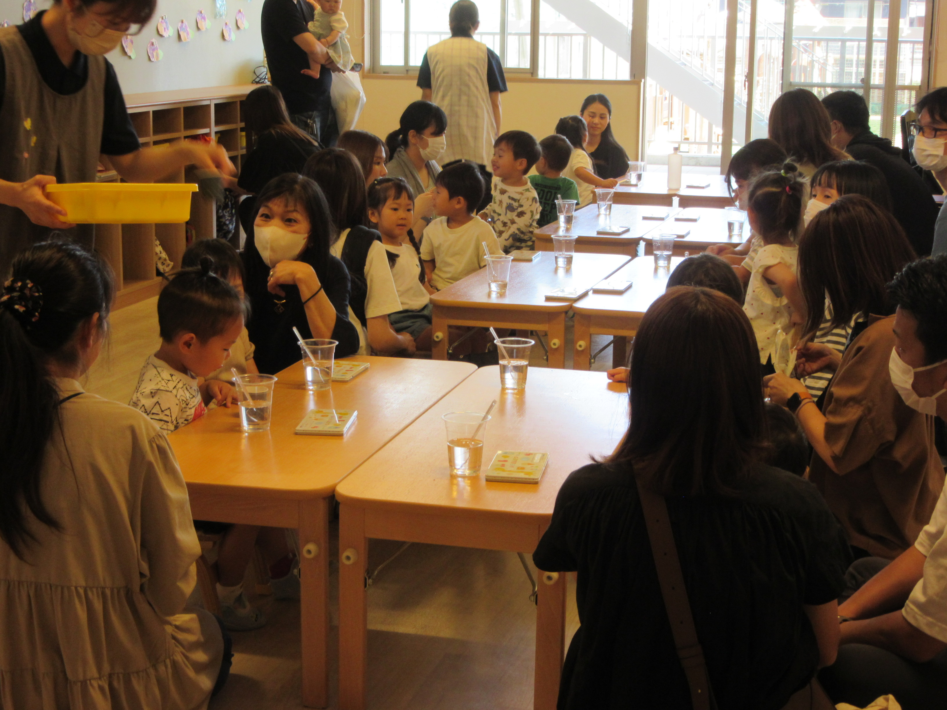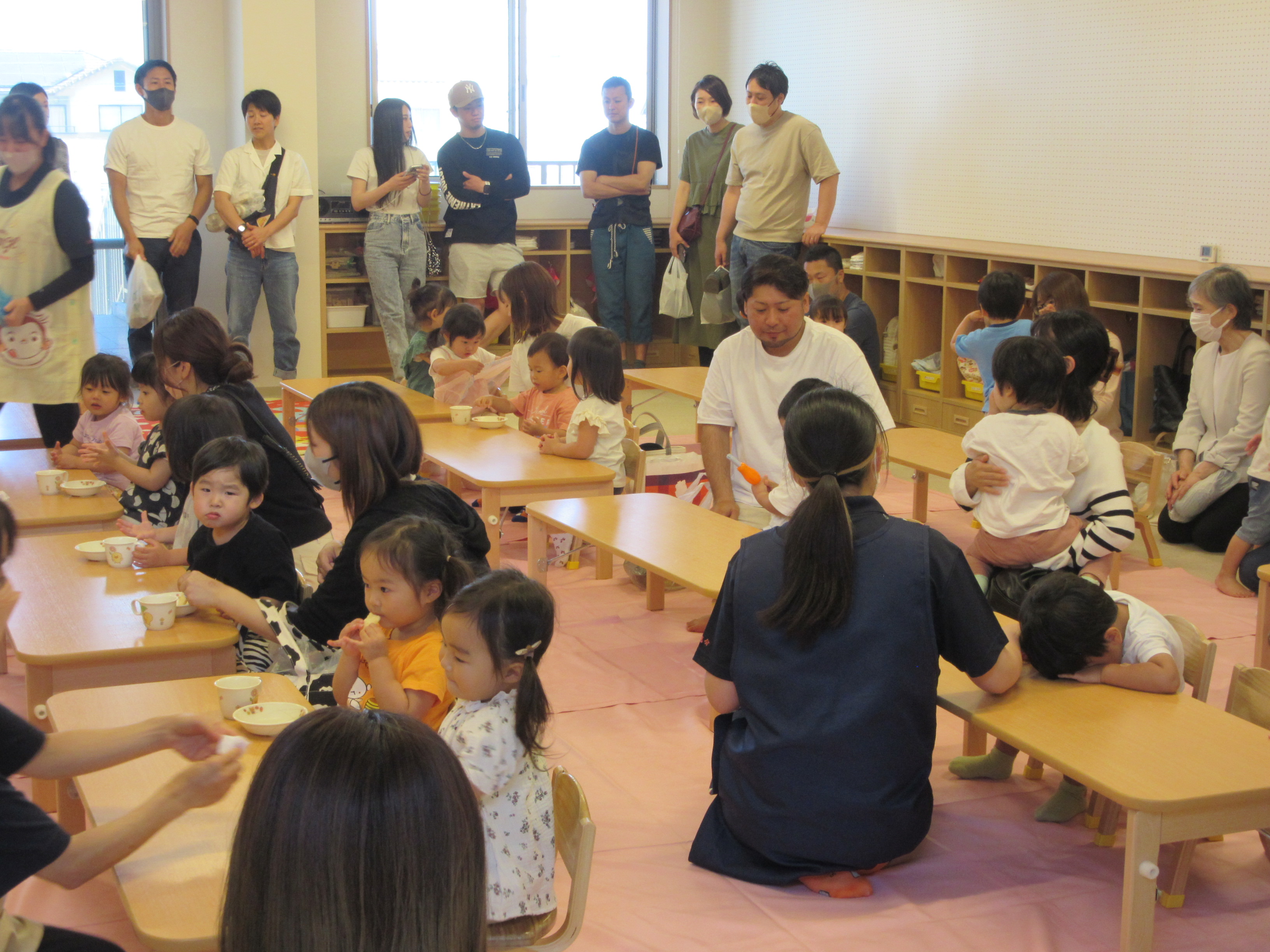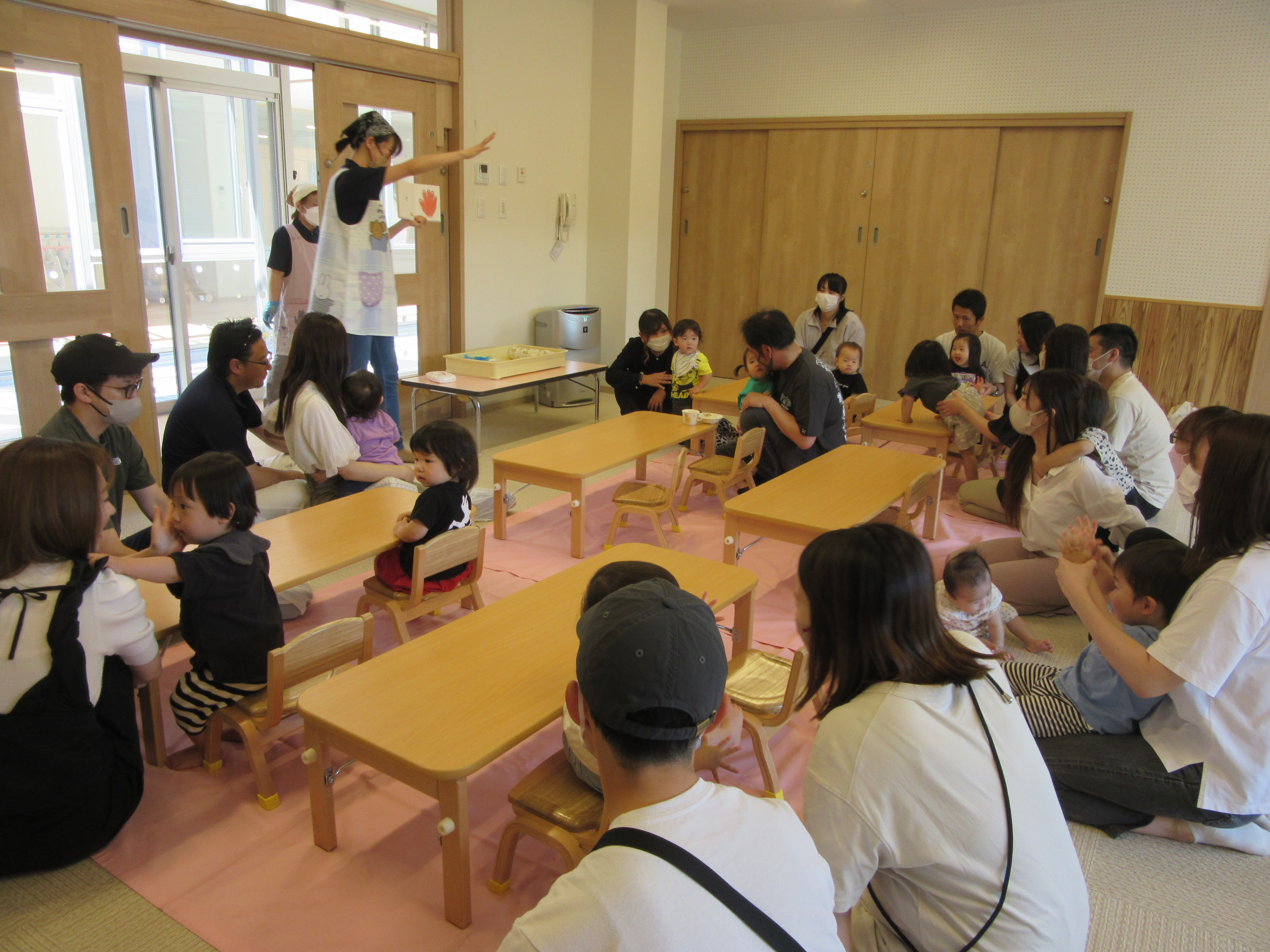 保育参観を実施しました。「お母さんたちが来てくれるんよー」と、
