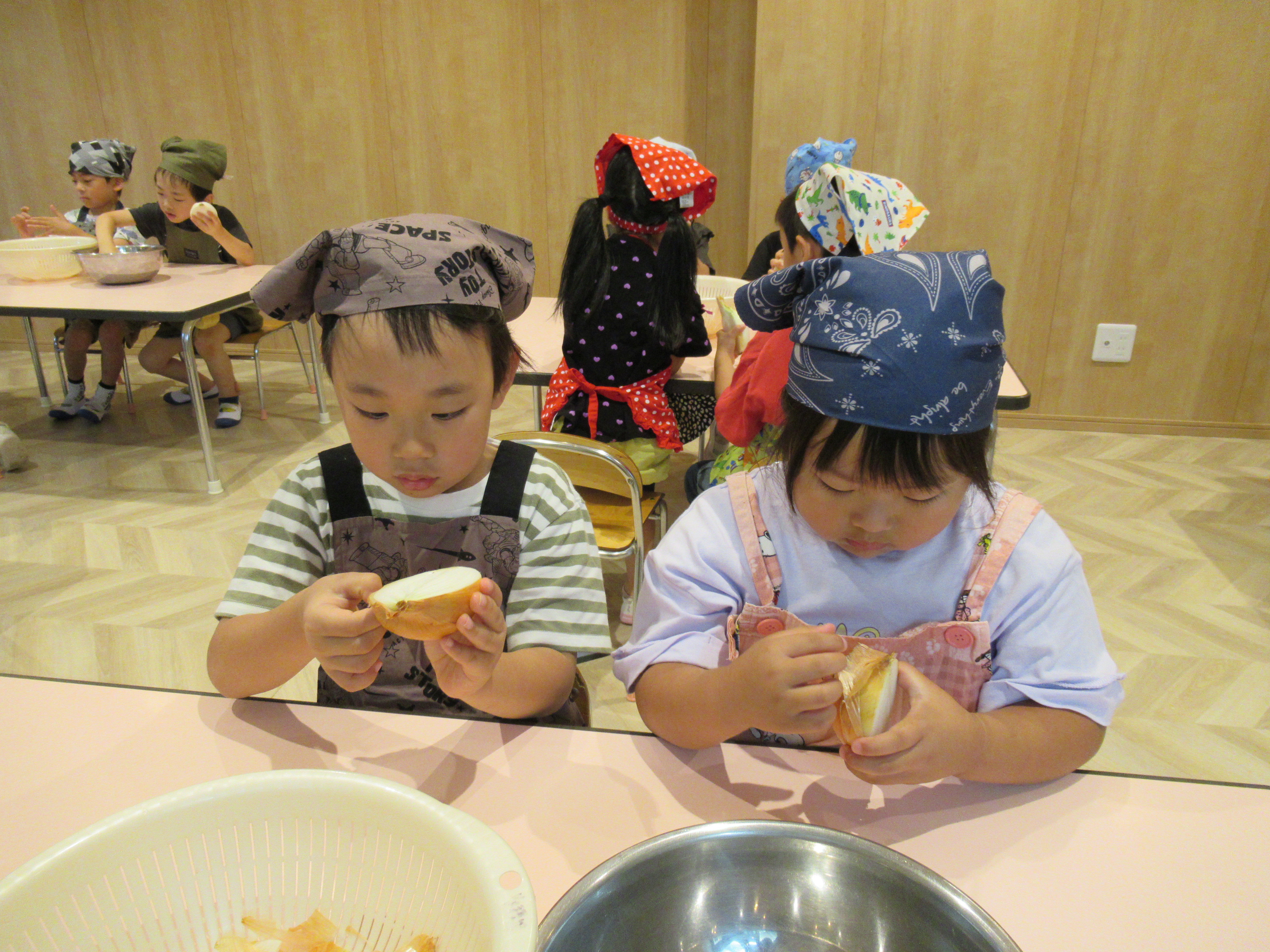 玉ねぎってどんなにおいするかな? 皮はどこまでむくのかな?