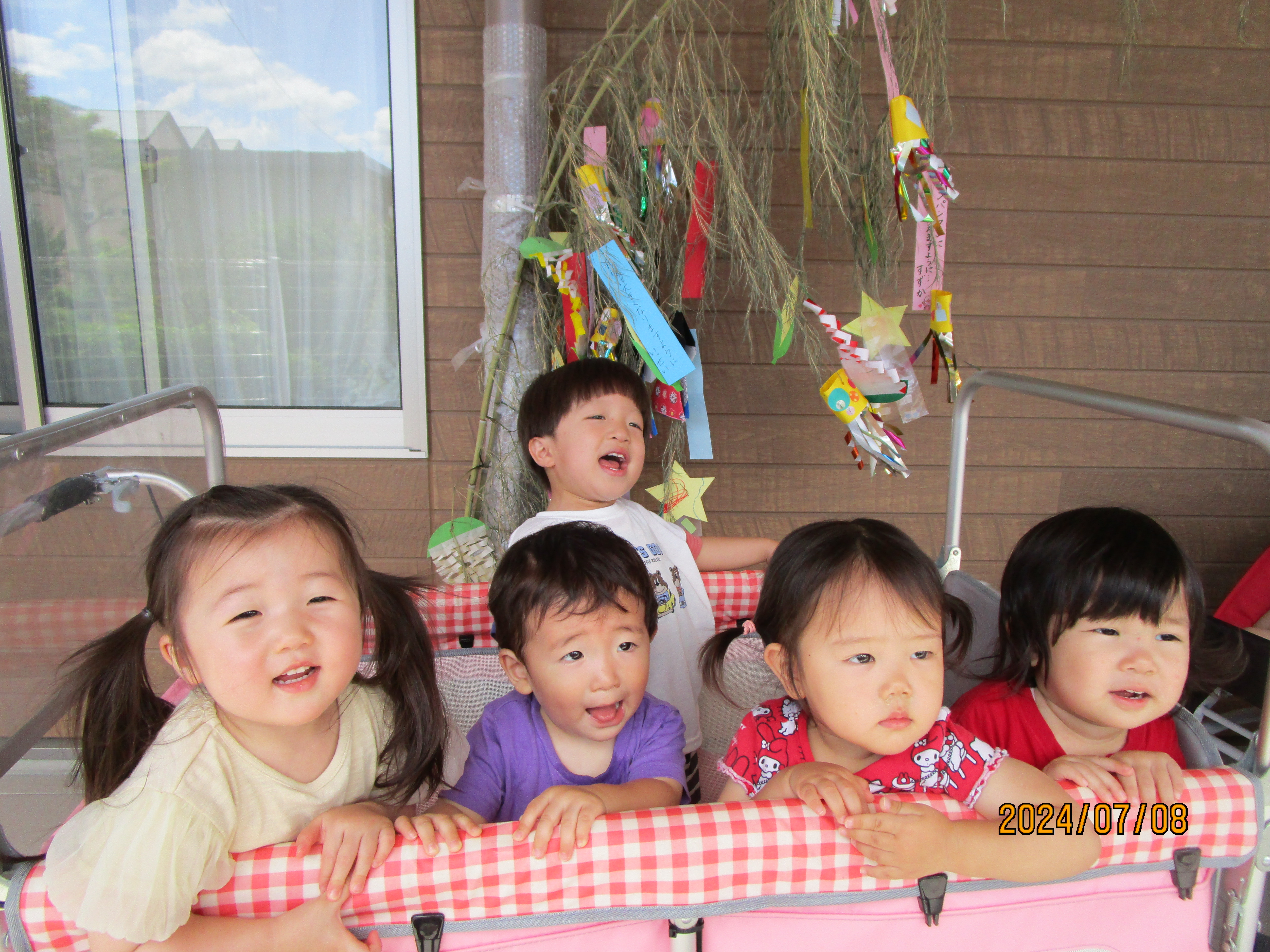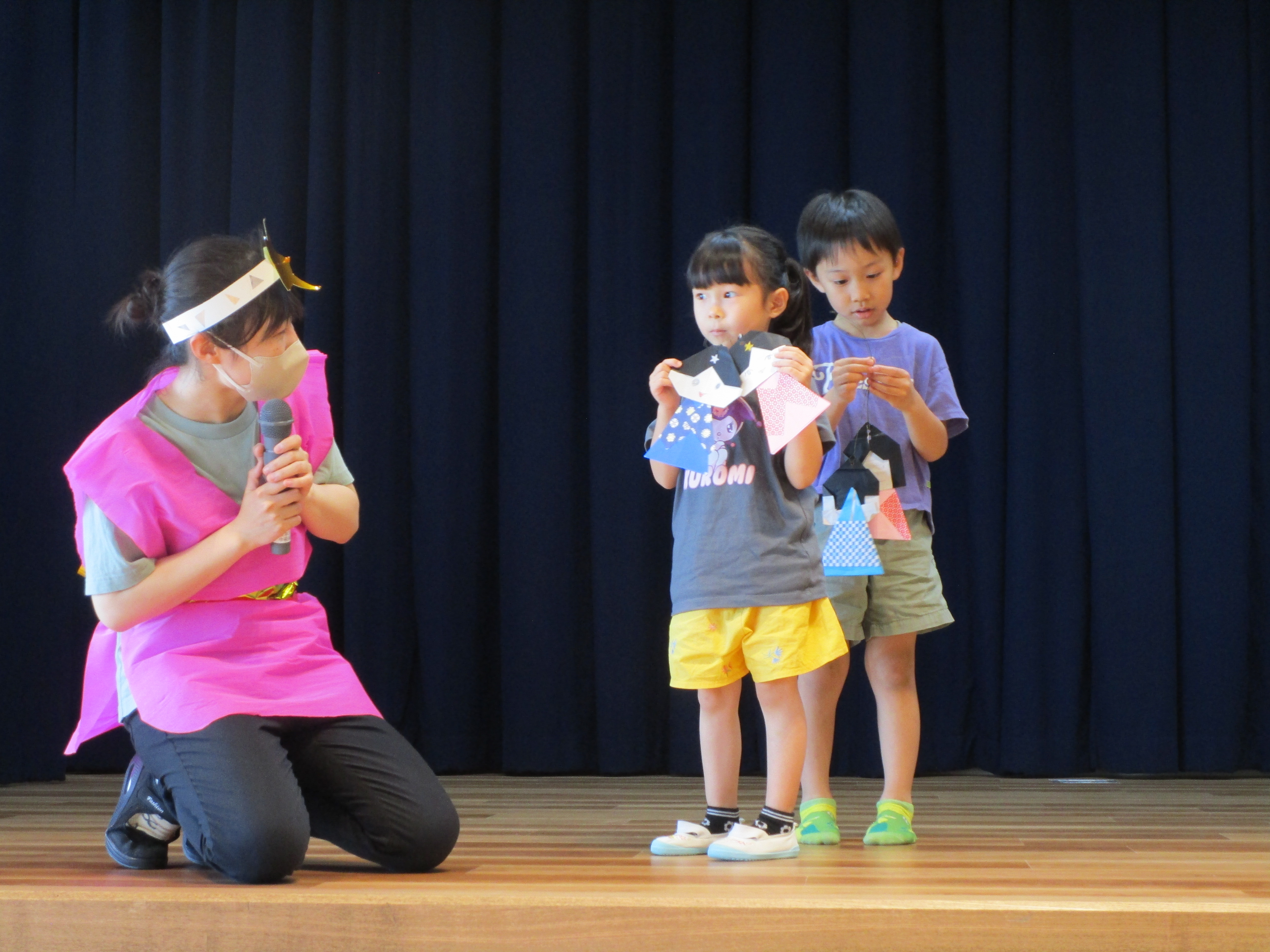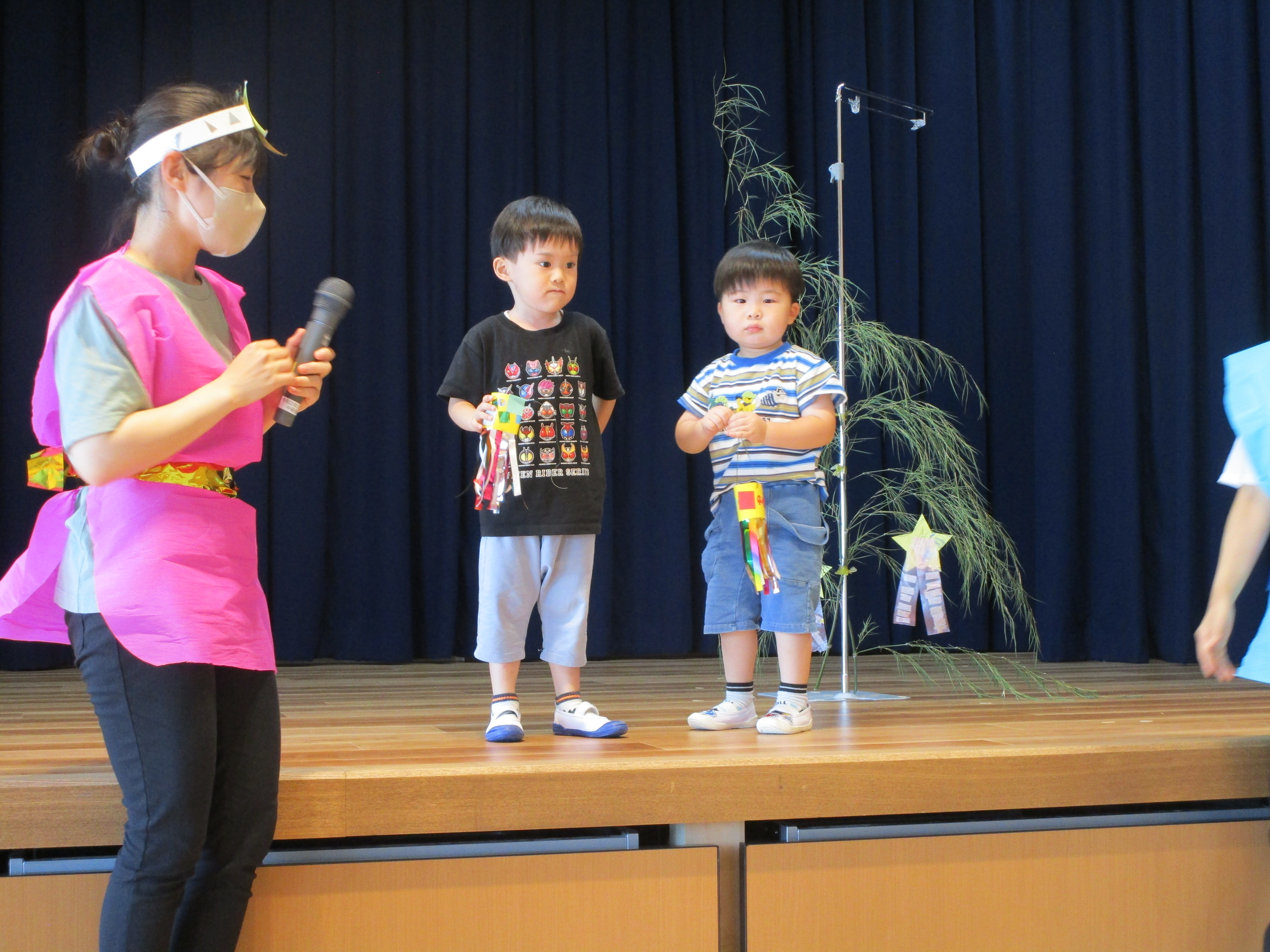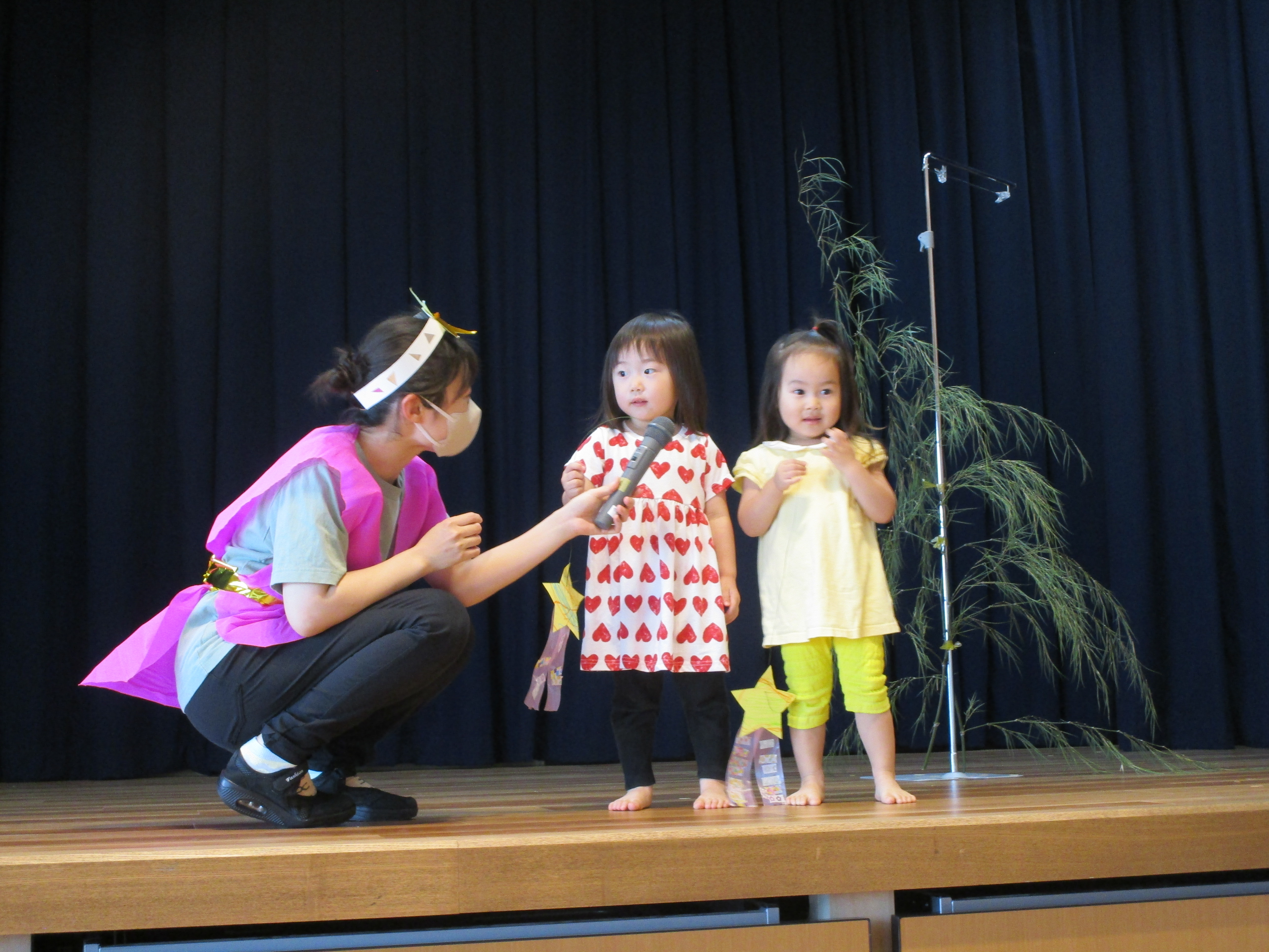その後は、みんなで七夕クイズに挑戦!!保育士のお話を聞いてしっかり答えることができていました。