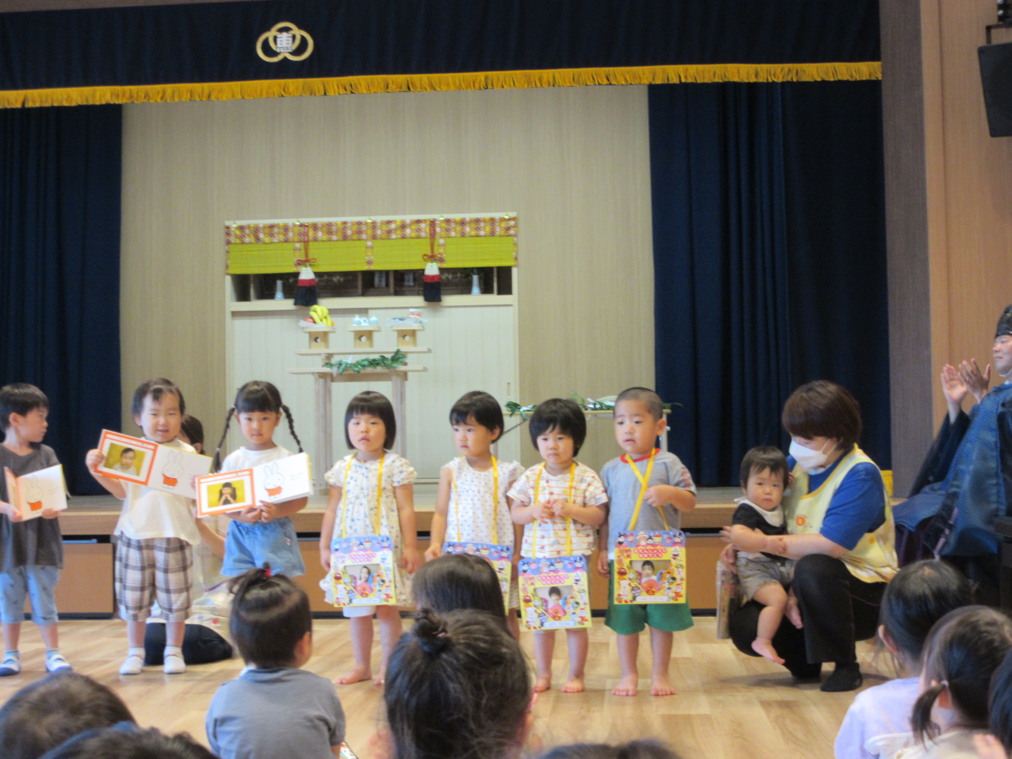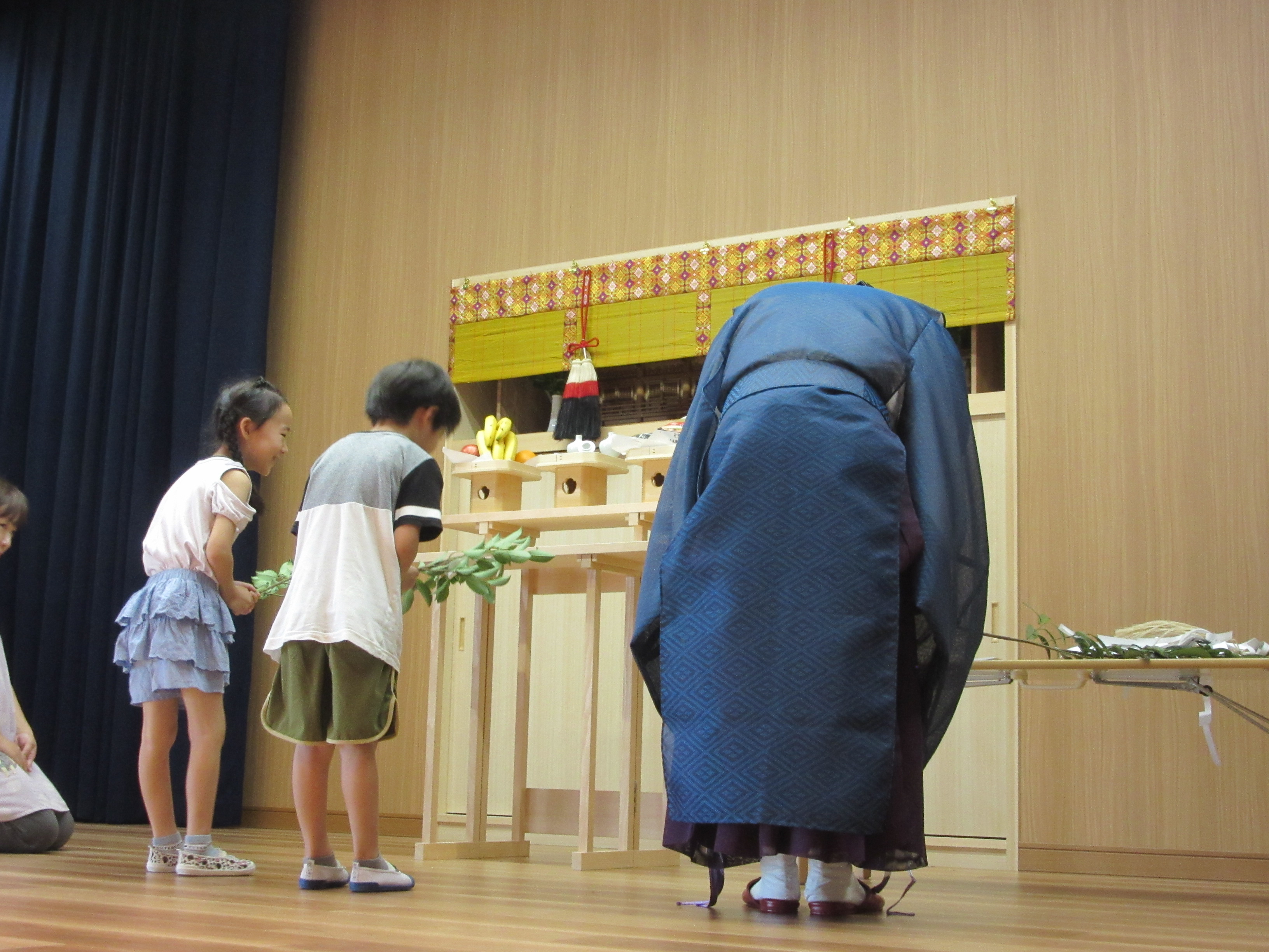 年長さんは宮司さんと一緒に「玉串奉奠(たまぐしほうてん)」を行います。
