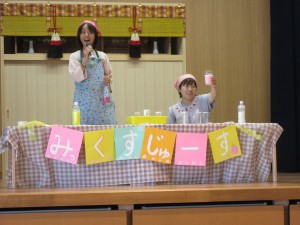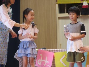年長のお誕生児のお友達にも手伝ってもらいボトルをフリフリ・・・。すると、あら、不思議!