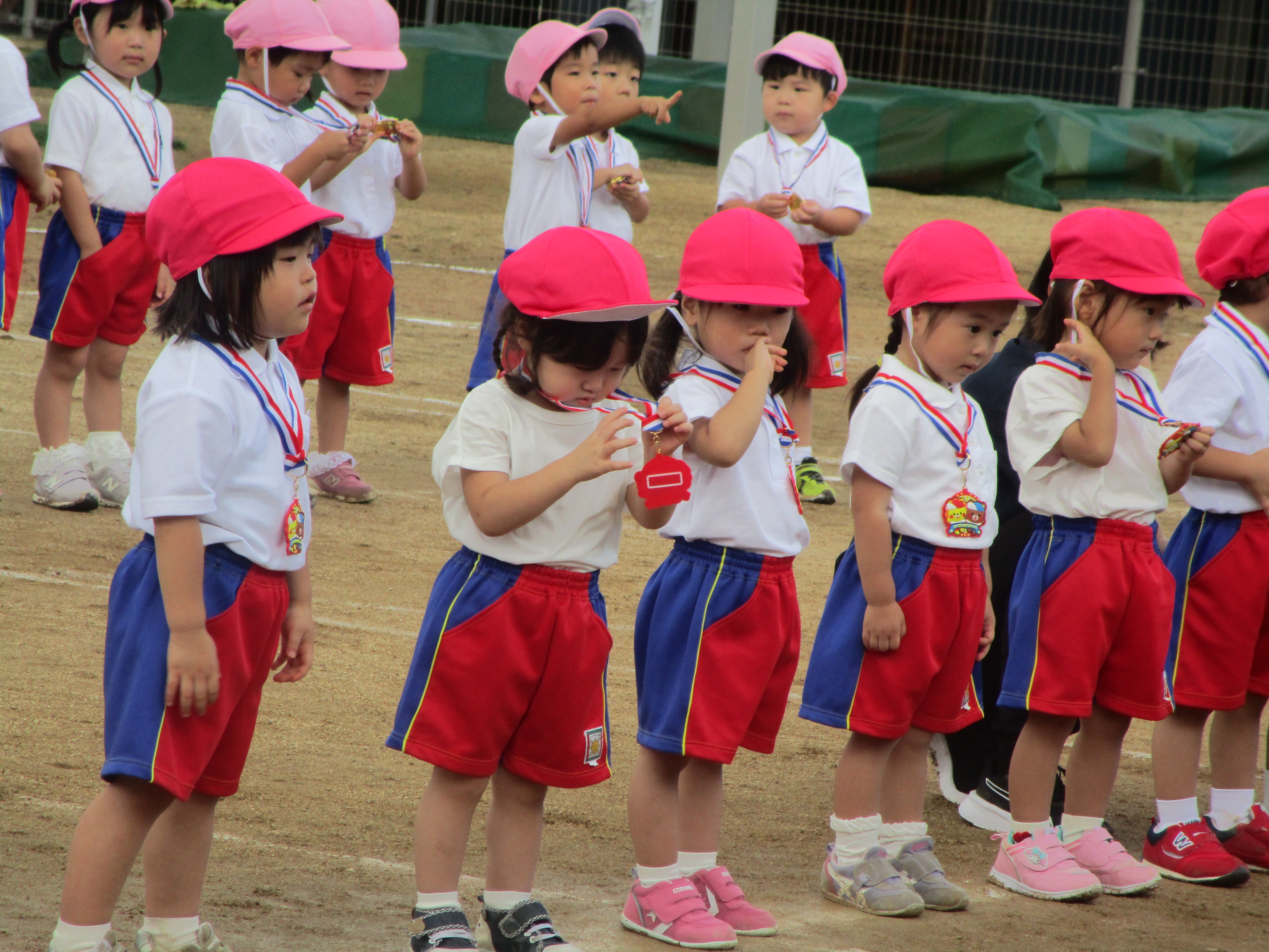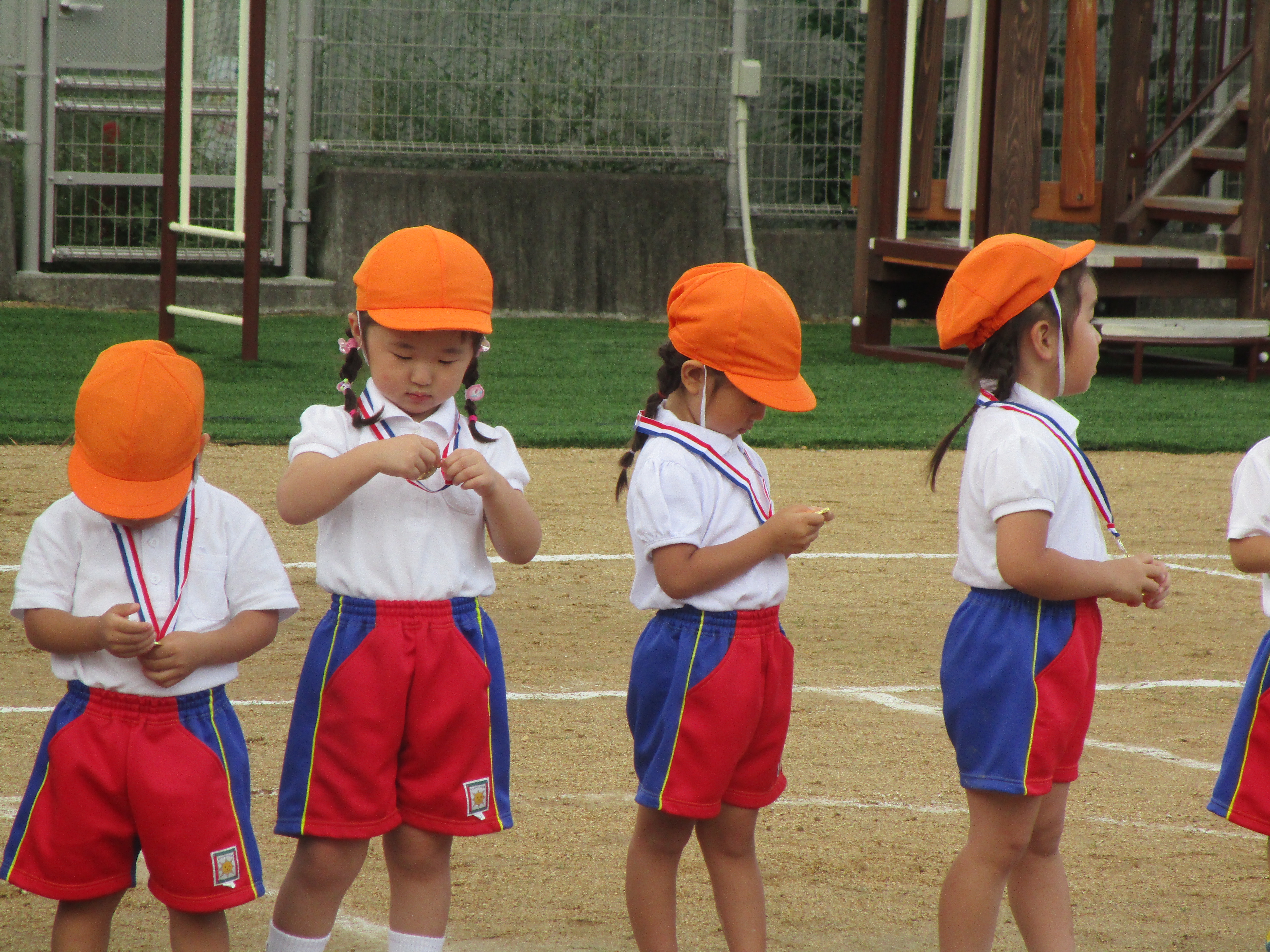 かっこいいメダルを胸にかけ、とても嬉しそう!最後はみんなで元気に「バンザーイ」をしました。