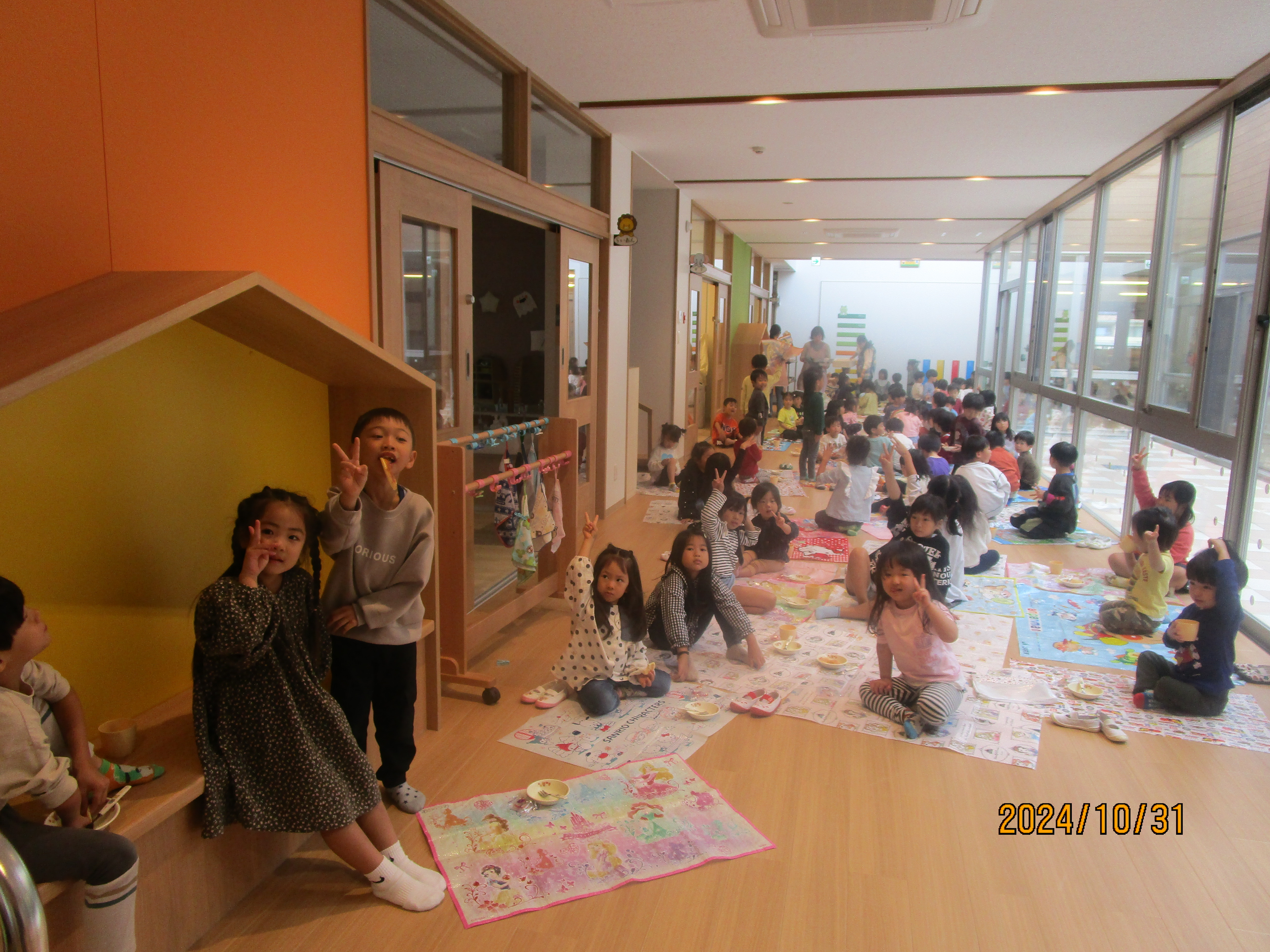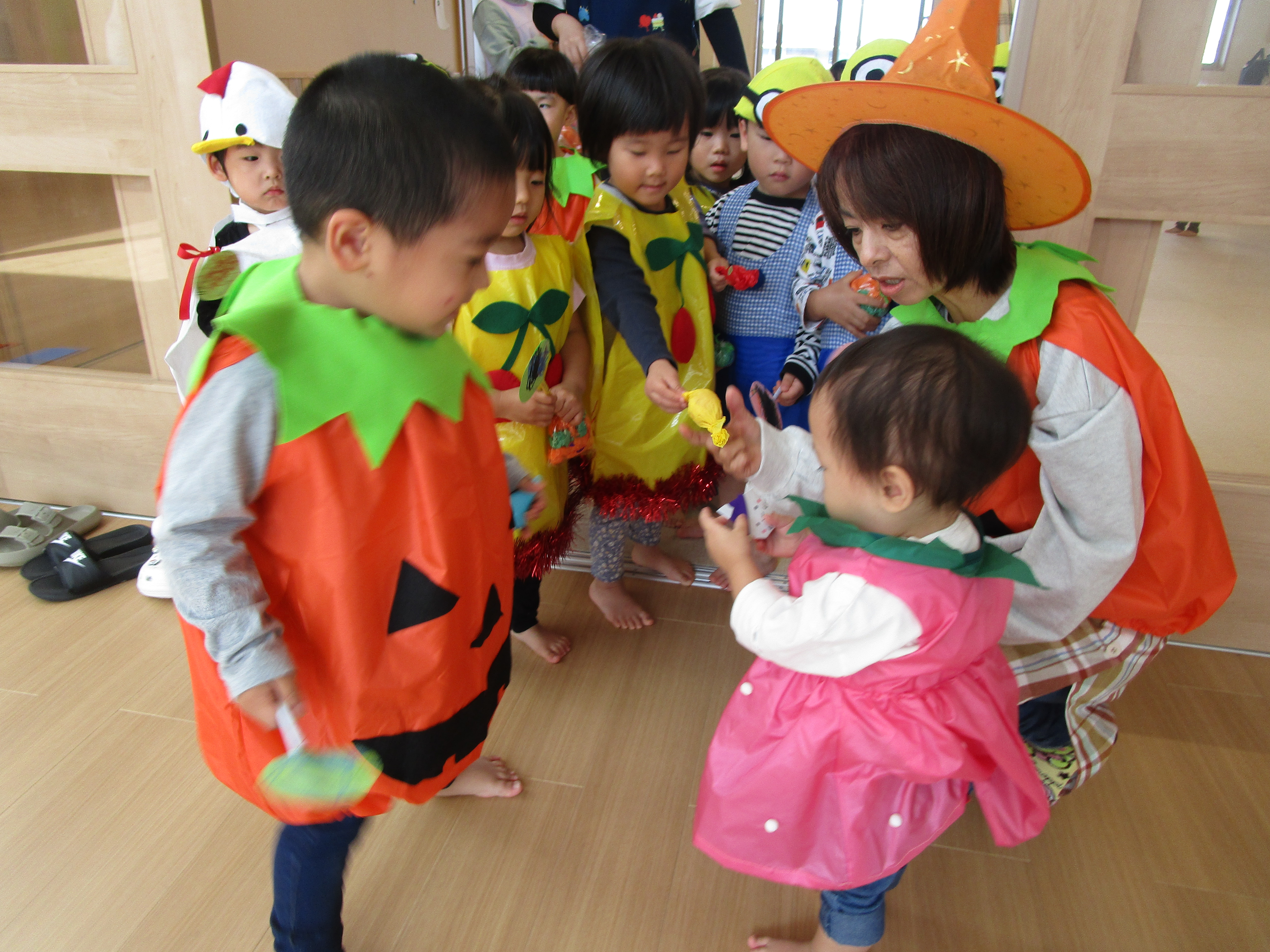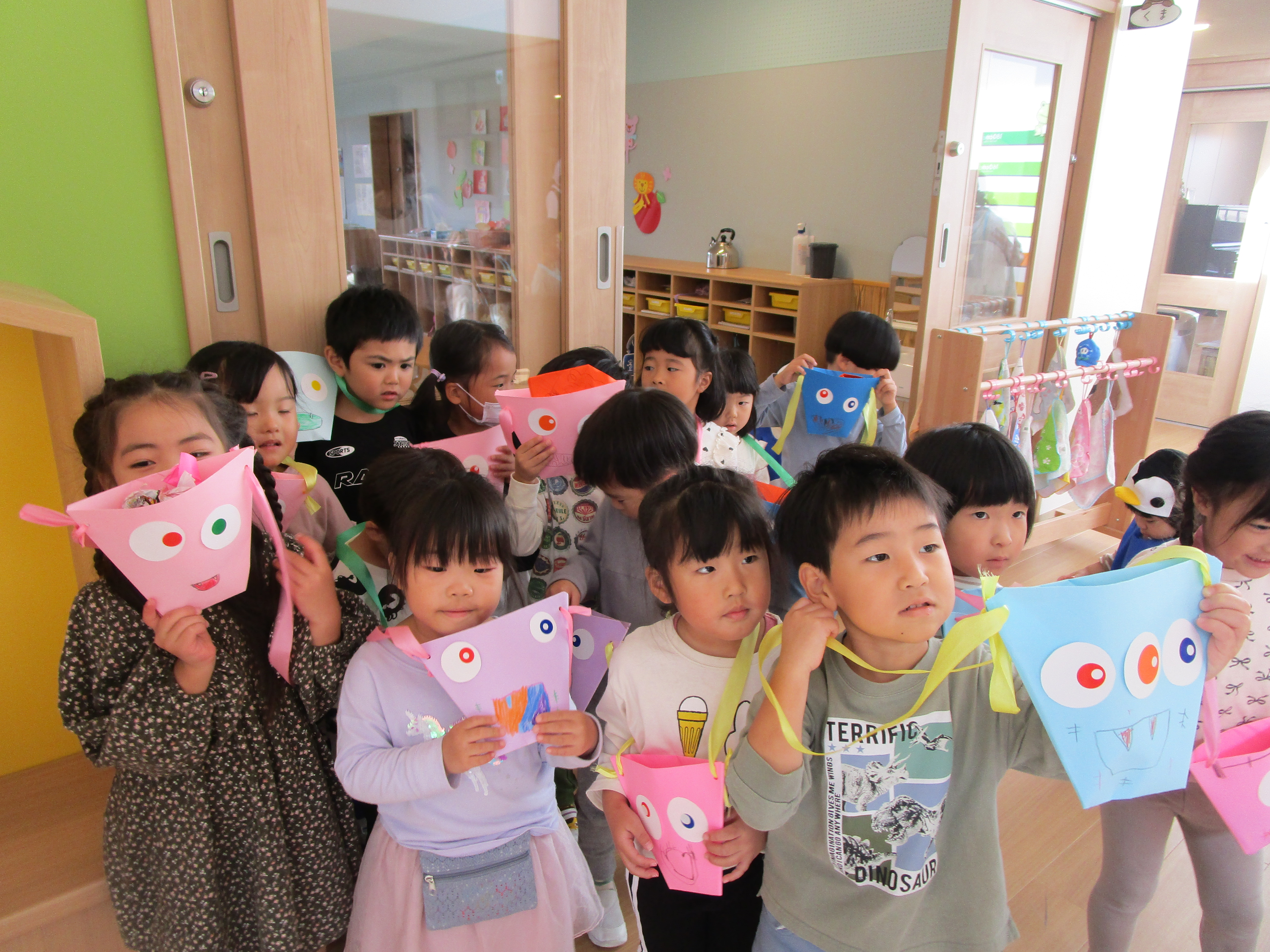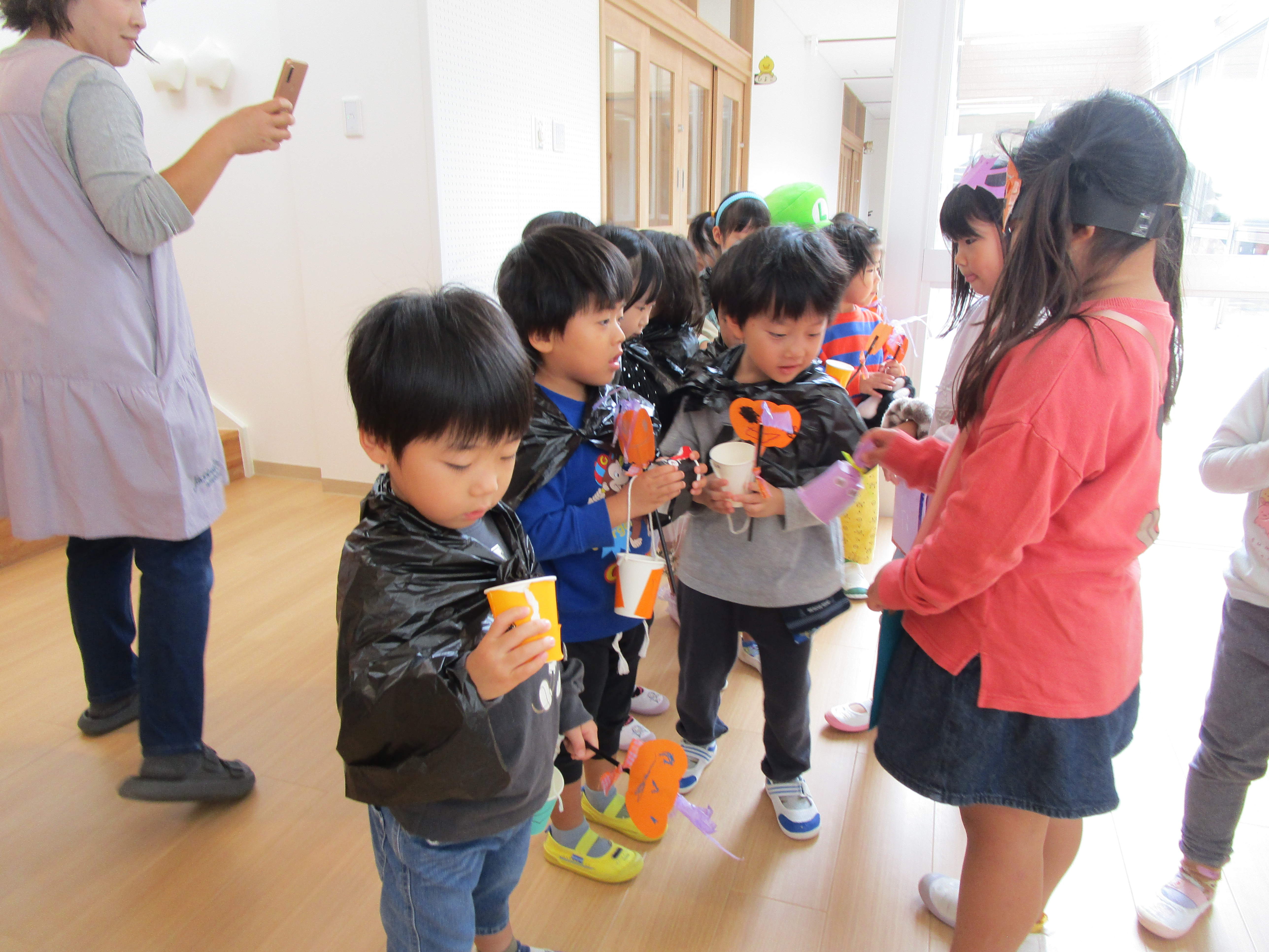 みんなで交換し合ったり、年長さんのお部屋ではお化け探しのゲームをしたりして楽しみました。