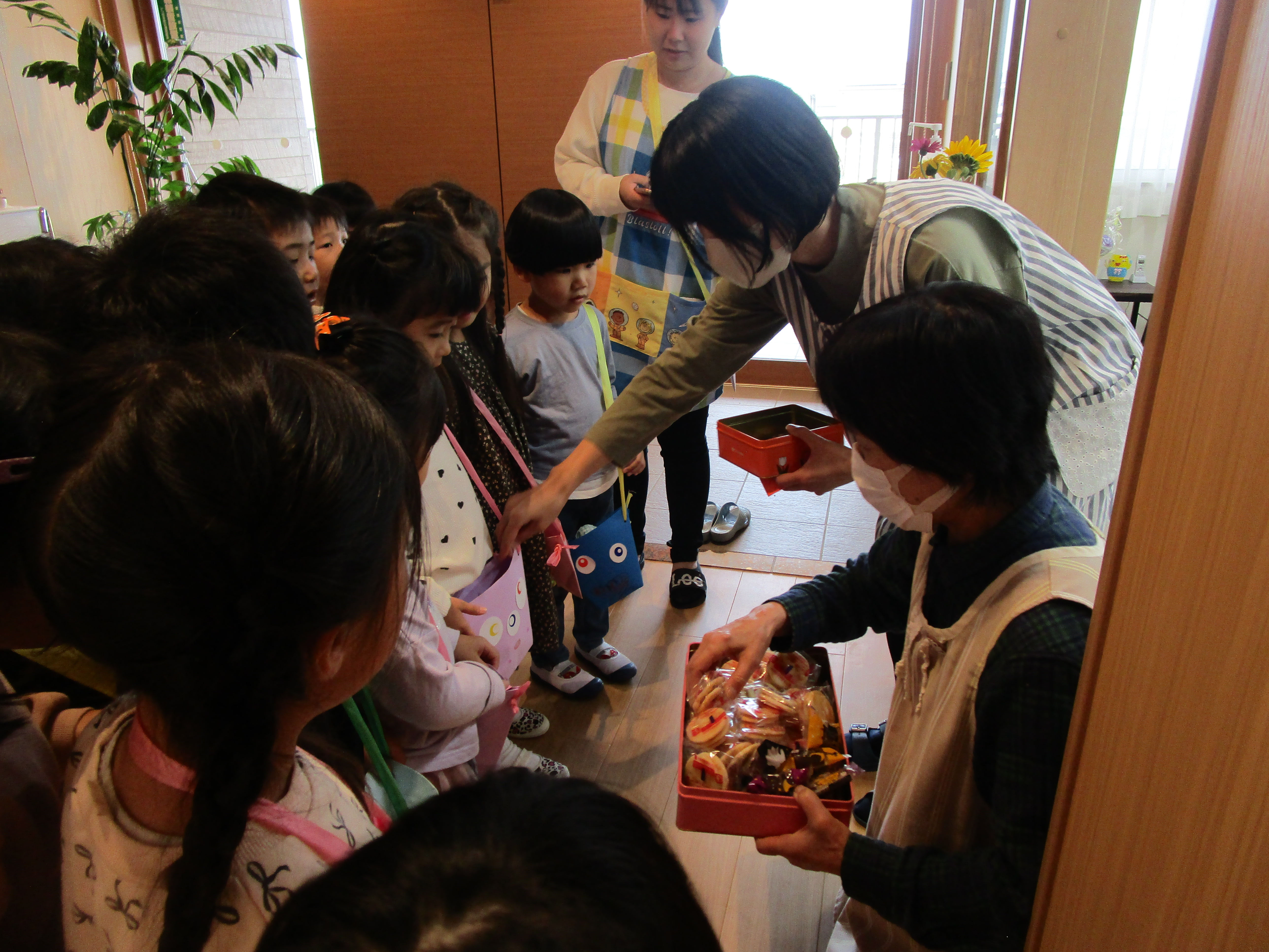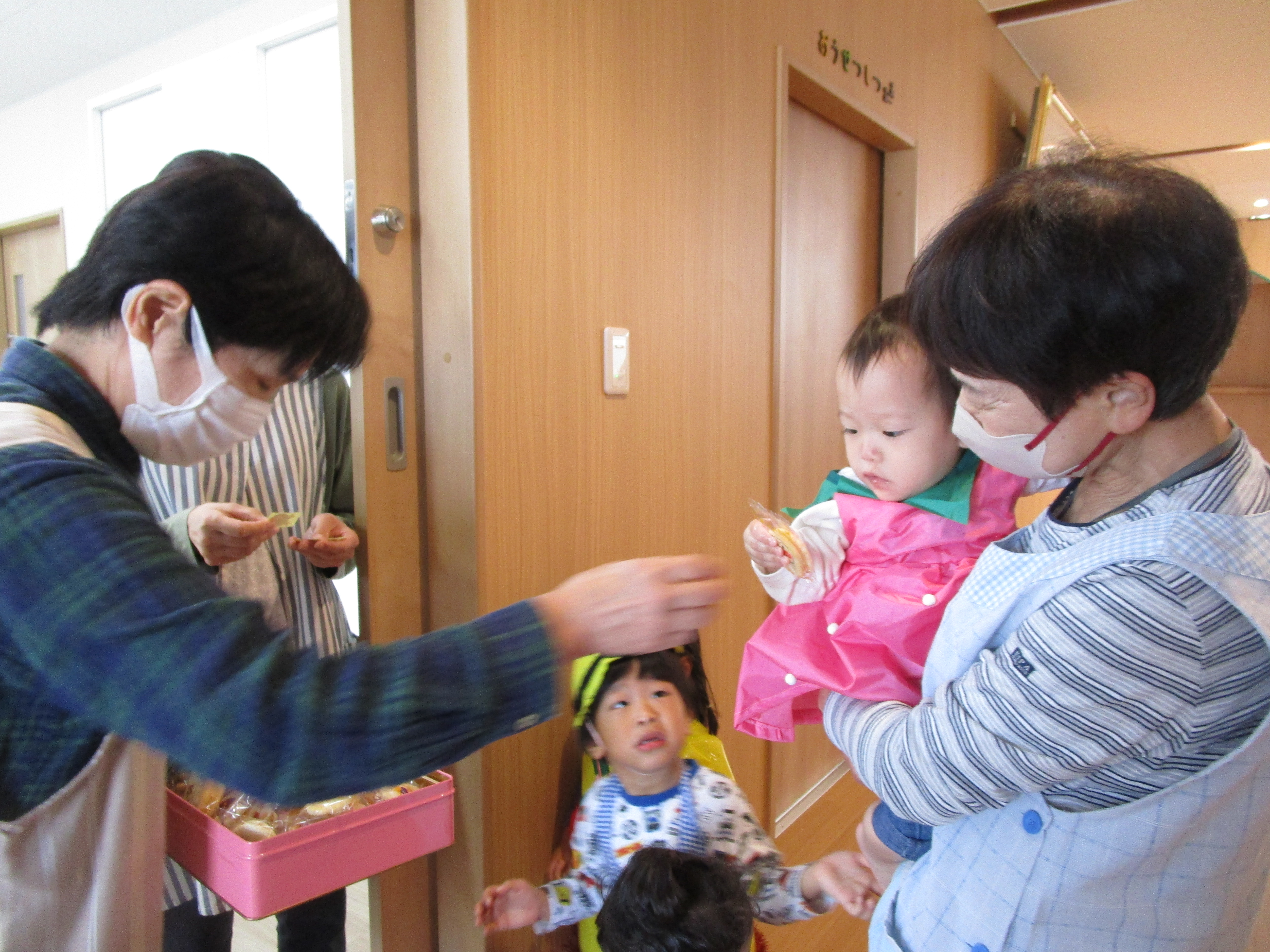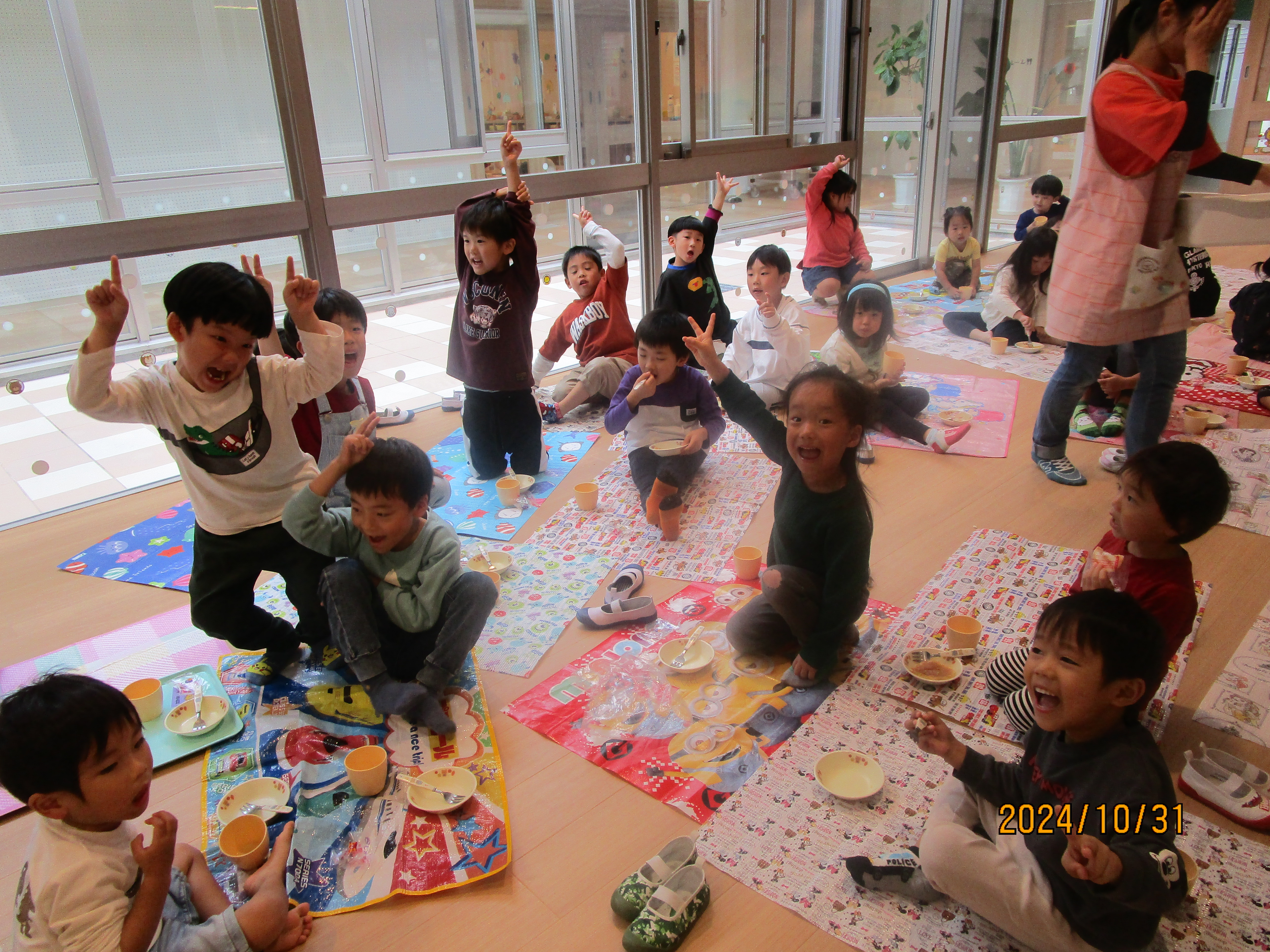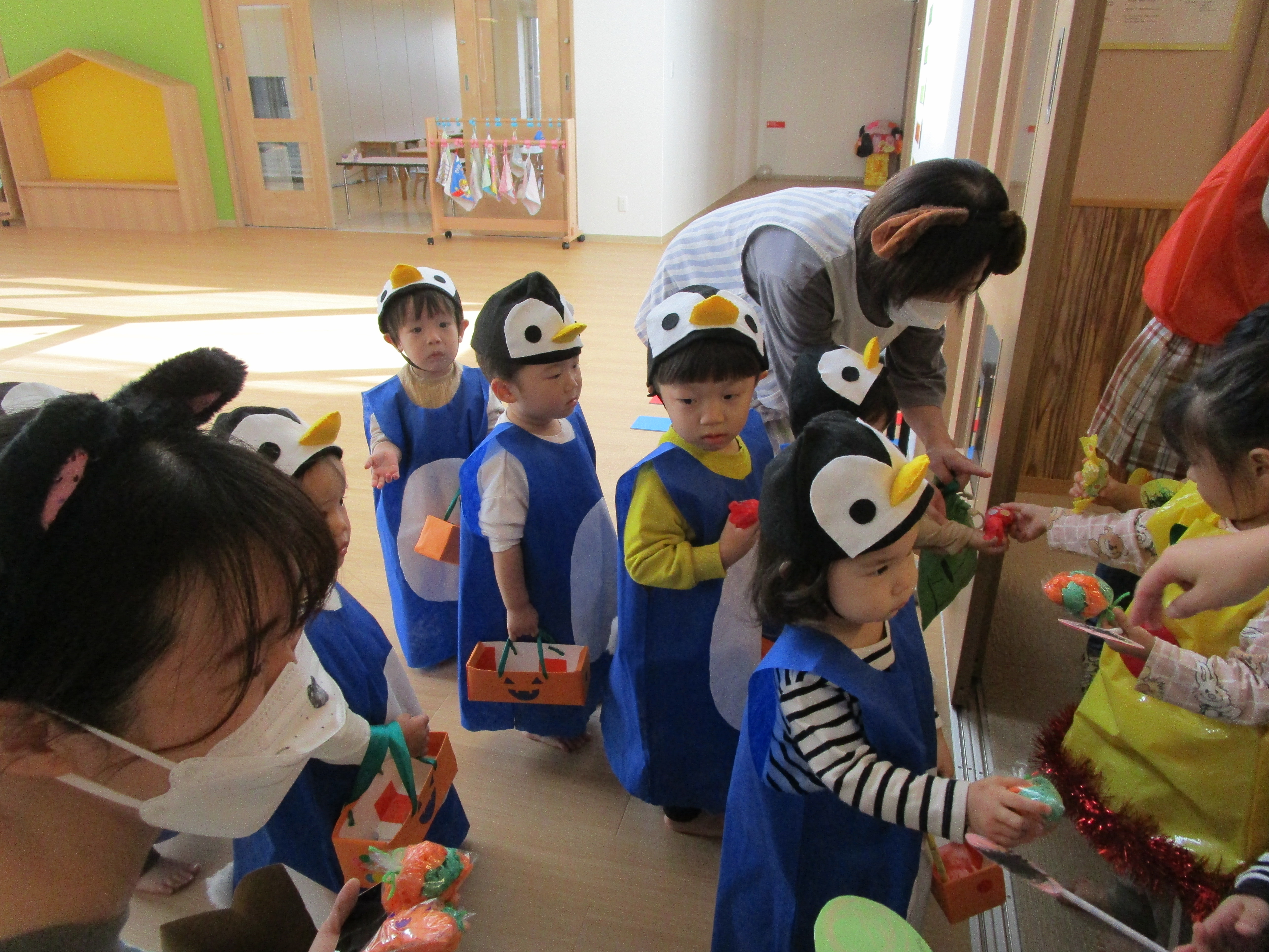 みんなで交換し合ったり、年長さんのお部屋ではお化け探しのゲームをしたりして楽しみました。