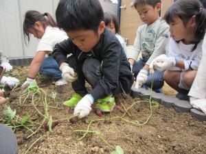 さつま芋掘り(10月29日実施)2024年11月11日子どもたちが植えた芋づるが、どんどん成長して収穫の時期を迎えました。 土の中に入っているさつまいも、『出来てるかなぁ~』と、少しドキドキしている様子!! 最初に芋づるを取って、土の中を掘っていきます!! 土の中から、さつま芋が見えると、一生懸命掘って、『小さくてかわいいお芋や大きいおいも』が出てくると、うれしそうな表情☆ 『いも天が食べたいな』『焼き芋がいいな』と食べることを想像して、とっても楽しみにしてくれていました✨ 施設情報愛媛県新居浜市にある児童福祉施設中萩保育園あいさつのできる子 つよい体のやさしい子 話の聞ける子 自分で考えできる子児童福祉施設 中萩保育園〒792-0045愛媛県新居浜市中萩町8番1号TEL:0897-41-7233 FAX:0897-41-7209中萩保育園WEBサイト最近の記事2025年9月25日敬老の日 はがき作り児童福祉施設 中萩保育園2025年9月25日誕生会(9月5日実施)児童福祉施設 中萩保育園2025年8月25日防災集会(8月21日実施)児童福祉施設 中萩保育園2025年8月25日プール大会(8月6日実施)児童福祉施設 中萩保育園2025年8月25日誕生会(8月1日実施)児童福祉施設 中萩保育園2025年7月31日アイス屋さんごっこ(7月22日実施)児童福祉施設 中萩保育園中萩保育園の記事一覧
