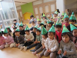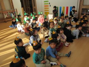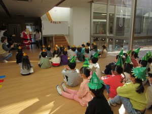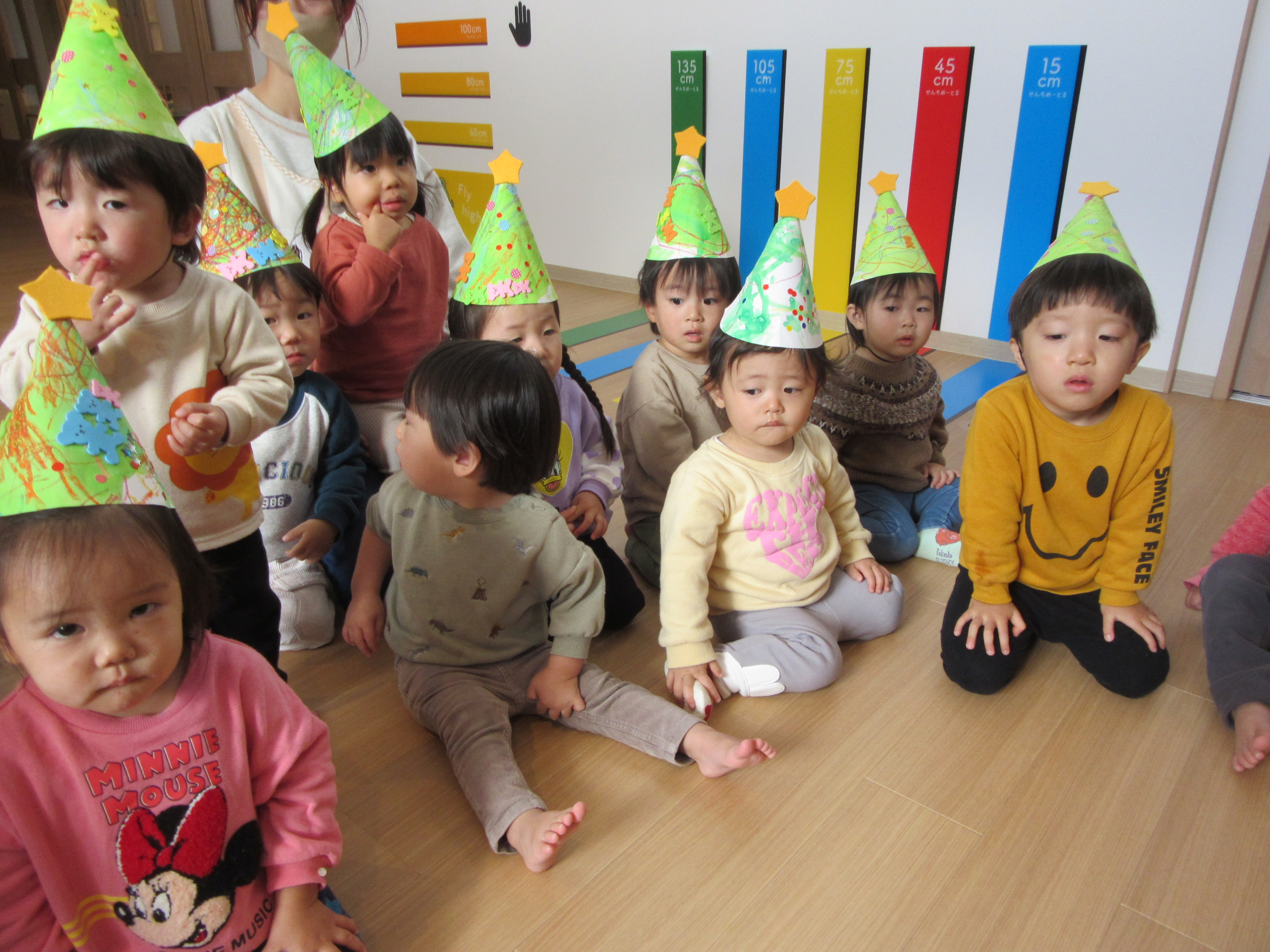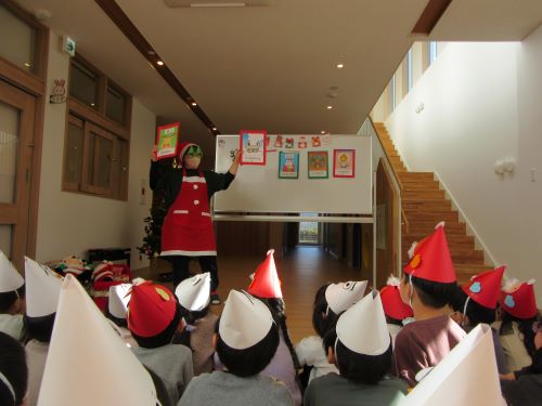 手作りのクリスマス帽子を紹介し合ったり、歌を歌ったりして楽しい時間を過ごしました。